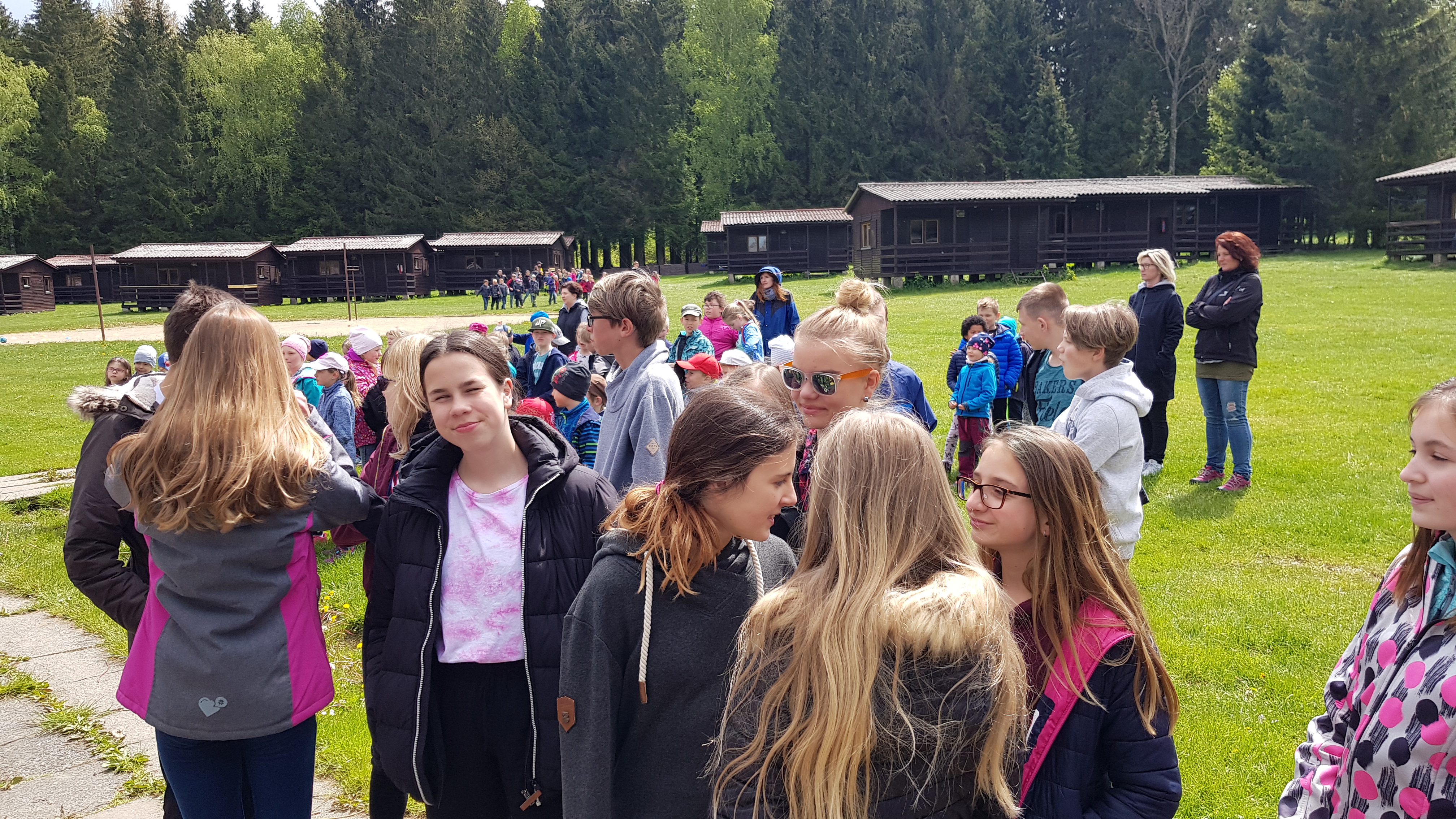 Po chutném řízečku se děti ubytovaly a začal program. Všem se určitě líbily kostýmy vedoucích. Madagaskar jak ve filmu. Táborem se ozývaly pokřiky, za které by se ani král Jelimán nemusel stydět. Děti si vyzkoušely opičí dráhu, došlo i na stavění domečků v lese. K večeři byly špagety a chutnaly nám. Večerní tvoření bylo plné nápadů. Třídy si vyrobily vlajky, vymyslely si název tlupy a pokřik.