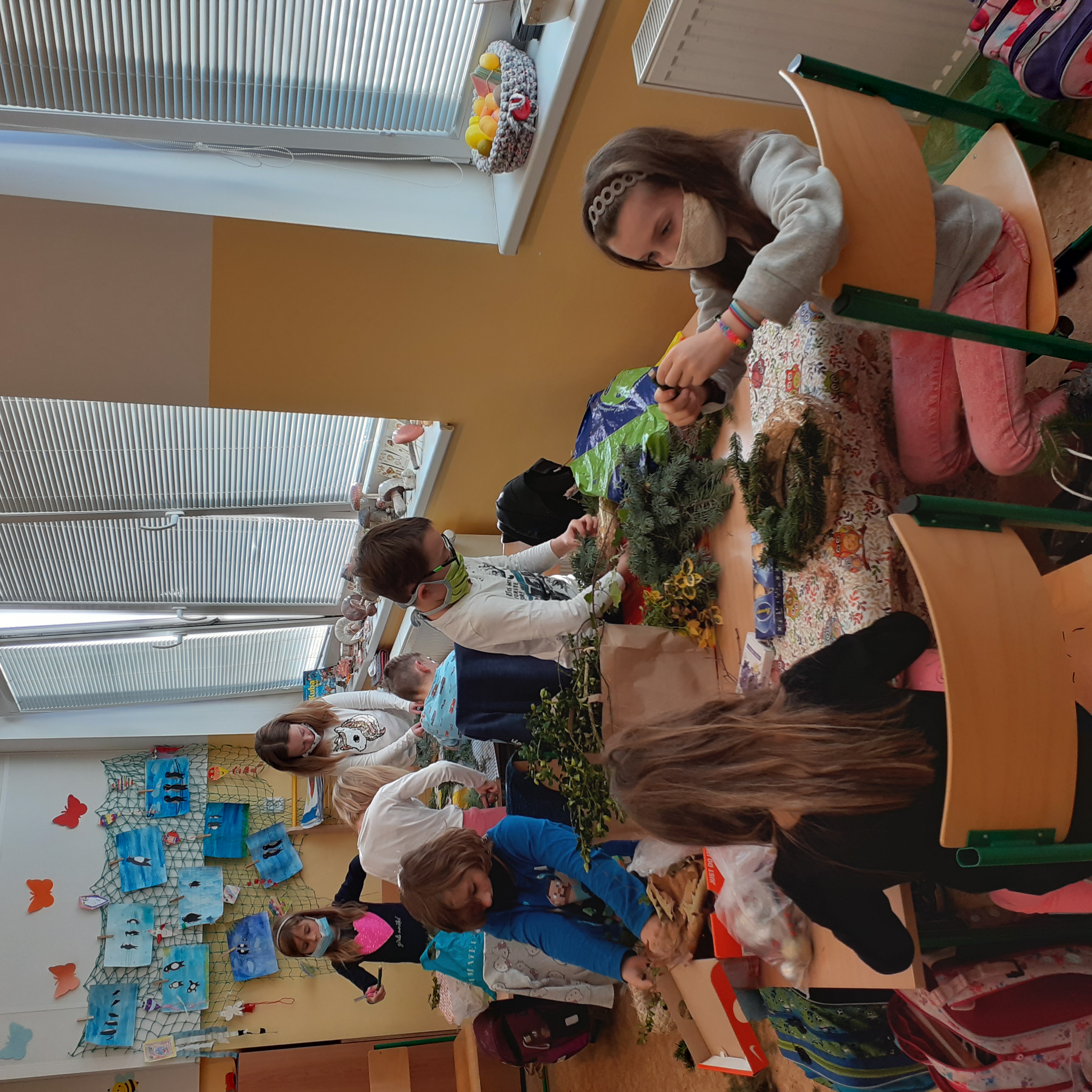 Při domácí výuce jsme toho moc netvořili, tak jsme to chtěli dnes napravit. Všichni žáci z naší třídy si přinesli spoustu krásných dekorací a vyzkoušeli si šikovnost prstíků při obmotávání věnečků. A výsledek? Všechny adventní věnce bychom okamžitě mohli odnést někam na tržnici a prodány by byly okamžitě. Tak jsou krásné.