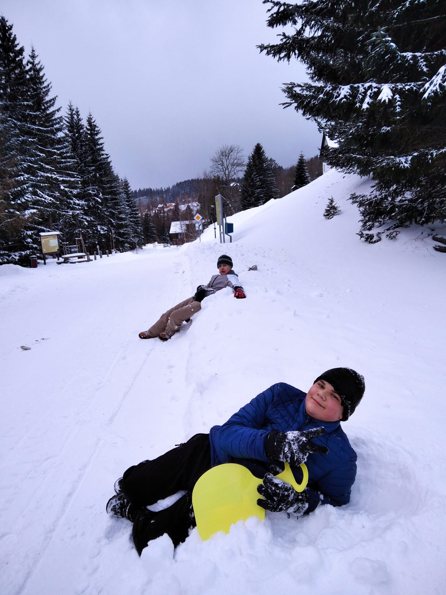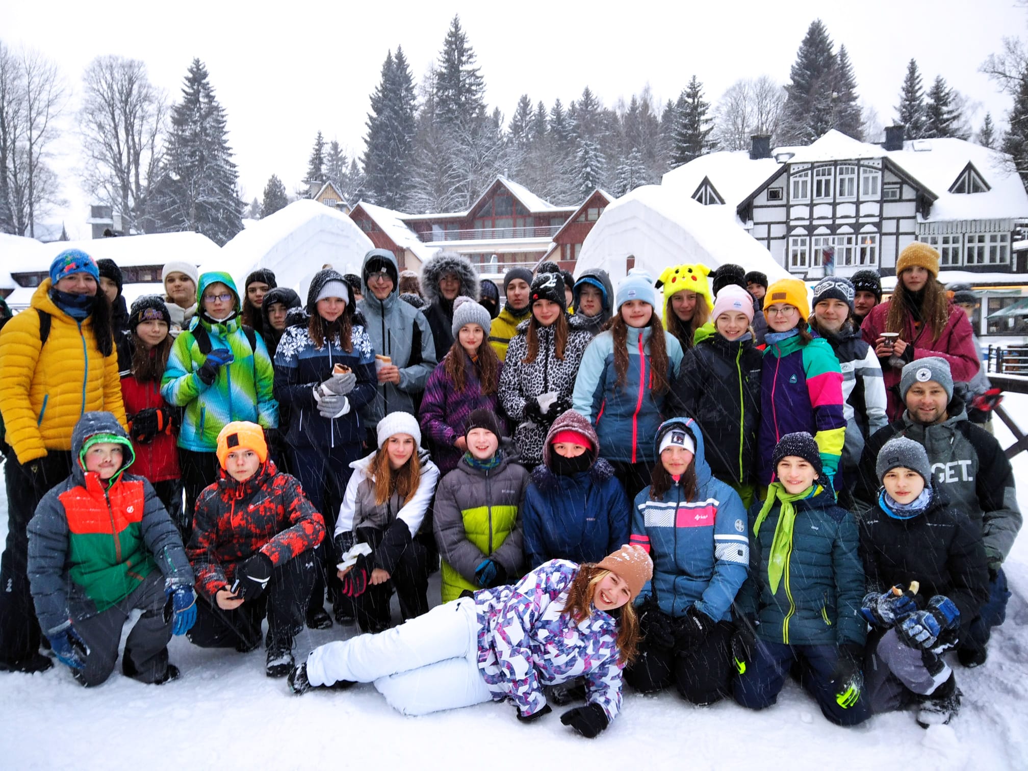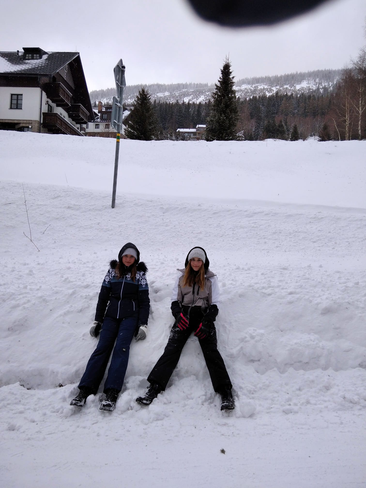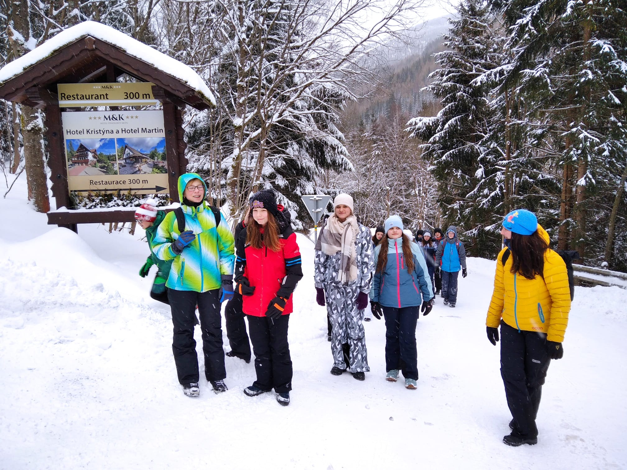 Ve čtvrtek ráno jsme se vzbudili do chumelenice. Přes noc napadlo asi 10 cm nového sněhu a další se stále sypal. Vyrazili jsme lyžovat na Medvědín, kde jsme se potýkali se silným větrem. Proto jsme tentokrát na oběd odjeli trochu dřív. Po obědě jsme se rozdělili. Část byla lyžovat na Svatém Petru a část šla na procházku do Špindlerova Mlýna. Večer si pro nás učitelé připravili velmi vypečené hry 🙂