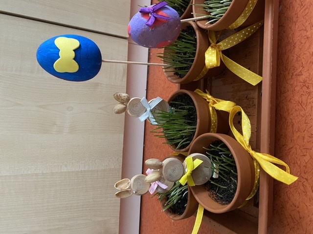 V dubnu nás čekaly Velikonoce a tak jsme si vyrobili zajíčky a velikonoční vajíčka.