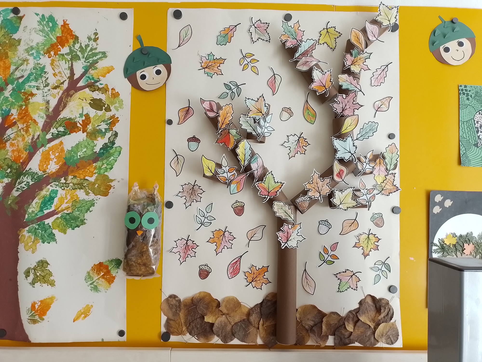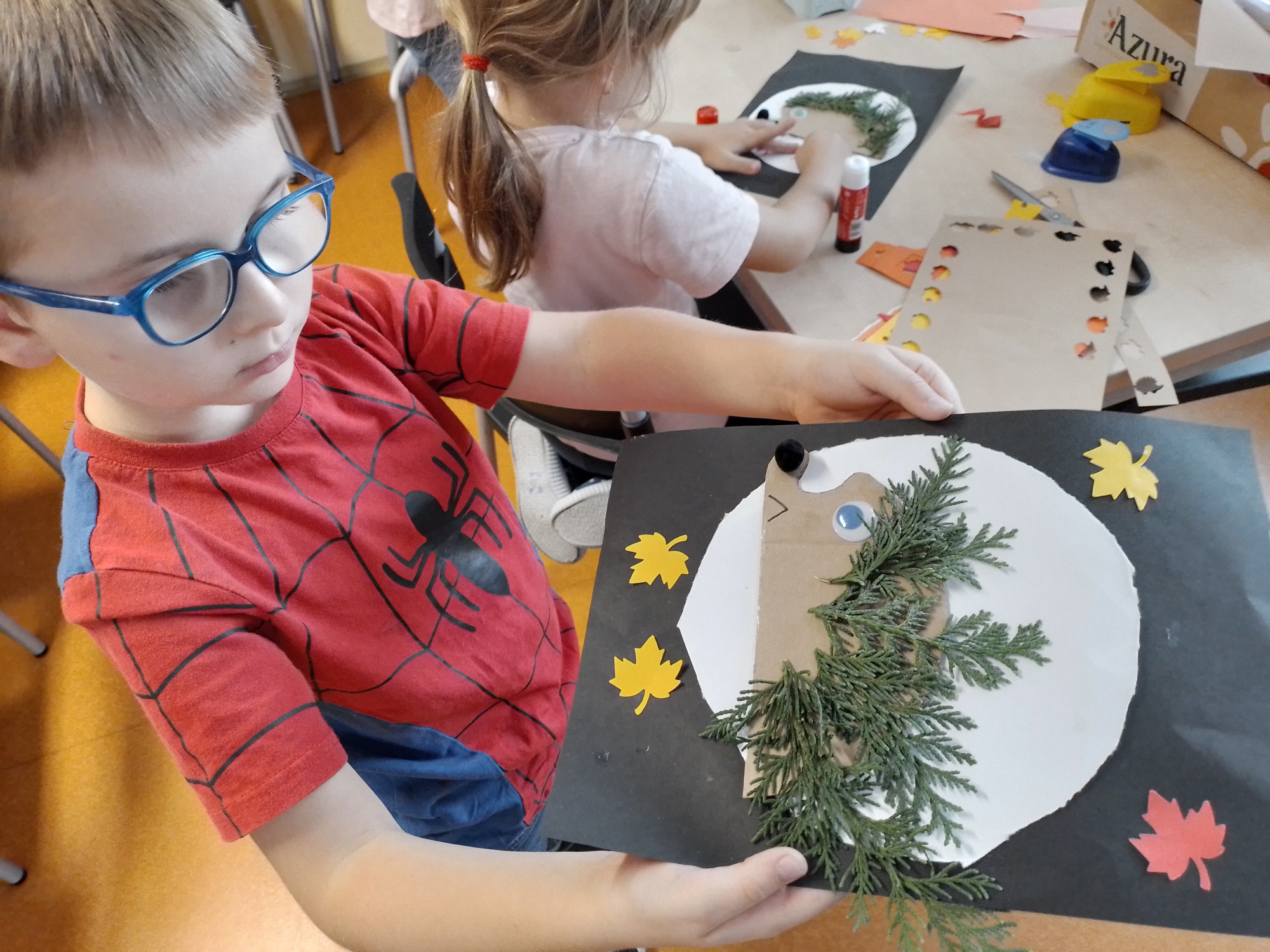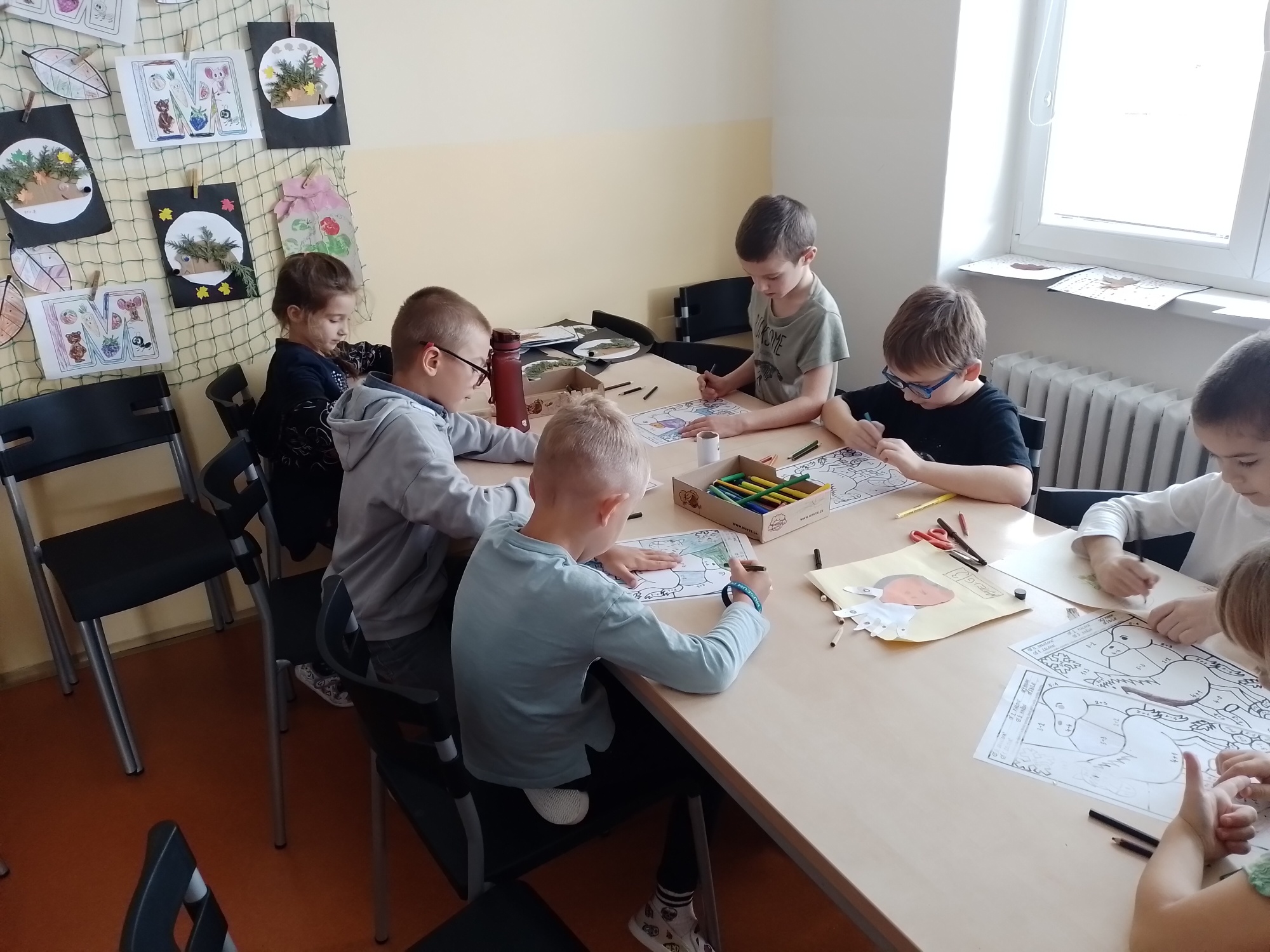 Na den úsměvů děti stavěly v lese přírodní smajlíky, jindy zase obrázky podle úkolu, ve třídě pak vyráběly ježky z jehličí, obrázky z listí, vymalovaly listy na družinový strom a na svatého Martina tvořily podkovy a koníky z ruliček.