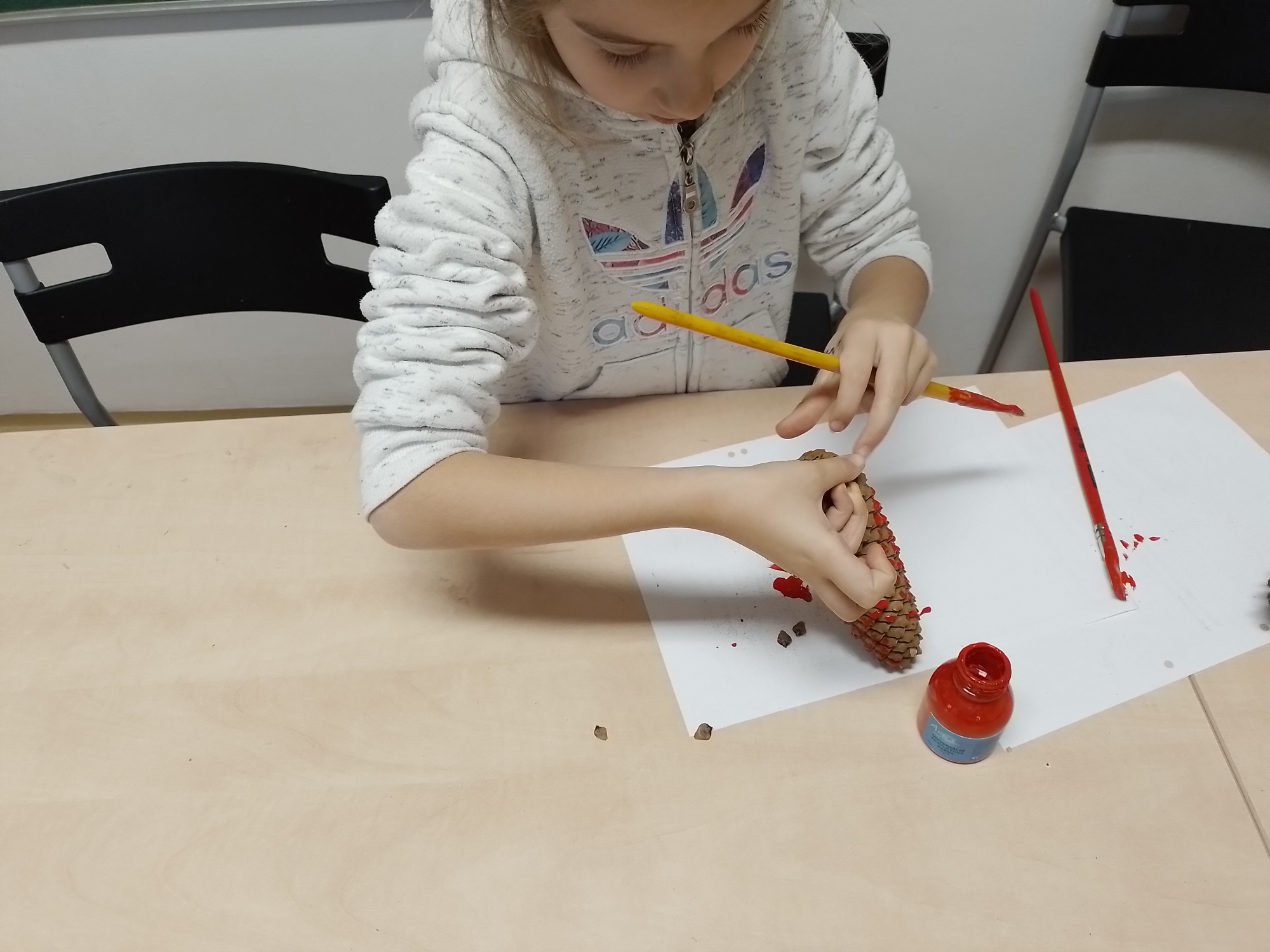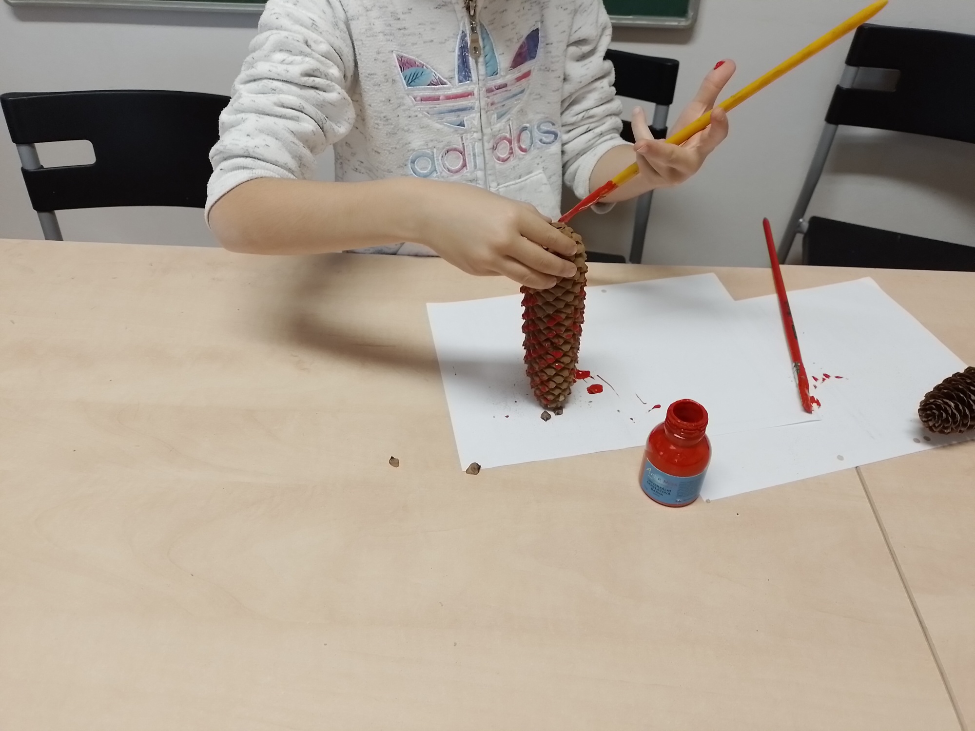 V dalších dnech jsme také barvili šišky, které nám teď zkrášlují adventní strom před budovou školy.