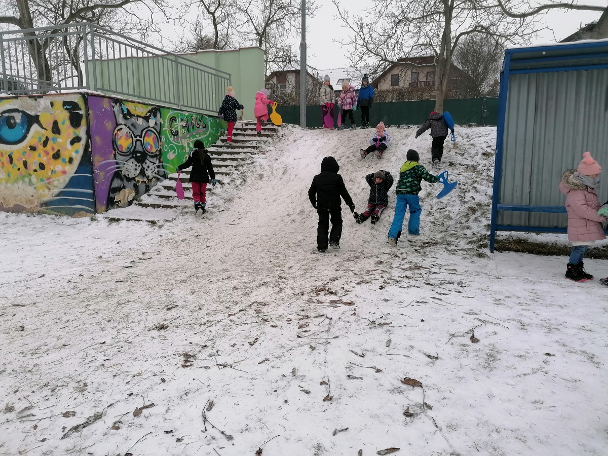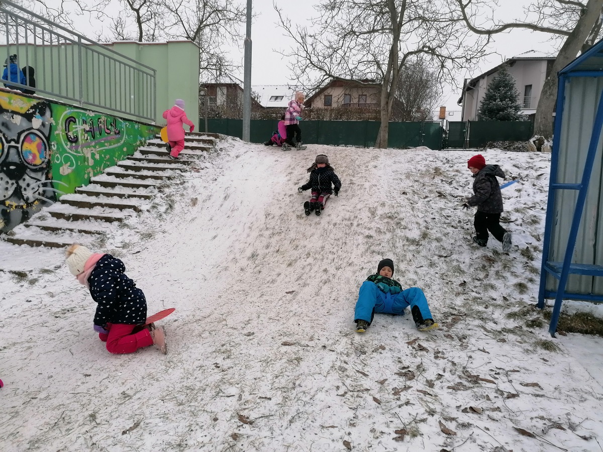 Poupravili jsme náš celoroční strom tak, jak stromy teď v přírodě vypadají. I přes zimní počasí každý den chodíme alespoň na chvilku ven. A když už jsme u přírody, tak jsme si začátkem prosince udělali koulovačku nanečisto s papírovými koulemi. Ale počasí se na nás usmálo a tak jsme mohli udělat i koulovačku s opravdovými sněhovými koulemi! Byli jsme i společně bobovat.