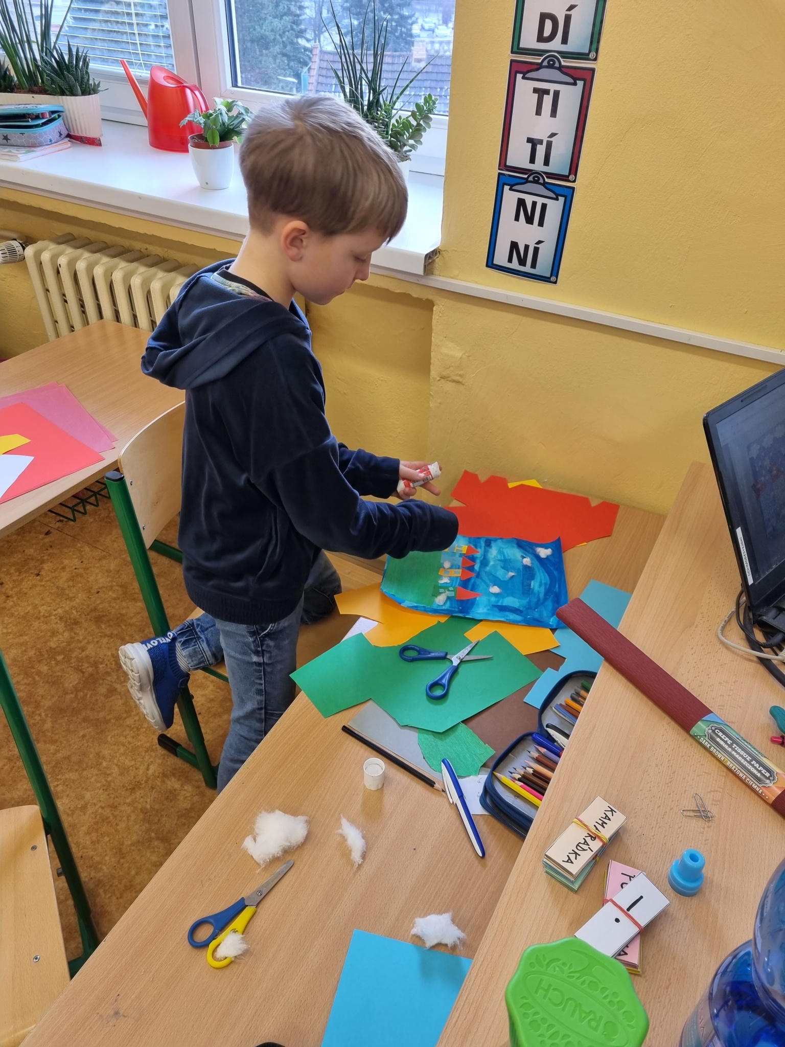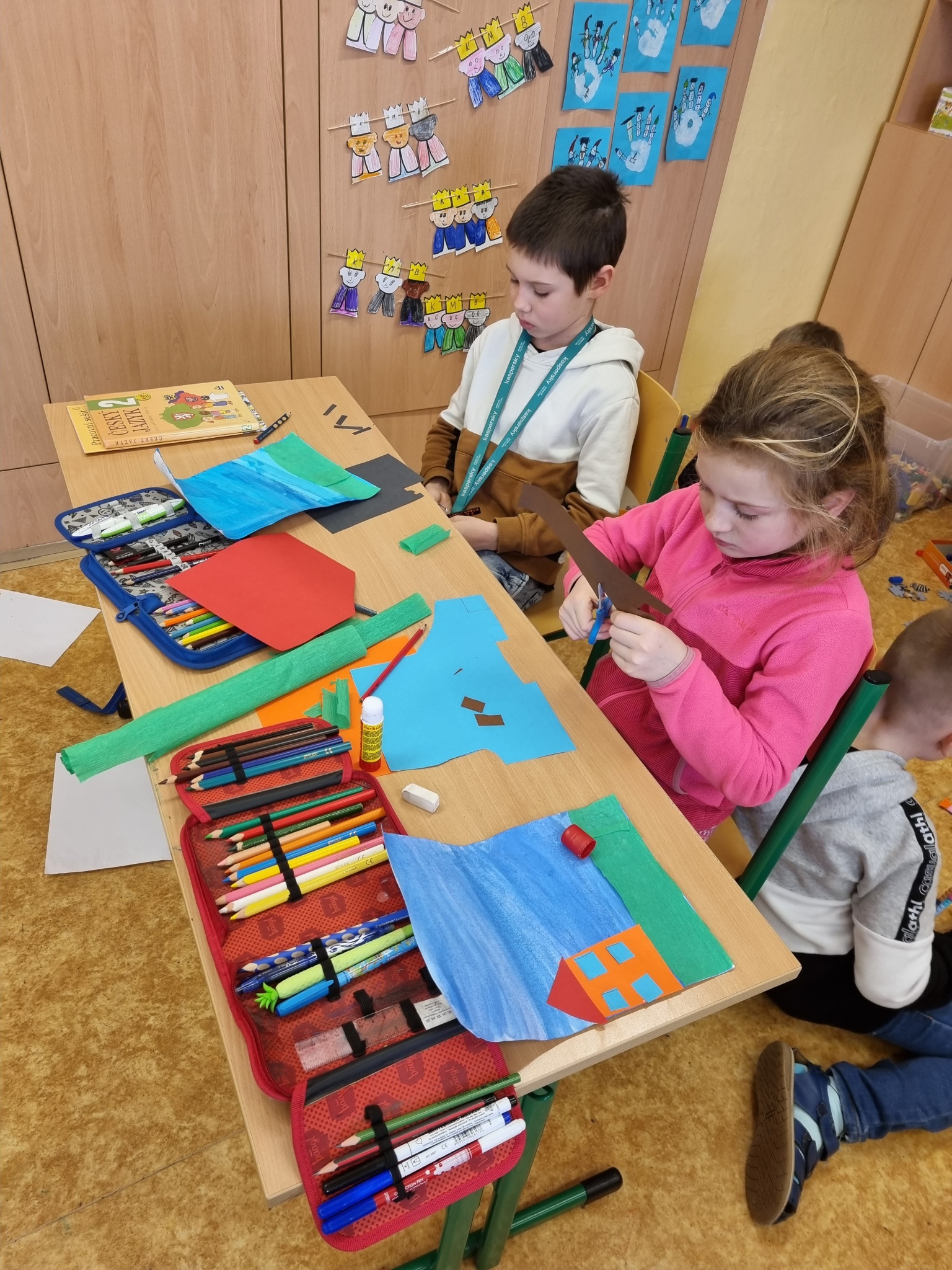 Vyprávěli jsme si o tom, jaké tradice a zvyky jsou spojené se svátkem Tří králů. Krále jsme si vyrobili z papíru, všem se povedli.