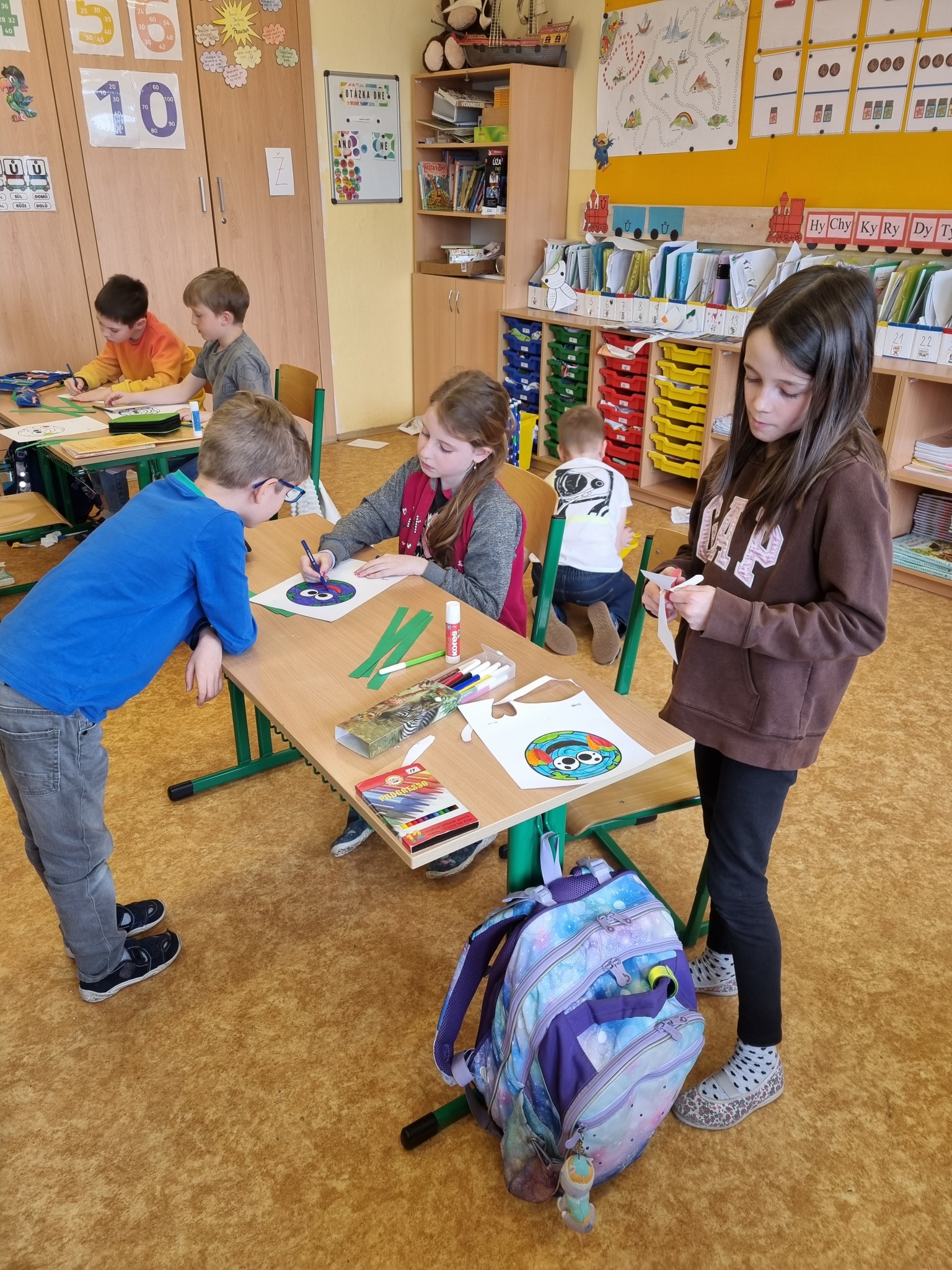 Závěrem tohoto dne si děti vyrobily veselou papírovou planetu Zemi.