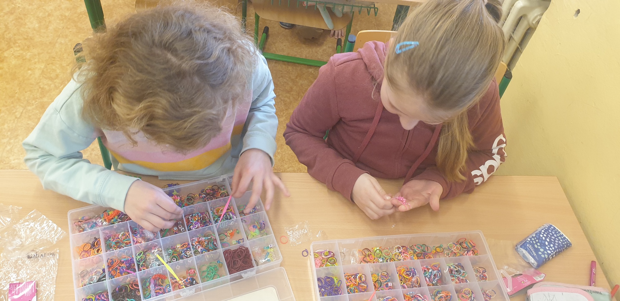 Rádi stavíme z lega, hrajeme hry a i chlapci rádi vyrábí náramky z gumiček. Je to příjemný odpočinek po vyučování.