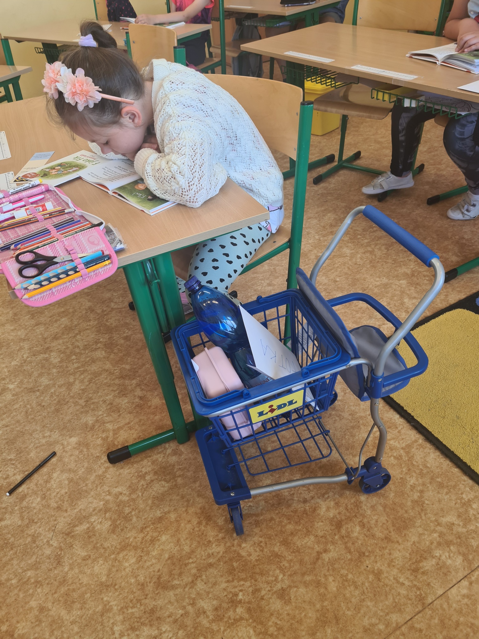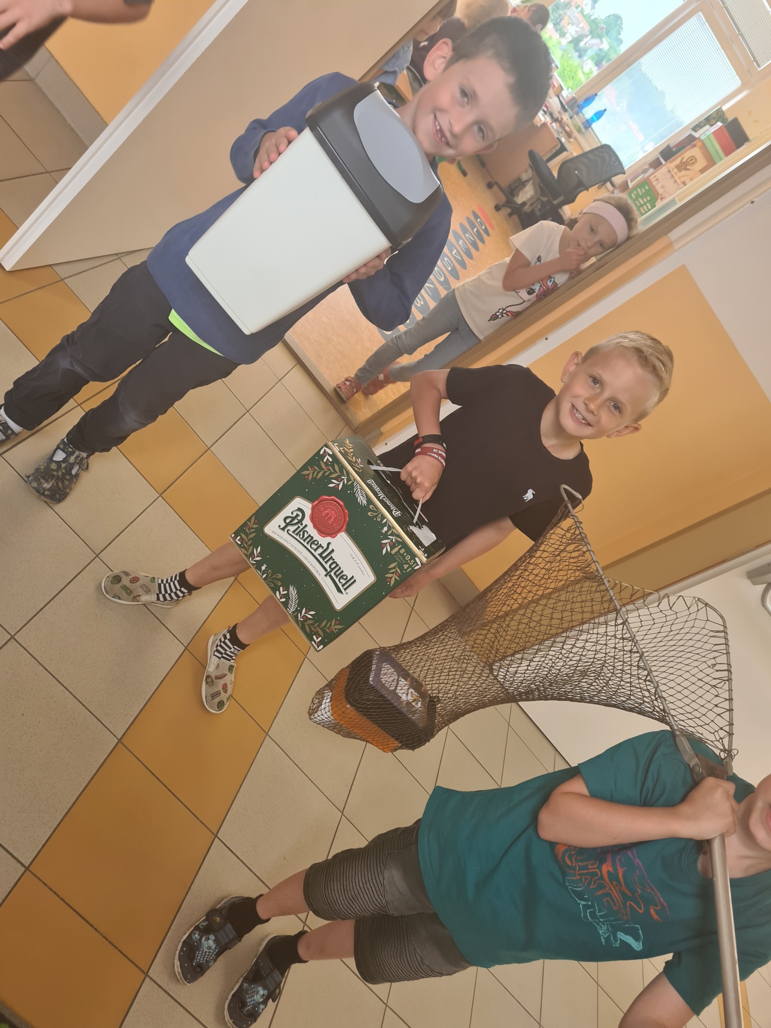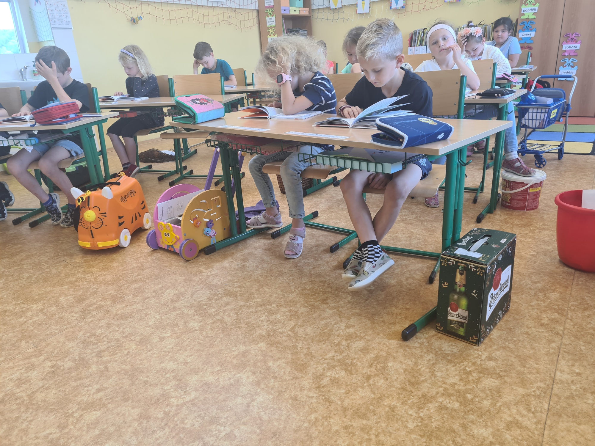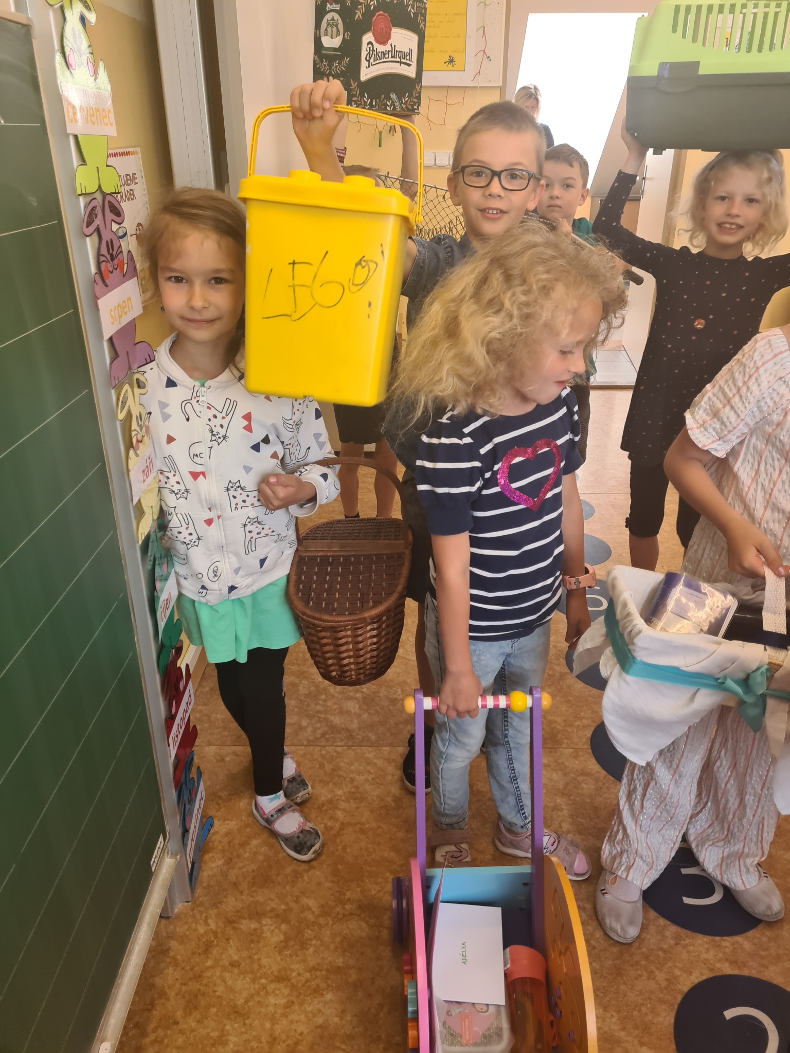 Sešity a učebnice v nádobách rozličných tvarů, barev a velikostí. Představte si, že i rybářská síť či nákupní vozík může do školy. Sice pouze jeden den, ale byla to zábava, na kterou budeme vzpomínat.