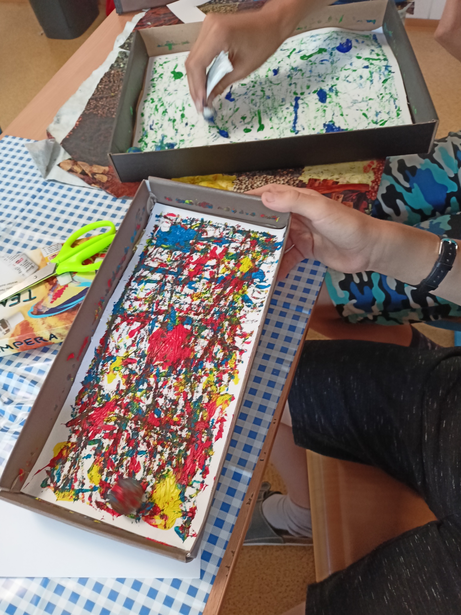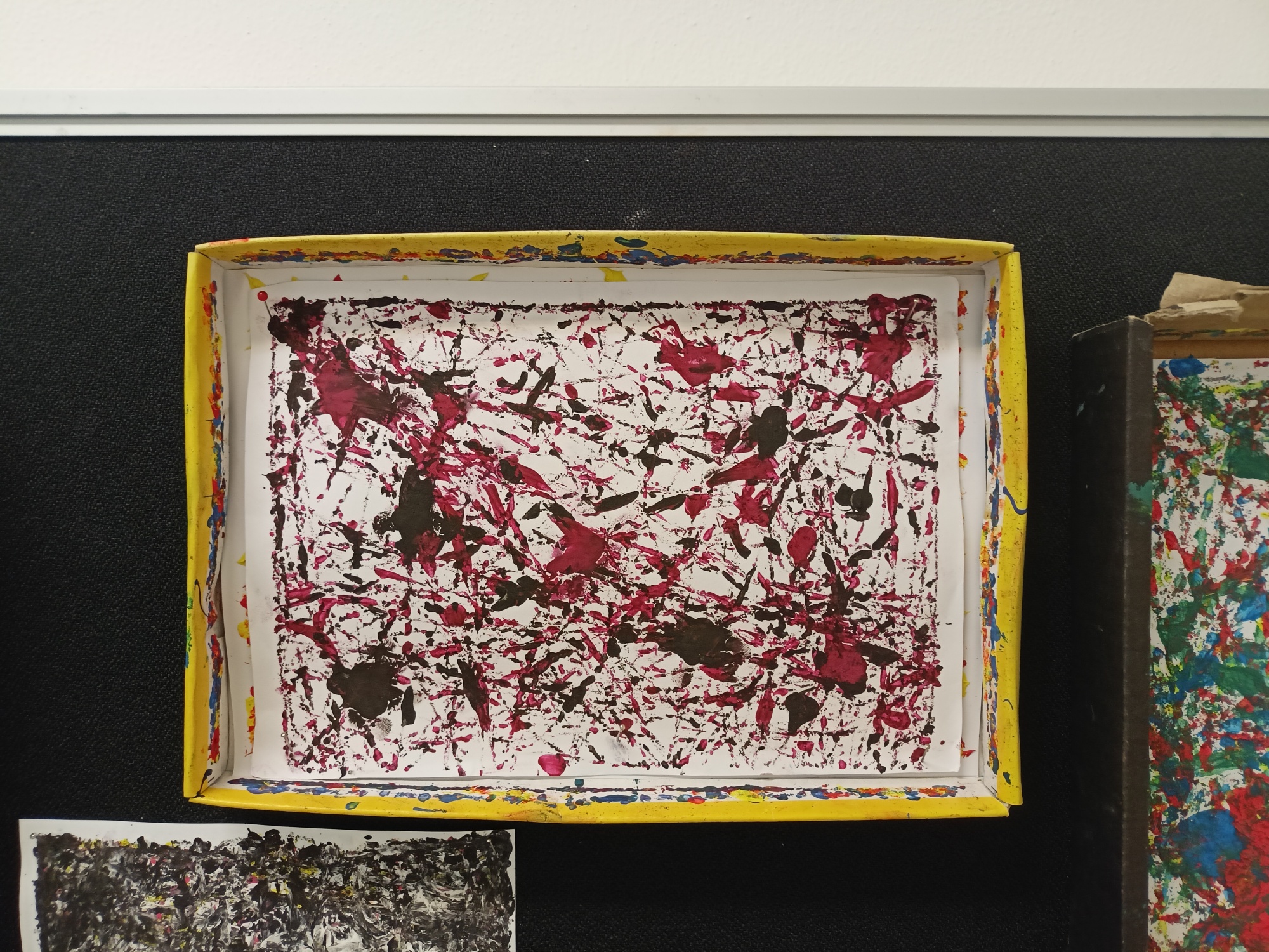 V 7. ročníku jsme se v hodinách výtvarné výchovy opravdu doslova ponořili do tvorby akční malby. Předcházela ji definice uměleckého směru a výčet hlavních umělců a jejich tvorby, kterou jsme se zaujetím zhlédli. Byli jsme sami zvědaví, zda se k jejich tvoření v duchu akce sami přiblížíme. Netvořili jsem podle nich, ale podle pomůcek jsem si vydefinovali, co budeme tvořit sami. Druhá fáze projektu spočívala v hádání výtvarné pomůcky na základě výtvarné ukázky. Projekt zahrnuje tzv. „malbu v krabici“ a velkoformátovou společnou malbu. Projekt jsme si moc užili! Jak se nám díla zdařila, můžete posoudit ve fotogalerii.