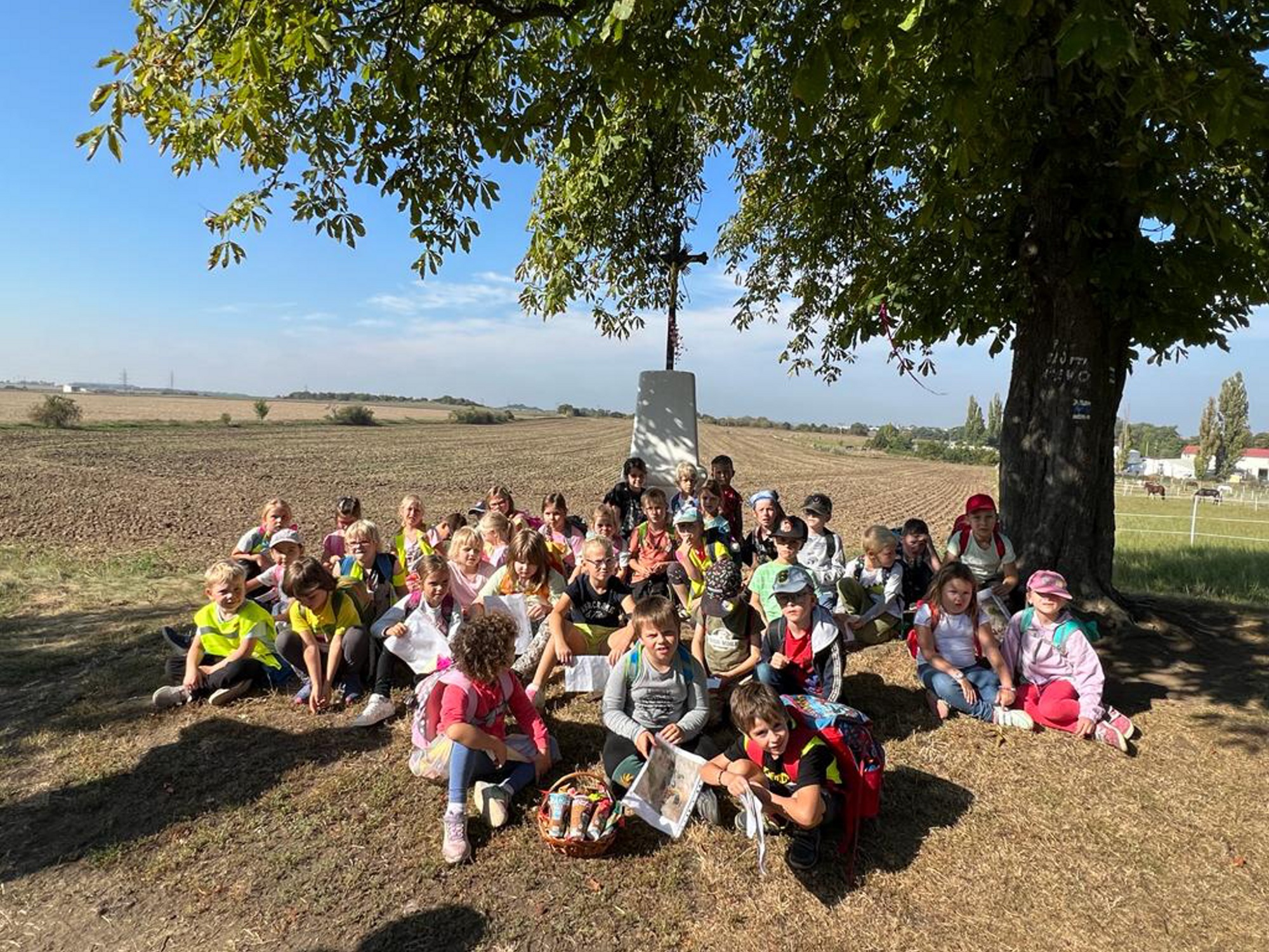 Cílem byl zmíněný křížek, místo pro procházky a relaxaci. Velikou radost dětem udělalo překvapení – košíček sladkostí, který nachystala paní asistentka a my jí za to moc děkujeme.