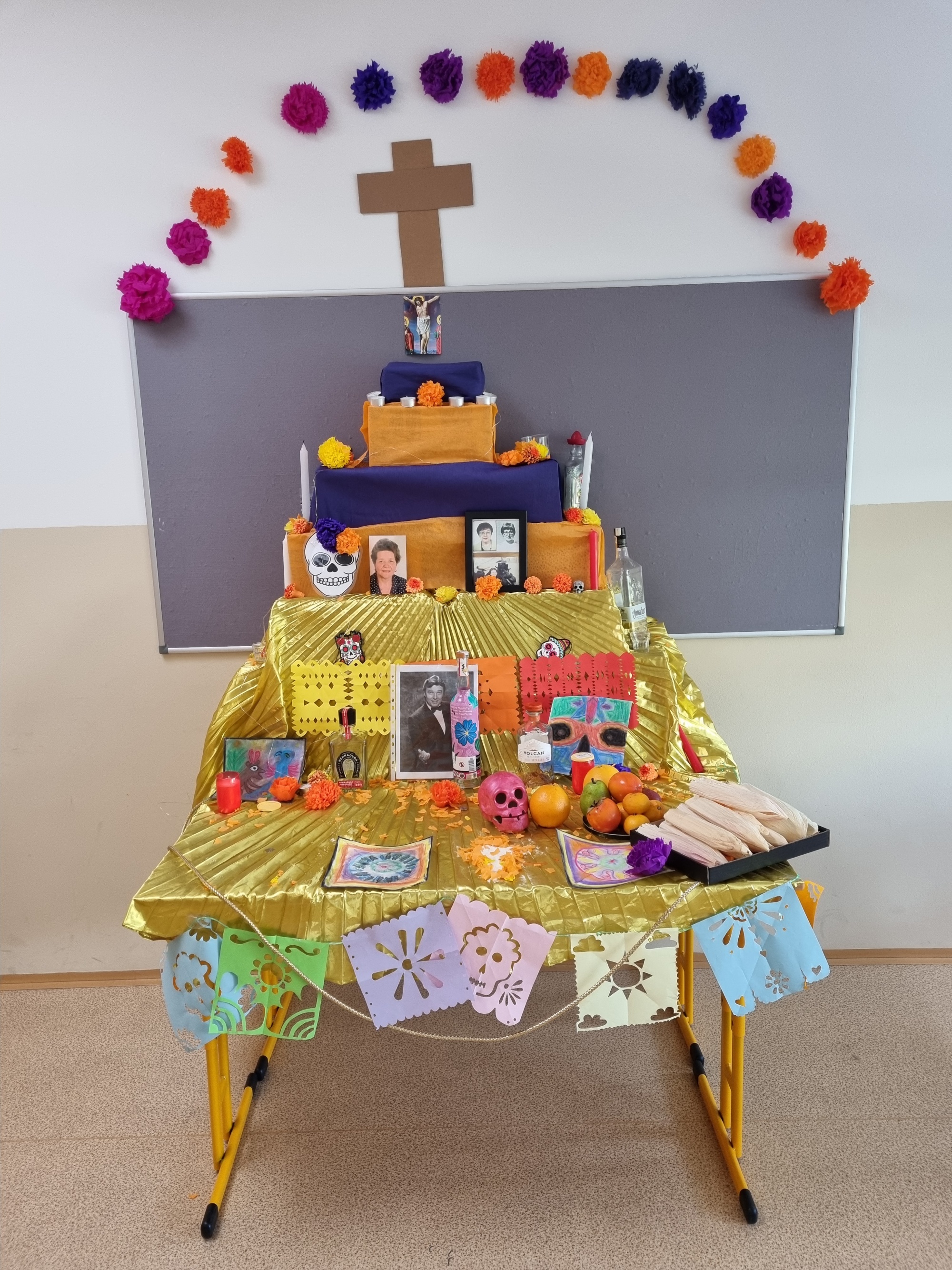 Malou ukázku mexického zvyku postavili v učebně španělštiny žáci IX. A a IX. B s paní učitelkou Denisse Castanos Bautista.