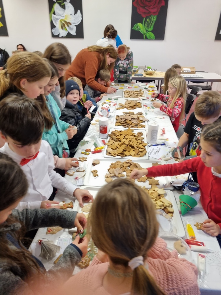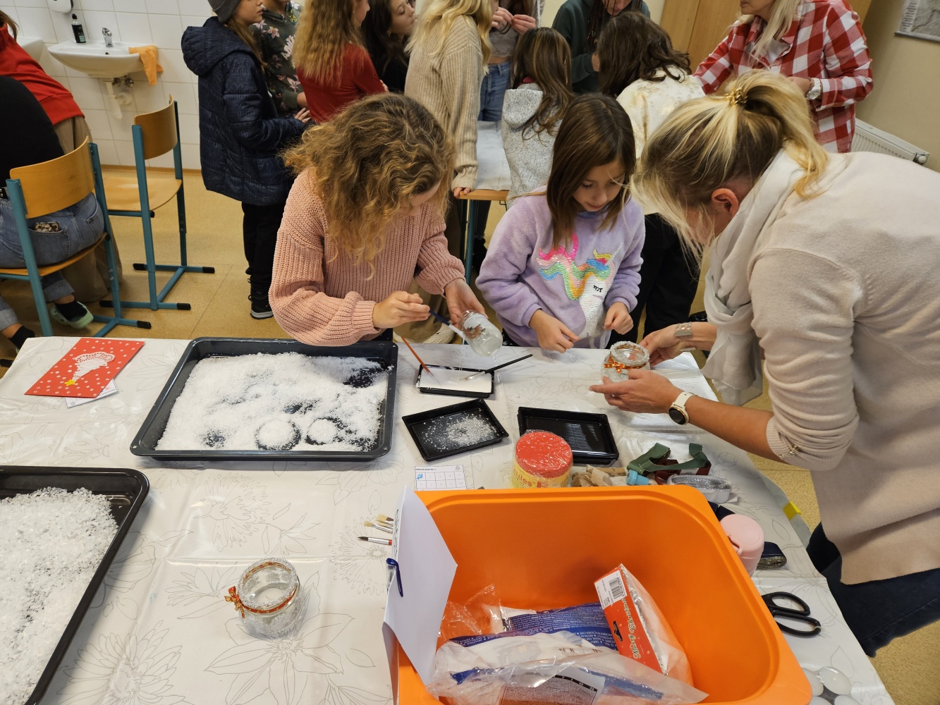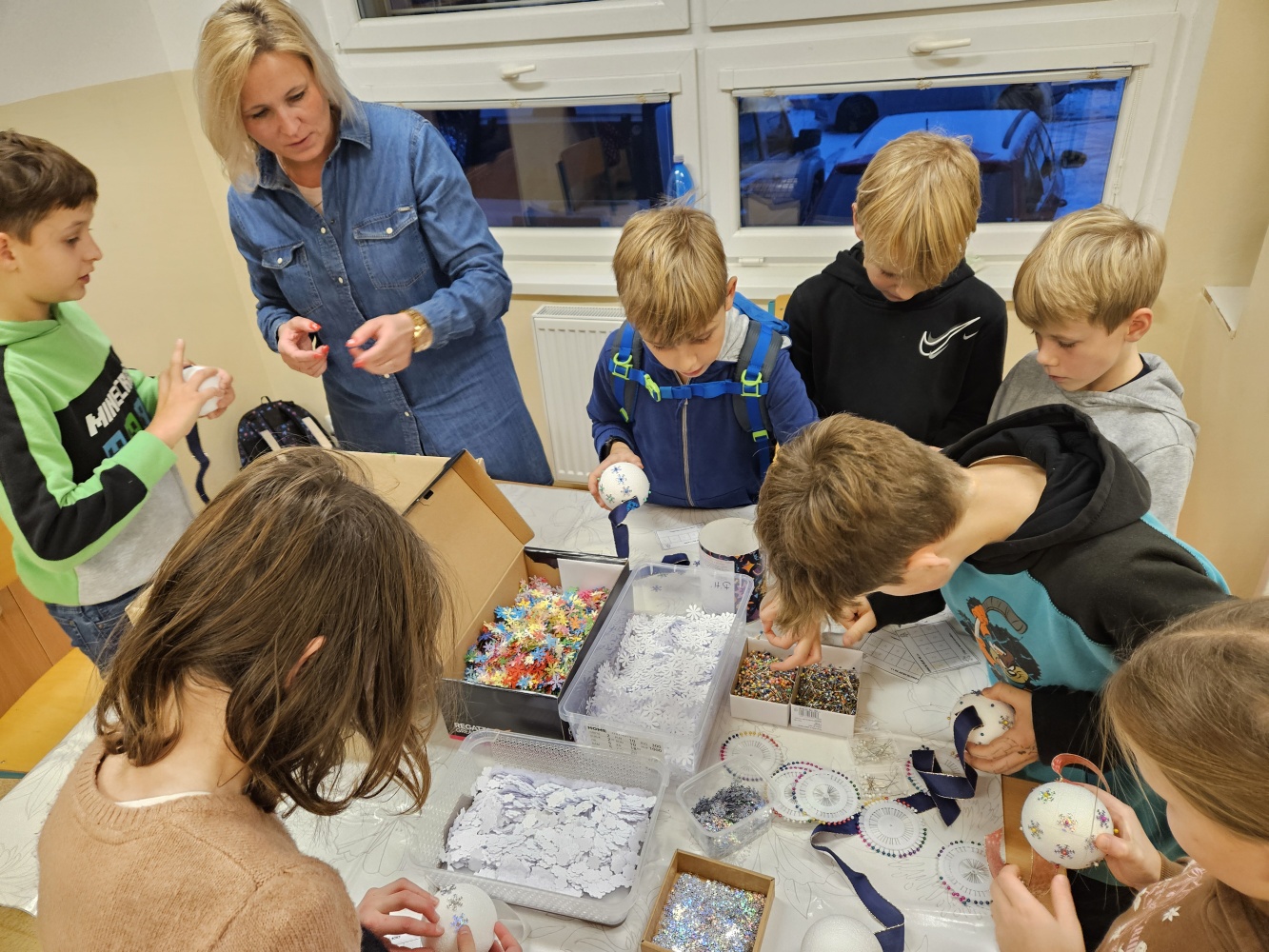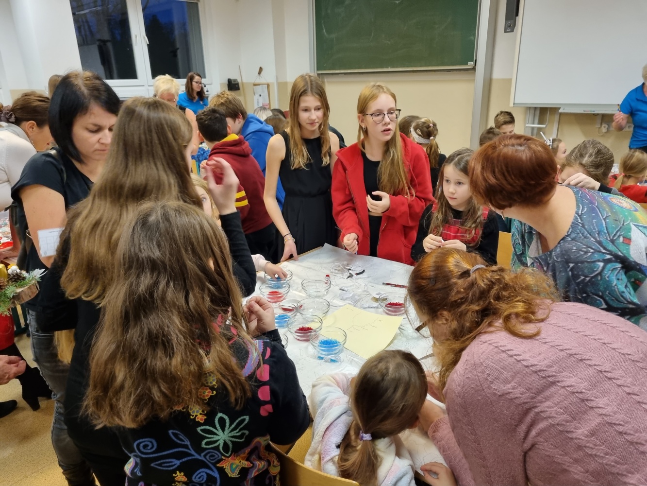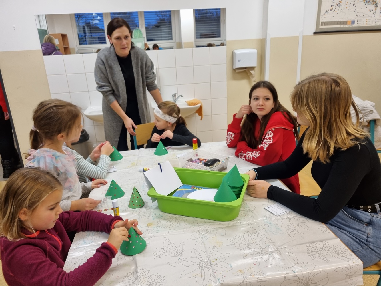 Tento rok bylo připraveno 14 stanovišť, která pod sebou skrývala výrobu krásných vánočních dekorací z různých materiálů, od polystyrenových dekorací přes dřevěné výrobky až po skleněné svícny. Mohli jste ale také navštívit stanoviště se zdobením perníčků, tradiční pečení cukroví, či stejně jako každý rok ochutnat zdravé pomazánky naší paní ředitelky.