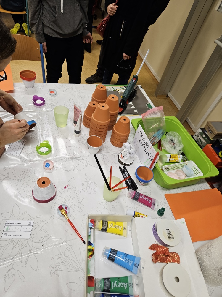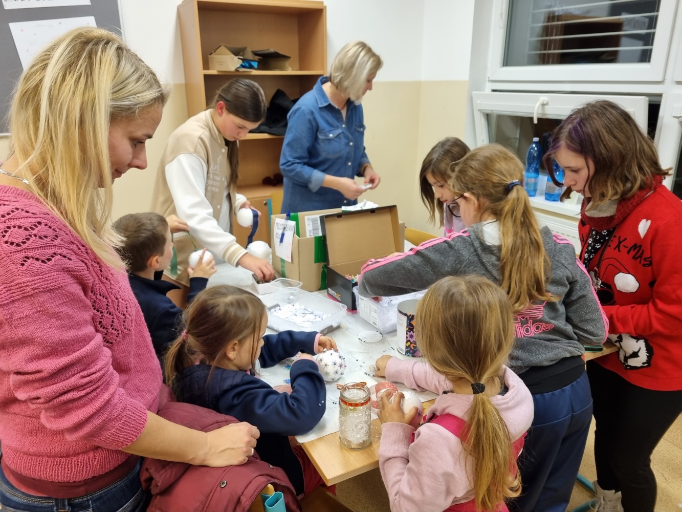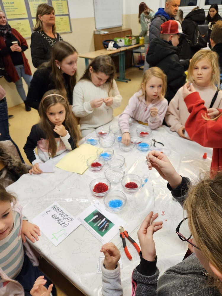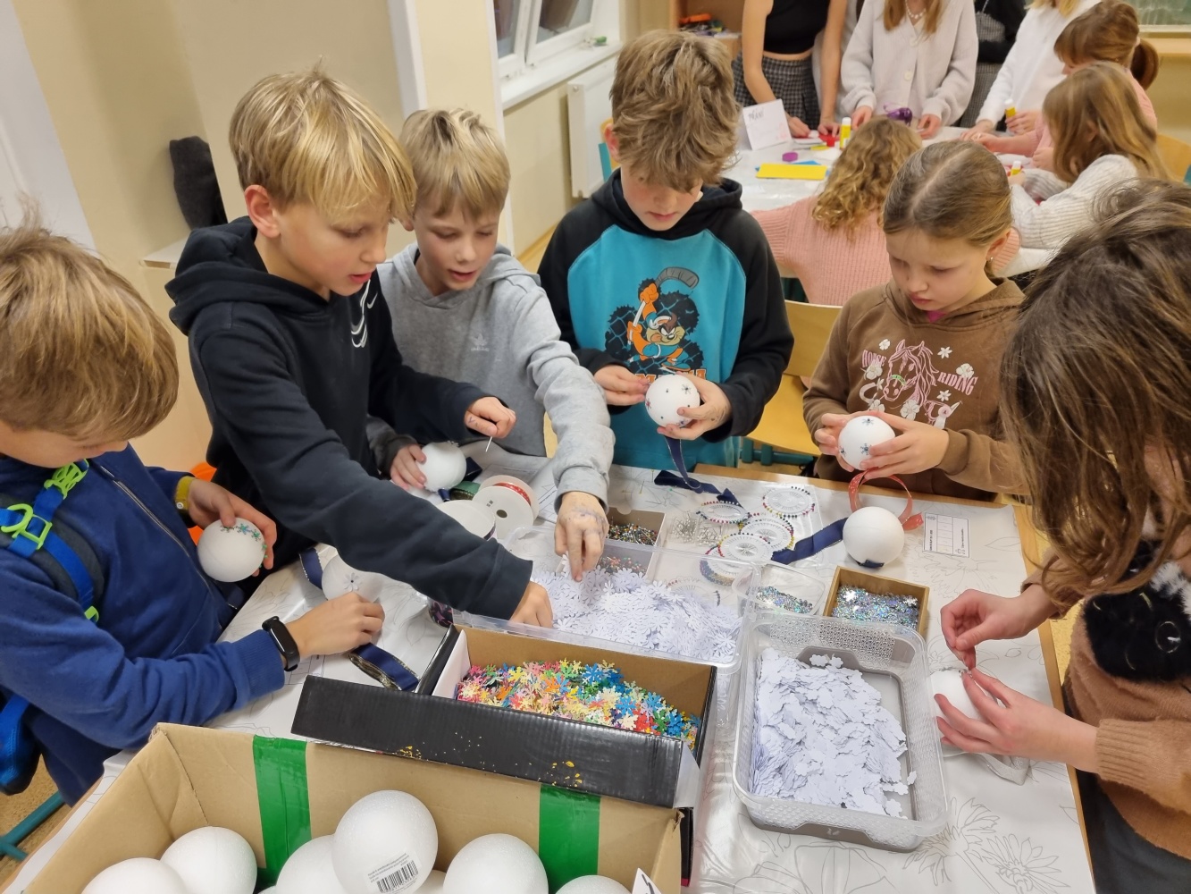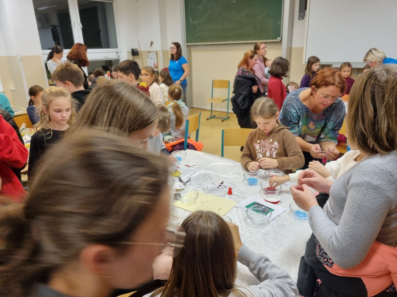 Tento rok bylo připraveno 14 stanovišť, která pod sebou skrývala výrobu krásných vánočních dekorací z různých materiálů, od polystyrenových dekorací přes dřevěné výrobky až po skleněné svícny. Mohli jste ale také navštívit stanoviště se zdobením perníčků, tradiční pečení cukroví, či stejně jako každý rok ochutnat zdravé pomazánky naší paní ředitelky.