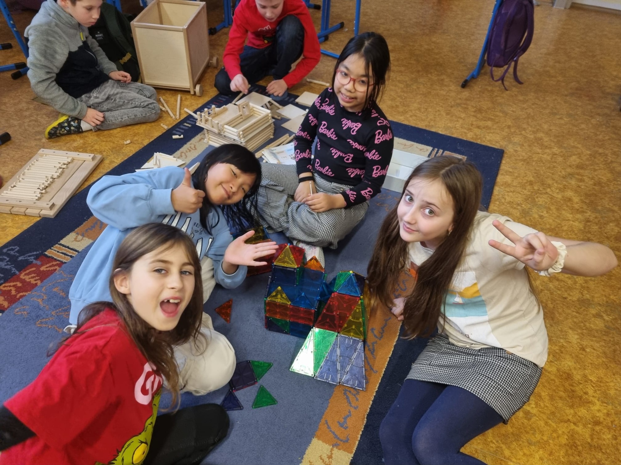 Velkou radost nám udělaly a dělají nově koupené dřevěné a magnetické stavebnice. Děti si každý svůj dřevěný dům i výrobek z magnetu fotí za účasti vychovatelek a sdílí na stránkách školy.