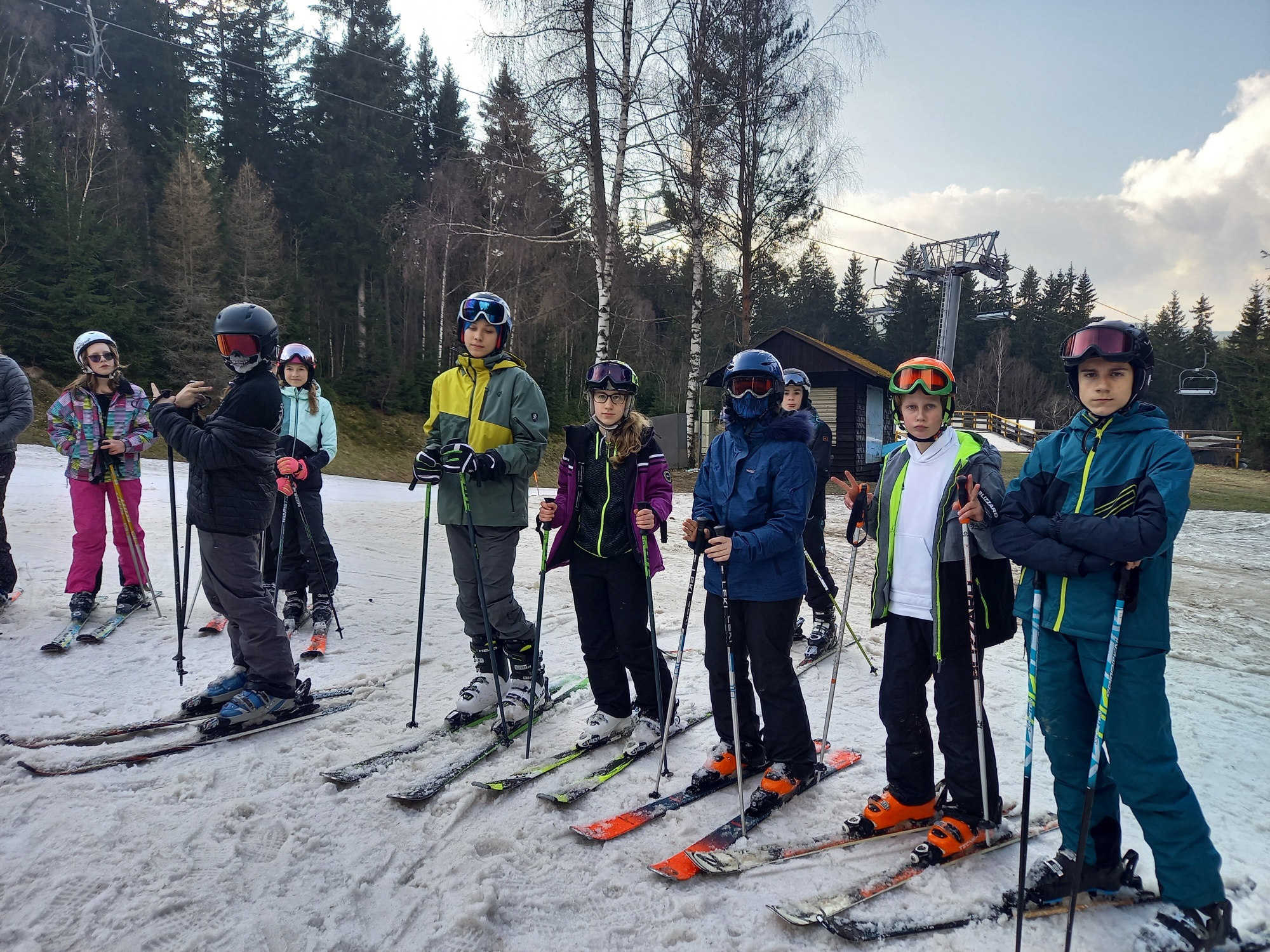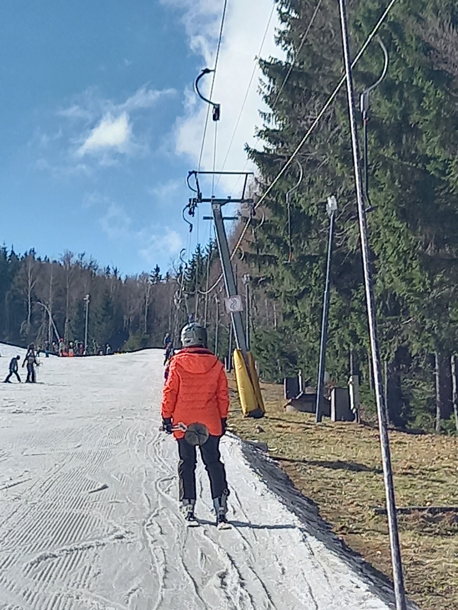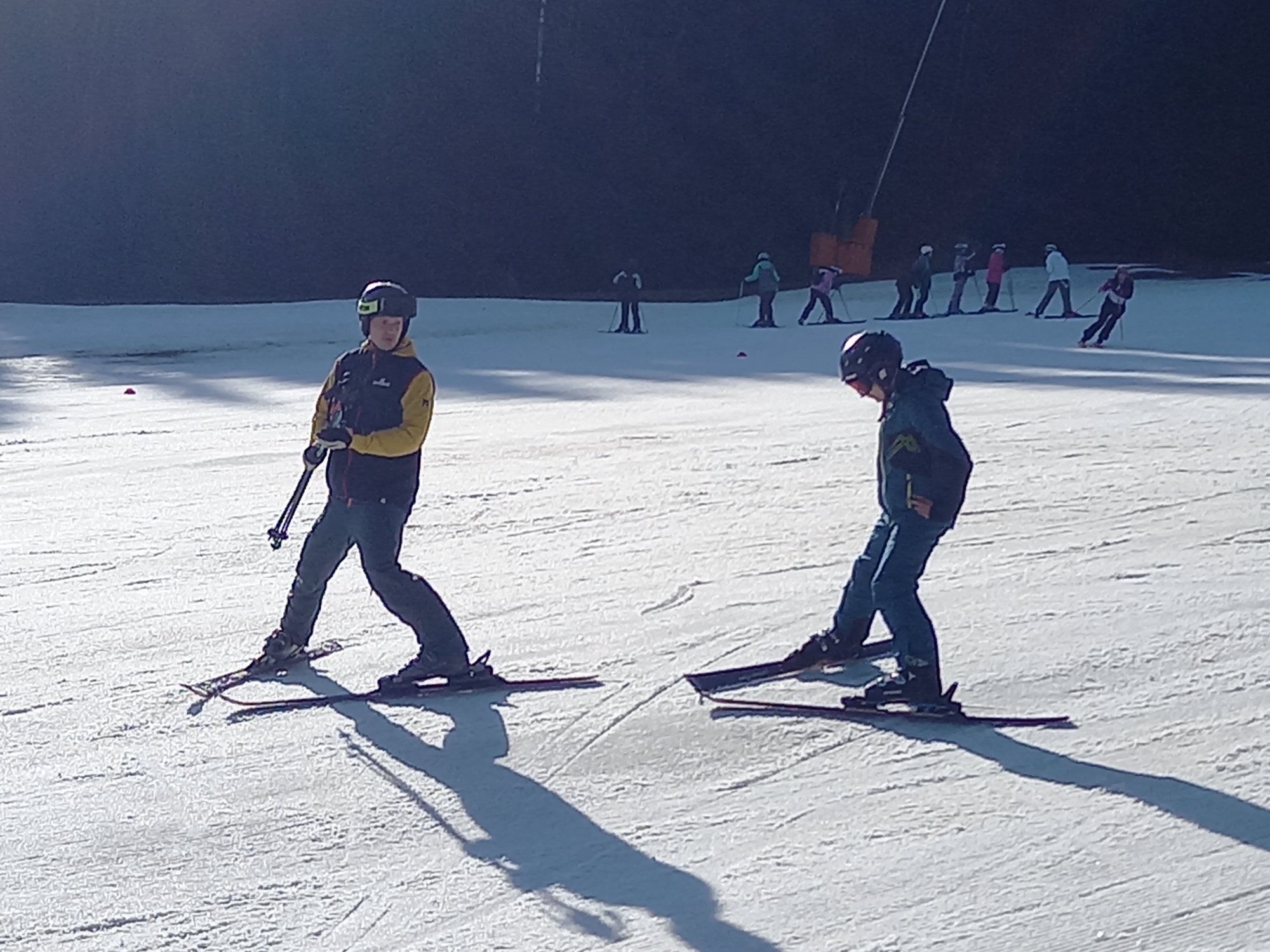 Dnes krásný slunečný den. Dopolední a odpolední lyžování na pomě, instruktoři děti přeřazují mezi družstvy tak, jak se zlepšují. V rámci toho, jak málo sněhu je, si lyžování užíváme. Začátečníci mají největší pokroky. I snowboardisté spokojení.