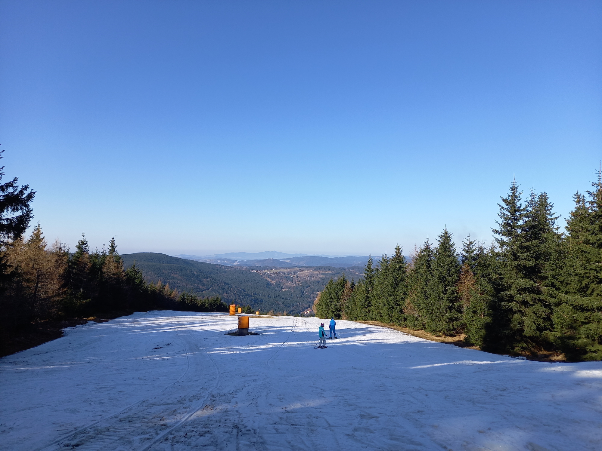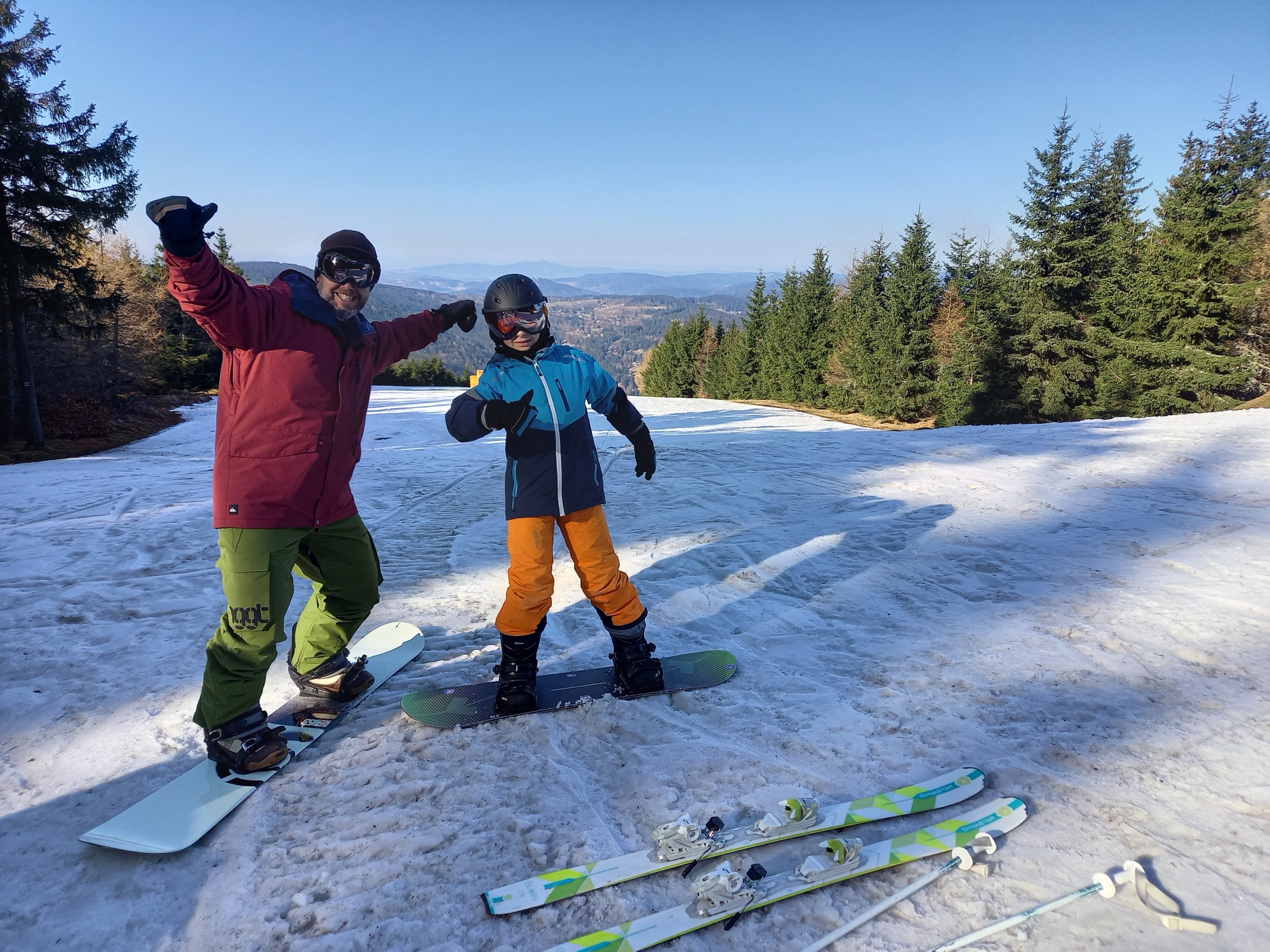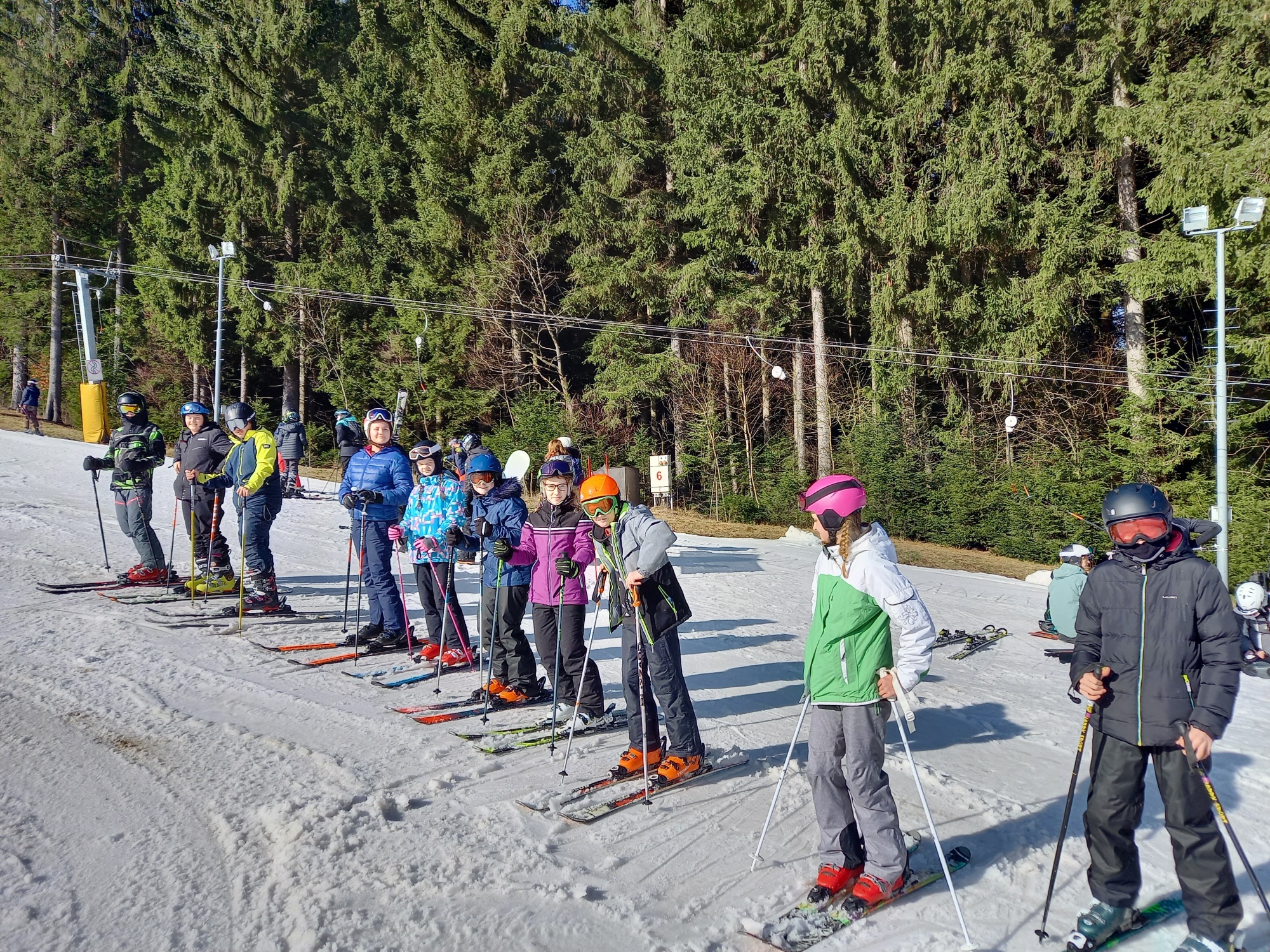 Dnes krásný slunečný den. Dopolední a odpolední lyžování na pomě, instruktoři děti přeřazují mezi družstvy tak, jak se zlepšují. V rámci toho, jak málo sněhu je, si lyžování užíváme. Začátečníci mají největší pokroky. I snowboardisté spokojení.
