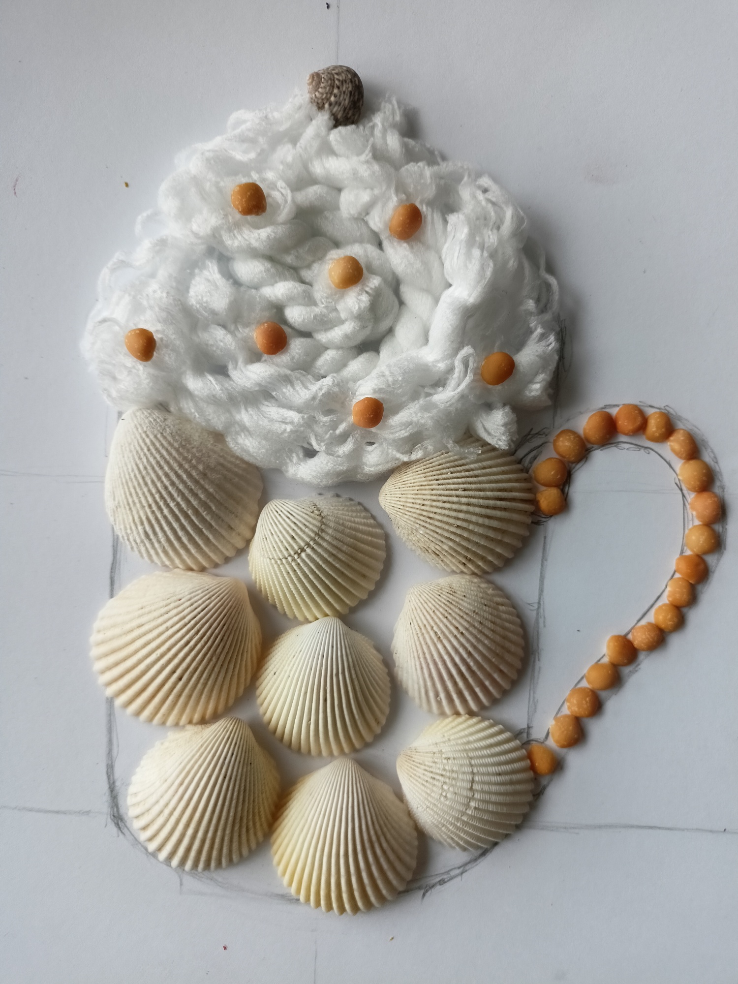 V VI. A a VI. B jsme teorii studijní kresby předmětu (v našem případě hrnečku) ozvláštnili asambláží.