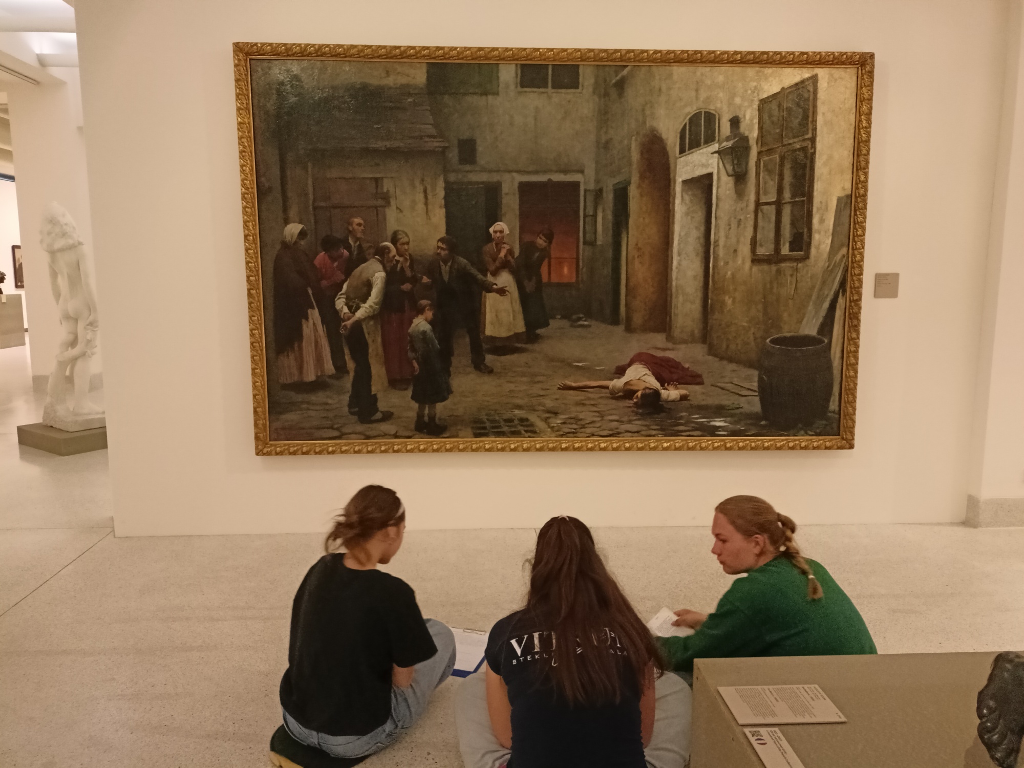 Od měsíce března do téměř konce května probíhaly Tvořivé workshopy pro naše žáky v Praze pod vedením lektorů z Národní galerie. Navštívili jsme Schwarzenberský palác (třída VII. A) a Veletržní palác (VII. B, VIII. A, VIII. B a IX. B). Ať již to byl program V galerii se skicákem, Hmota mluví, Umění dlouhého století, či V grafickém kabinetu, vždy šlo o program s tvořivou aktivitou, který se přizpůsoboval věku žáků. Seznámení se s díly a umělci v galerijním prostoru bylo vždy začátkem pro tvoření žáků. Výklad lektorů byl koncipován s přiměřeným množstvím informací a zahrnoval díla umělce, jejich tvorbu, historii místa galerie, ale kladl důraz i na percepci žáka, jeho tvořivého ducha a schopnost vnímat statický obraz. „Umět se dívat“ bych označila za nejdůležitější vjem, kterému se nám při programu velkou měrou dostávalo. Důležitost prostoru a možnosti tvořit v prostoru galerie považujeme za skvělou příležitost. Sami bychom si přáli i delší čas, abychom vše tvůrčí a tvořivé dostatečně „nasáli“. Workshopy byly naprosto skvělé a těšíme se s na další!