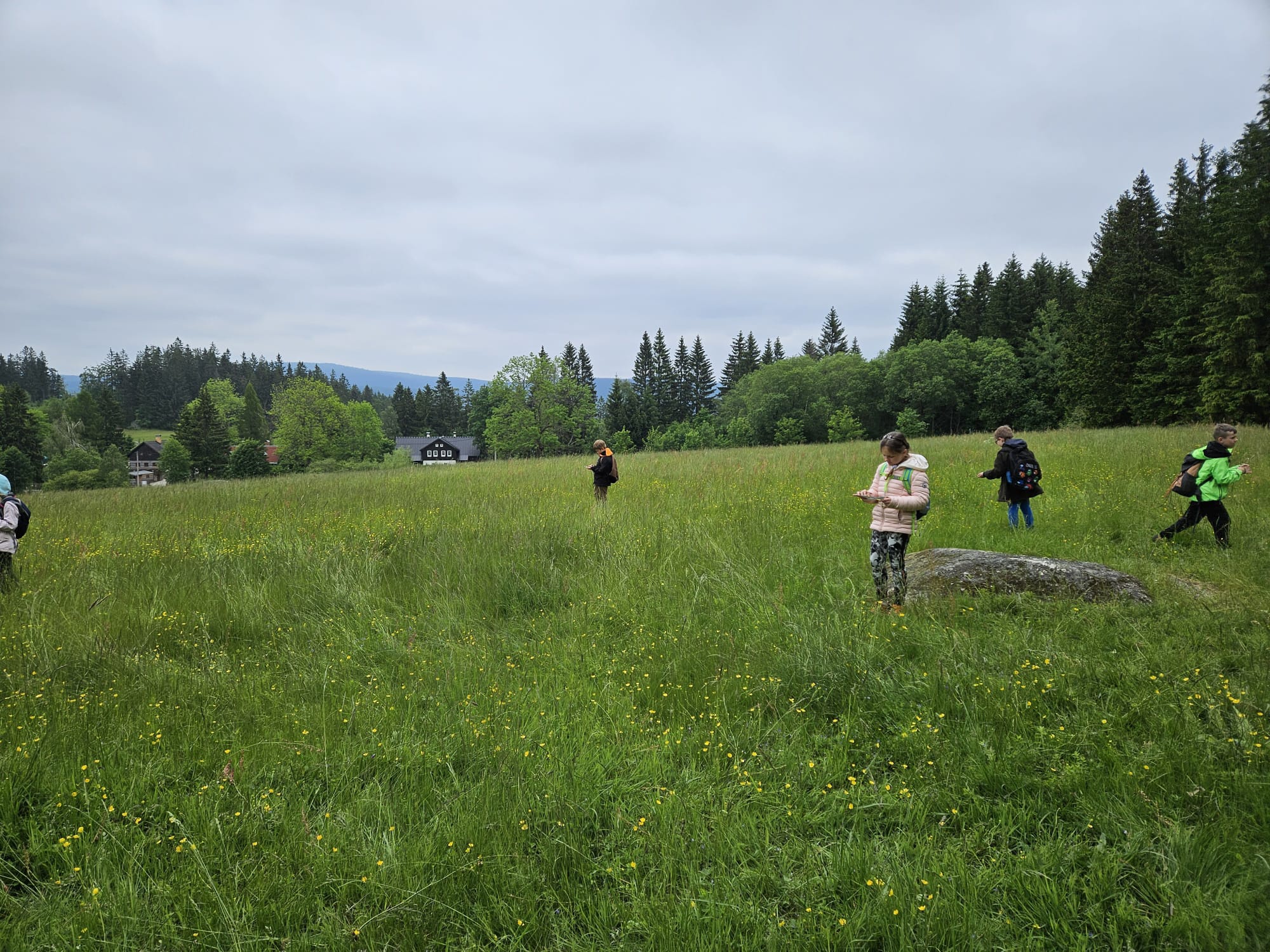Následovala výprava do nitra lesa, kde se děti staly malými detektivy. Pomocí zkušených průvodců poznávaly různé druhy stromů typické pro Jizerské hory a učily se rozpoznávat stopy zvířat, která v lese žijí, o rostliny, drobné živočichy a znaky, podle kterých poznáme zvířata.