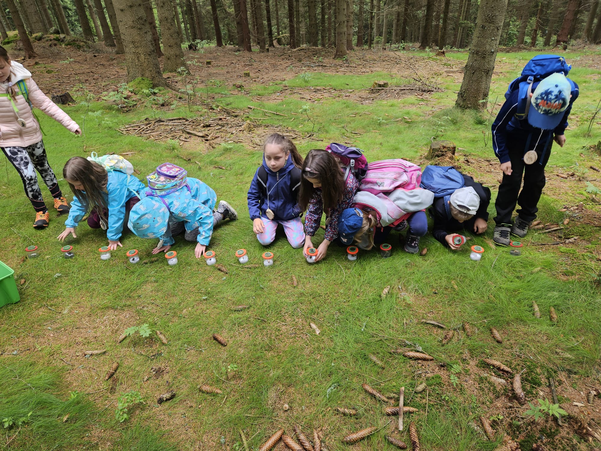 Dopoledne začalo seznámením s důležitou profesí – lesníkem. Děti se dozvěděly, jak lesníci pečují o les a zajišťují jeho zdraví a prosperitu. Naučily se také, jak se v lese chovat ohleduplně a zodpovědně, abychom chránili tento vzácný poklad pro budoucí generace. Velkým tématem dopoledne byl kůrovec – škůdce, který ohrožuje zdraví stromů.