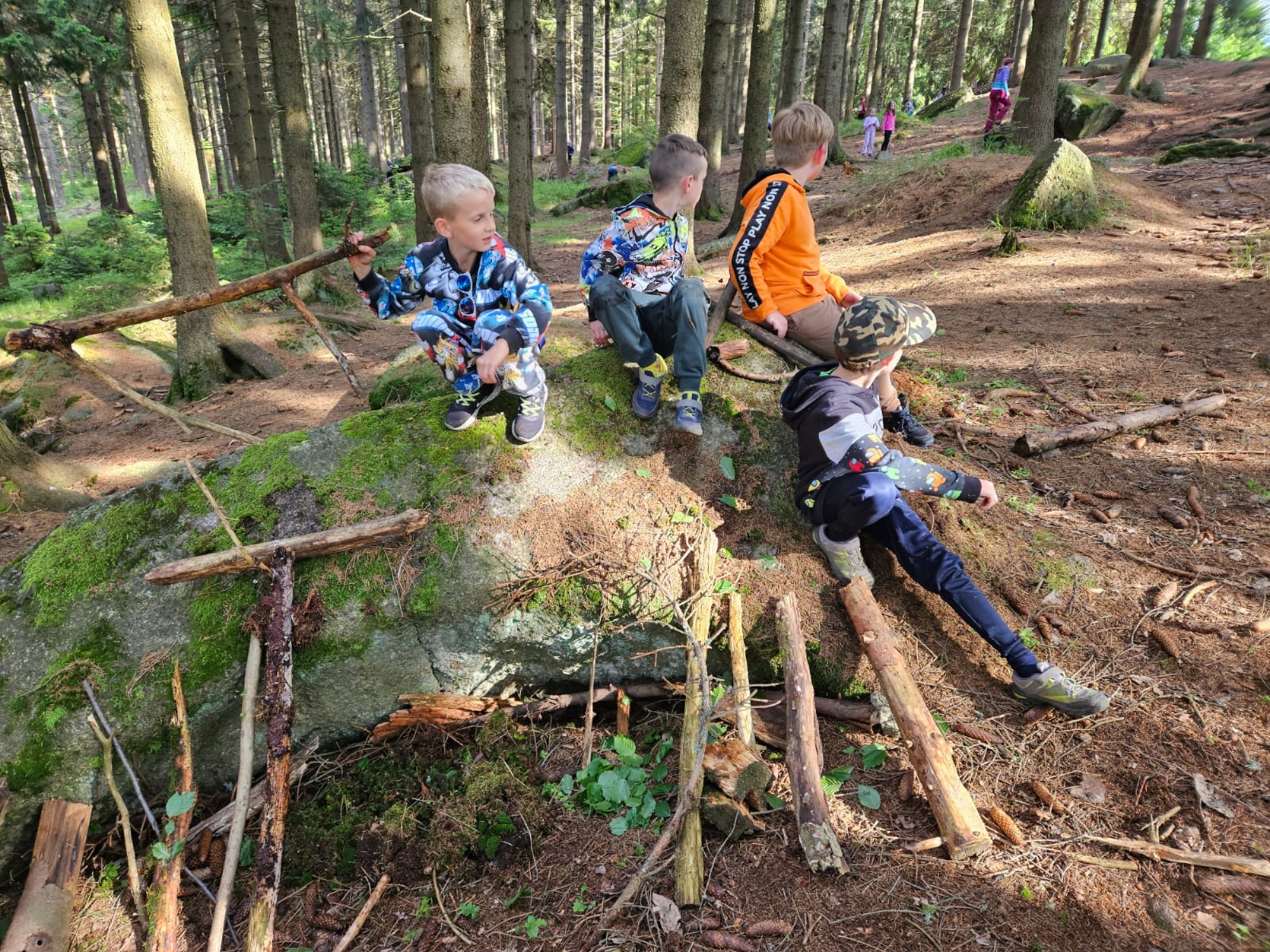 Během cesty přišla na řadu také zábava a tvoření. Děti si vlastnoručně vyrobily dřevěné medaile, které jim budou připomínat tento výjimečný den. Nechyběly ani různé kvízy a hry, které prověřily jejich znalosti o lese a jeho obyvatelích.