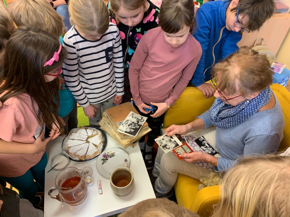 Je to vitální milá dáma, která ve Velkých Přílepech žije od malička. Její povídání o tom, jak to tu vypadalo dříve, bylo pro žáky druhých tříd i pedagogy velice zajímavé. Nejen že popsala, jak se za poslední léta změnila vesnice, hry dětí, oblečení, pomůcky do školy i vlastní vyučování, ale také nám řekla, jak vlastně vypadala budova naší školy. Věděli jste, že to dříve byl hotel???