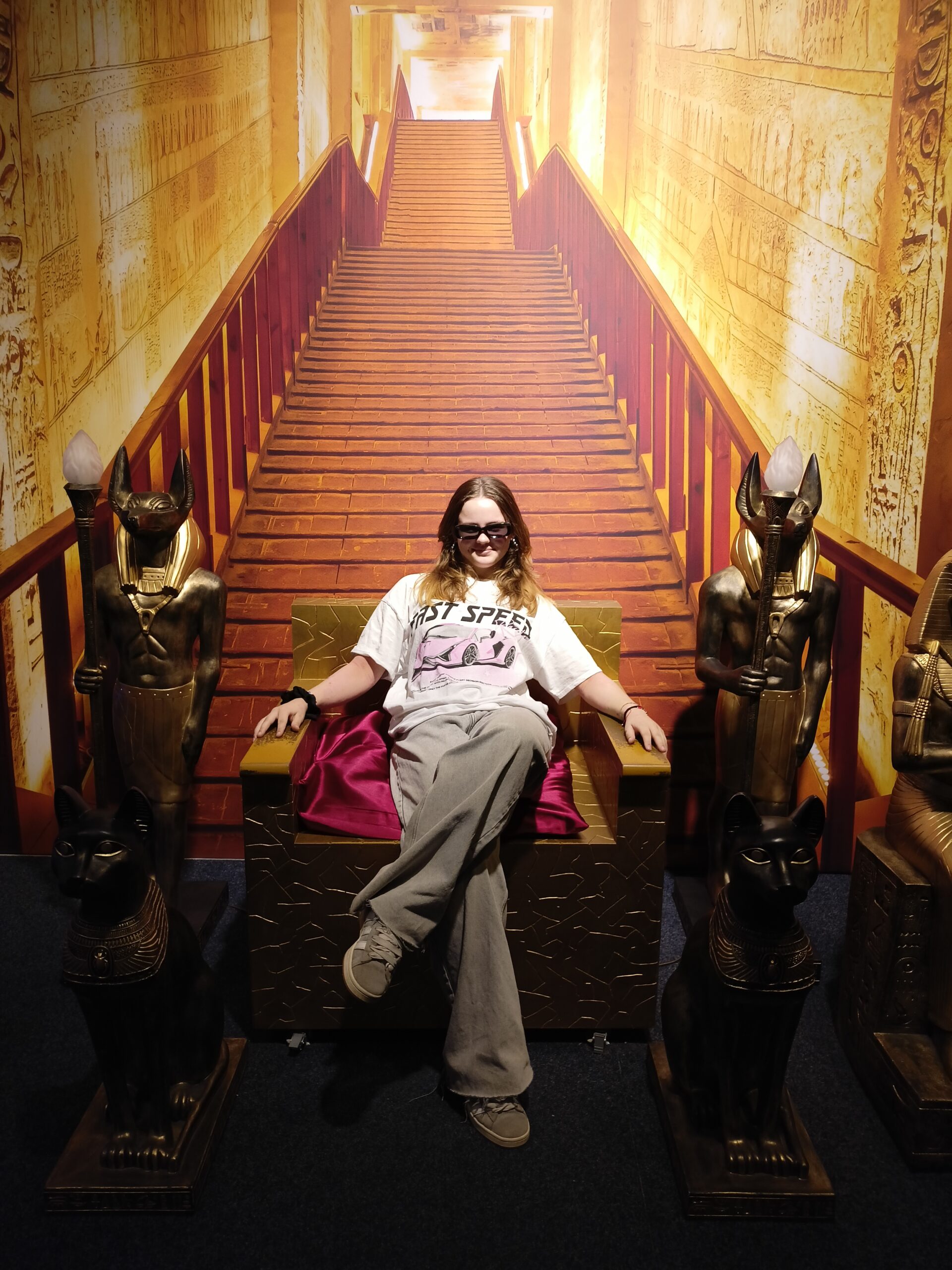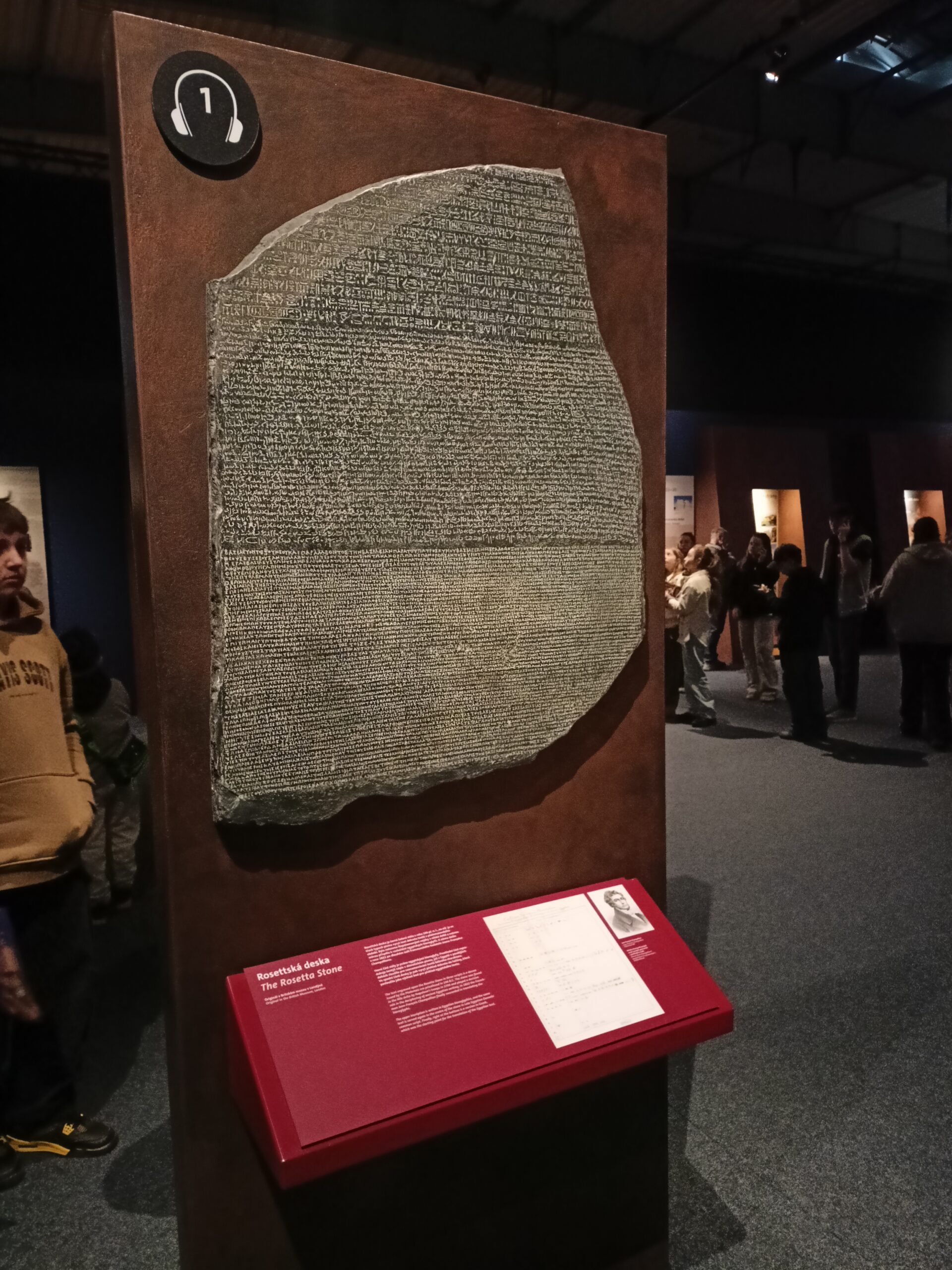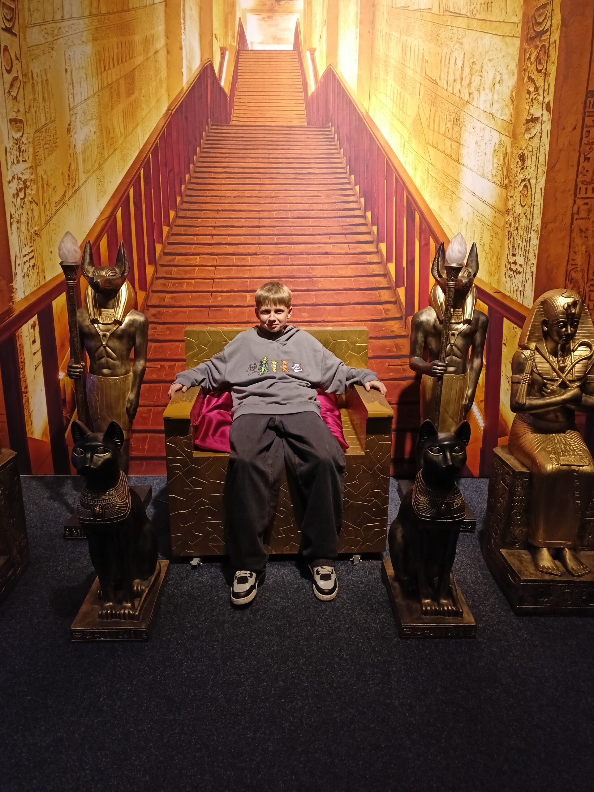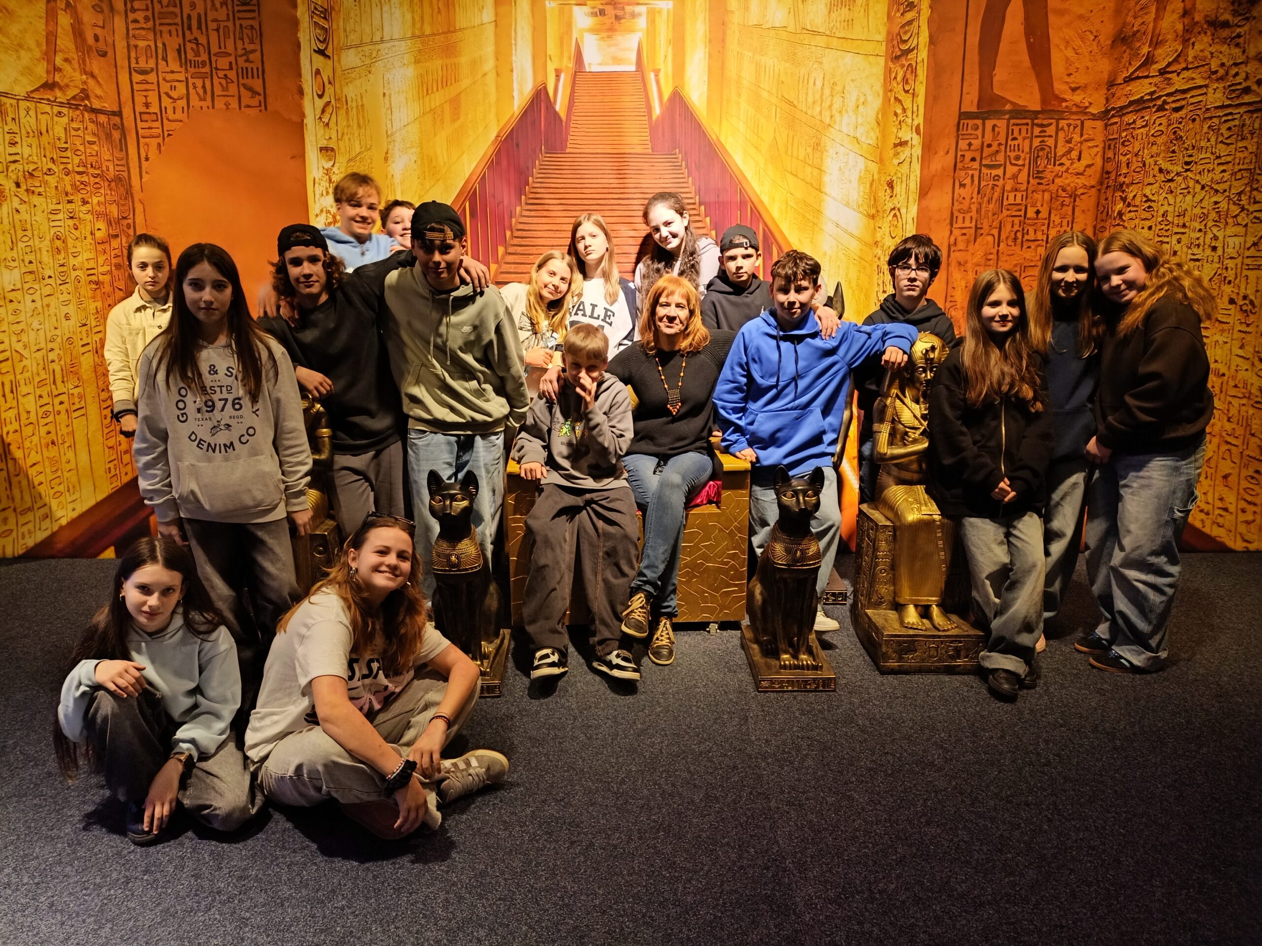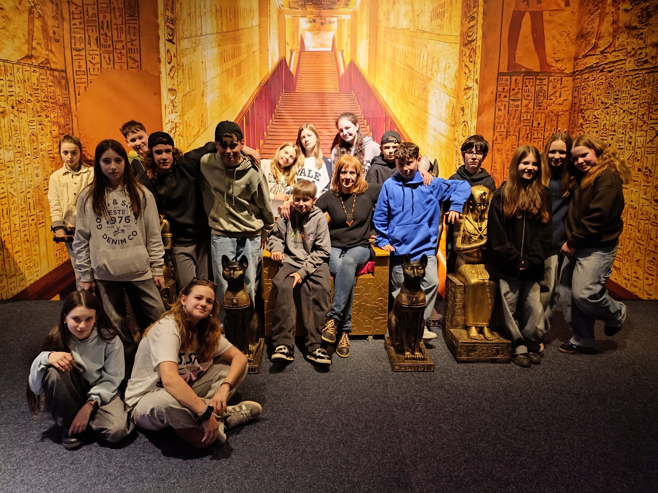 Dne 7. 3. 2025 v pátek jsme se společně s třídami VI. A a VI. B ocitli ve starověkém Egyptě. Přesněji řečeno v době panovníka Tutanchamona, jemuž byla celá výstava TUTANCHAMON věnována. Pokud budeme ještě konkrétnější – jeho době i životu ve starověkém Egyptě. Výstava mapuje život tohoto panovníka, včetně nalezení jeho ostatků pod vedením archeologa Howarda Cartera. Výstava byla fascinující, vědomostně obohacující a vizuálně nasycená. Velké prostory, několik místností včetně promítání a prostorové koncepce učinily z výstavy přímo klenot. Žáci si informace k jednotlivým exponátům mohli pustit i v osobním audioprůvodci. Někteří žáci byli prostorem a koncepcí výstavy natolik potěšeni a fascinováni, že by nejraději zůstali i déle. Věříme, že načerpaný vizuál a informace využijí nejen ve škole, ale i ve volném čase – konkrétně v obohacení své představivosti.