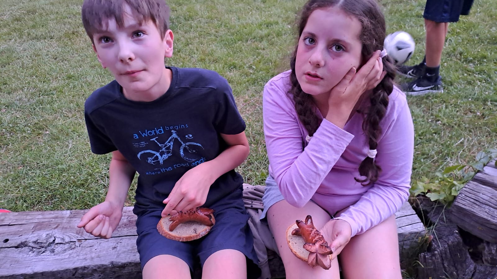 Dnes ráno jsme vstali do prosluněného dne. Budíček byl v půl osmé a v půl deváté si děti pochutnávaly na čerstvých houskách a obloženém talíři.