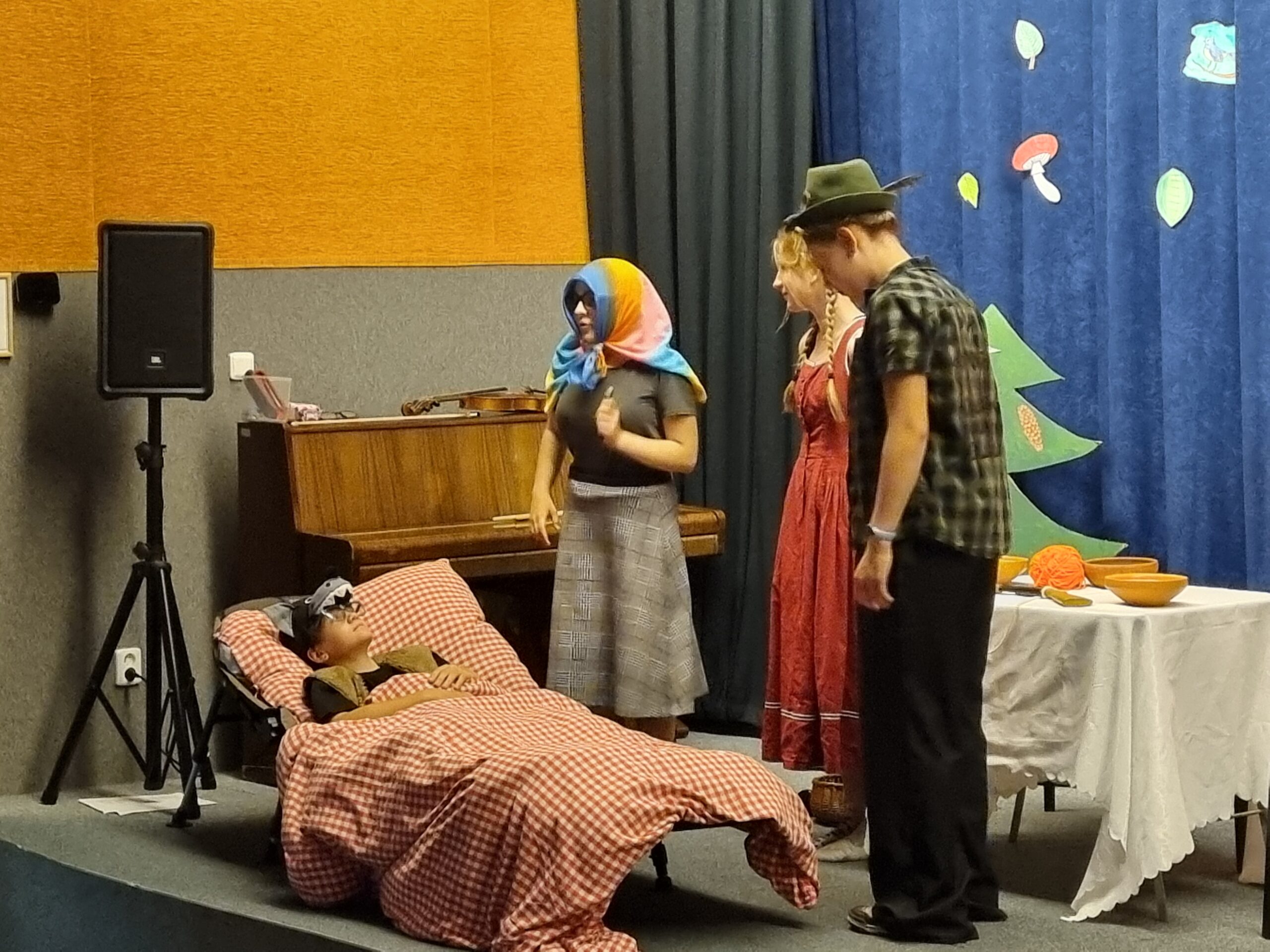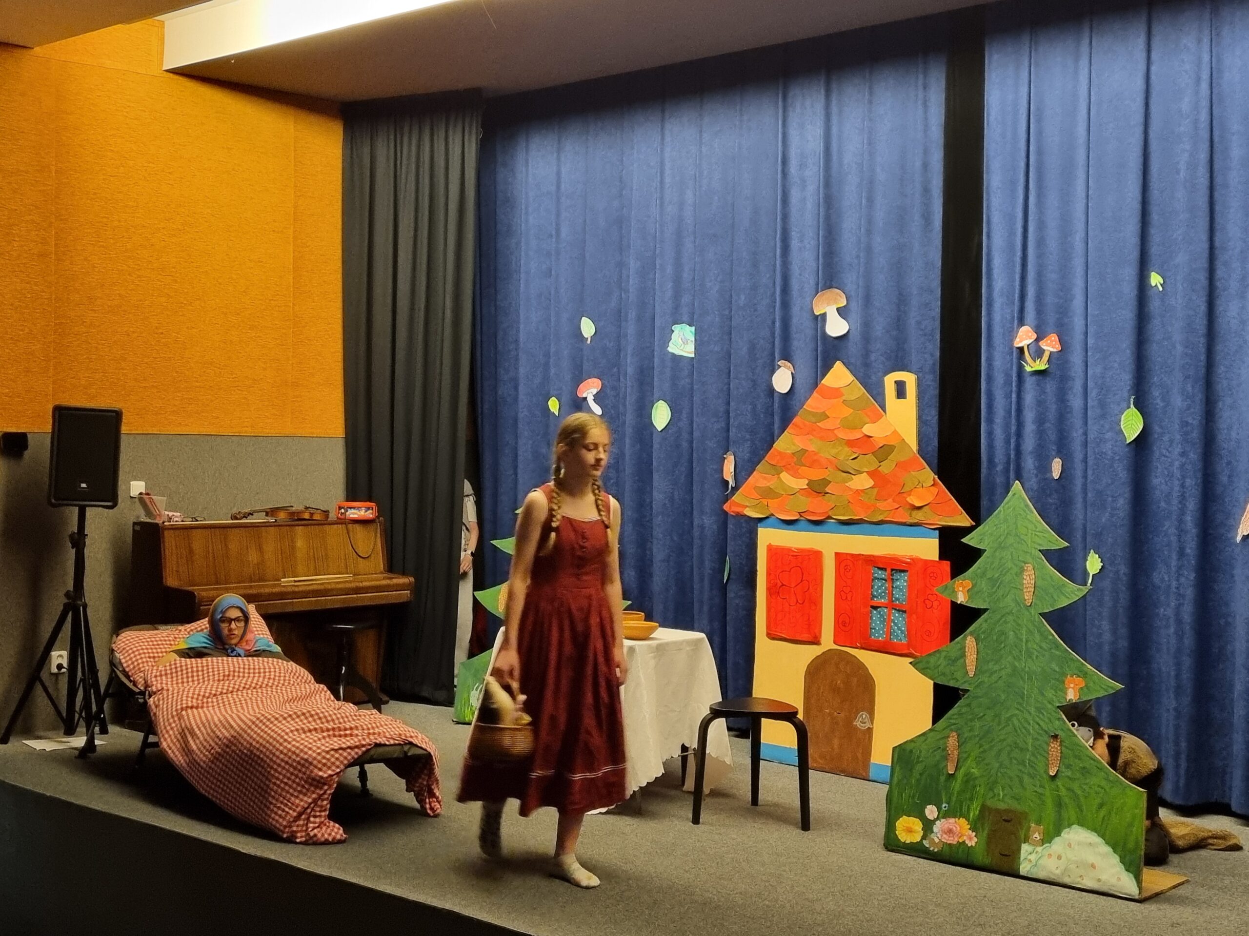Dopoledne 12. 6. se neslo ve znamení pohádkových postav, zpěvu a radosti. Děti z hudebního kroužku spolu se spolužáky, kteří se chtěli do vystoupení také zapojit a podpořili ho sborovým zpěvem, představily dvě krásné zpívané pohádky – Červenou Karkulku a O Budulínkovi. Představení bylo určeno našim nejmenším – dětem z mateřské školy a žákům 1. a 2. tříd.
