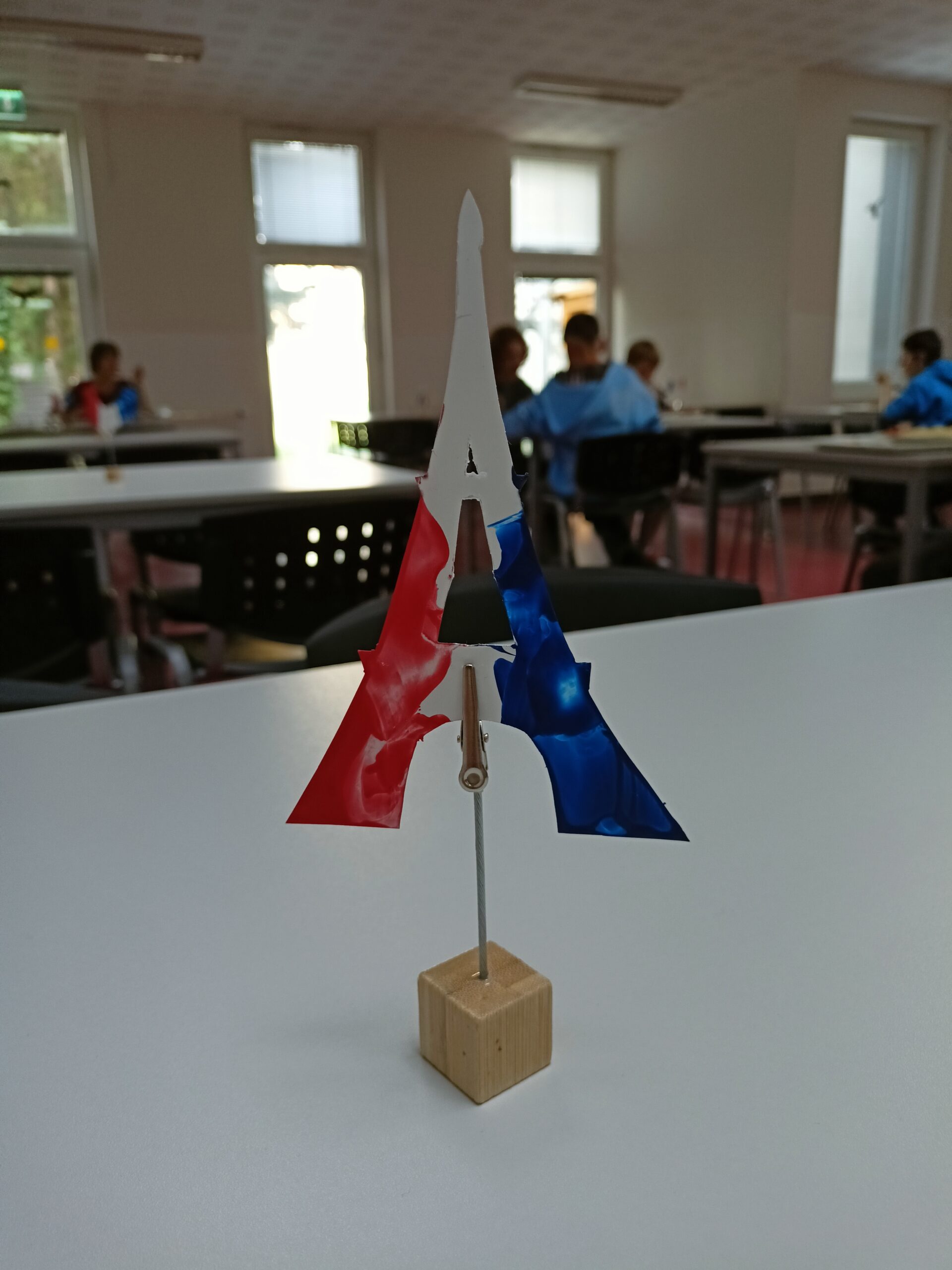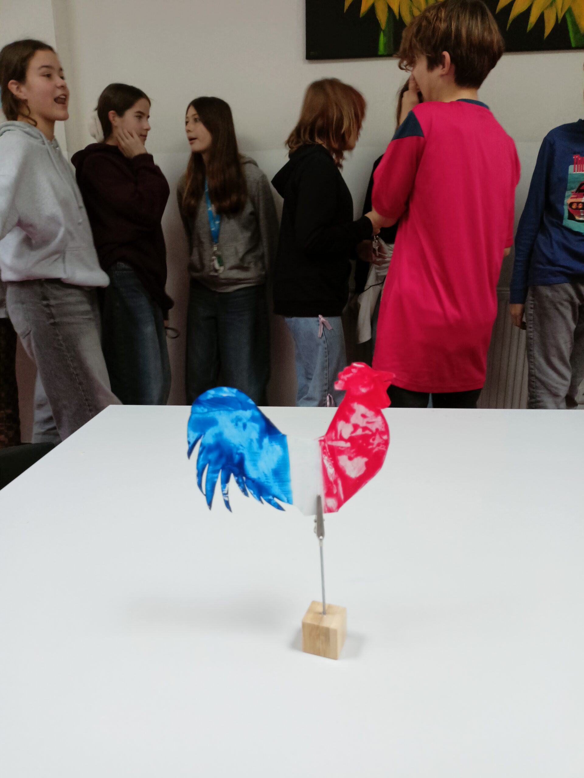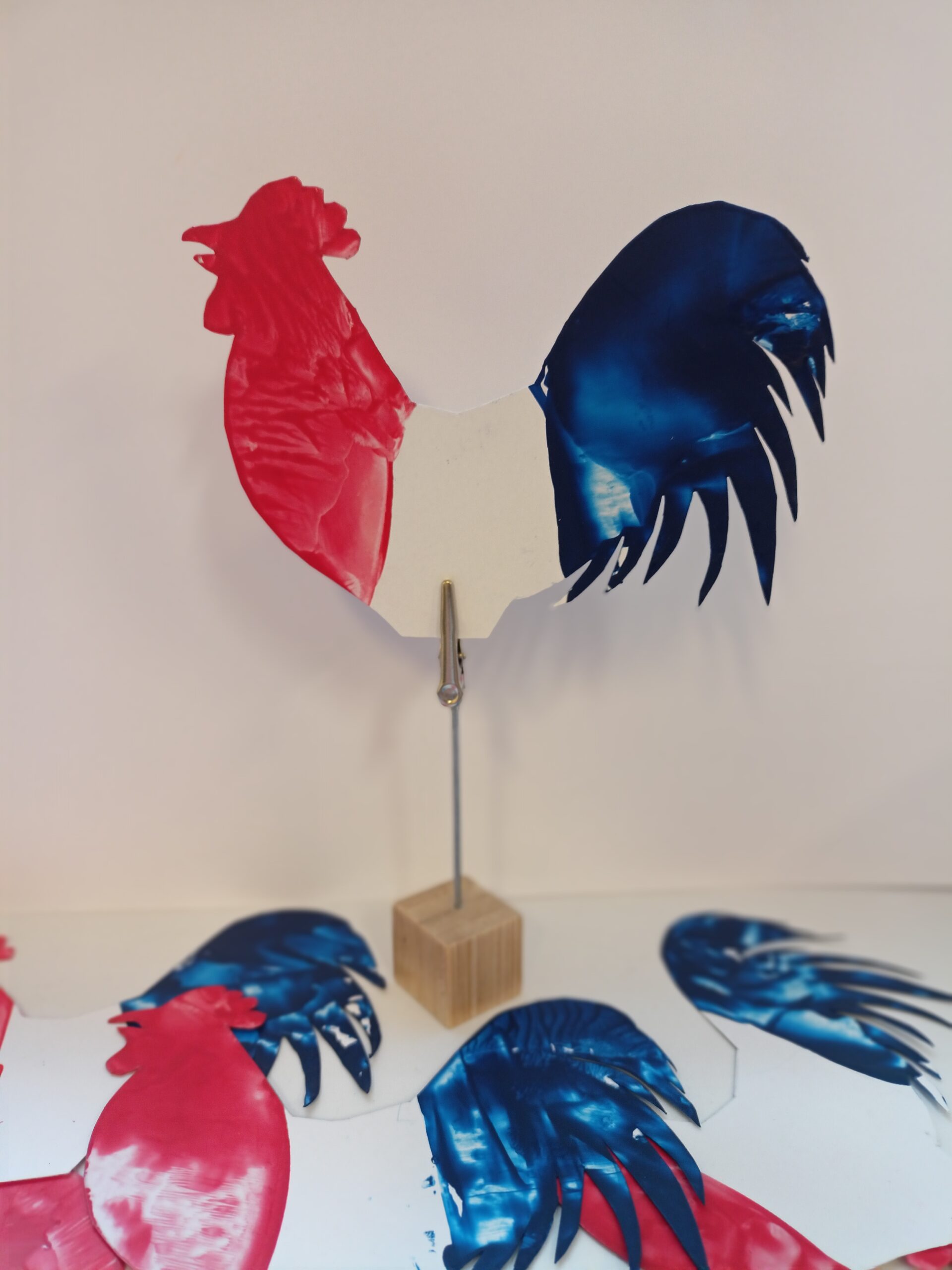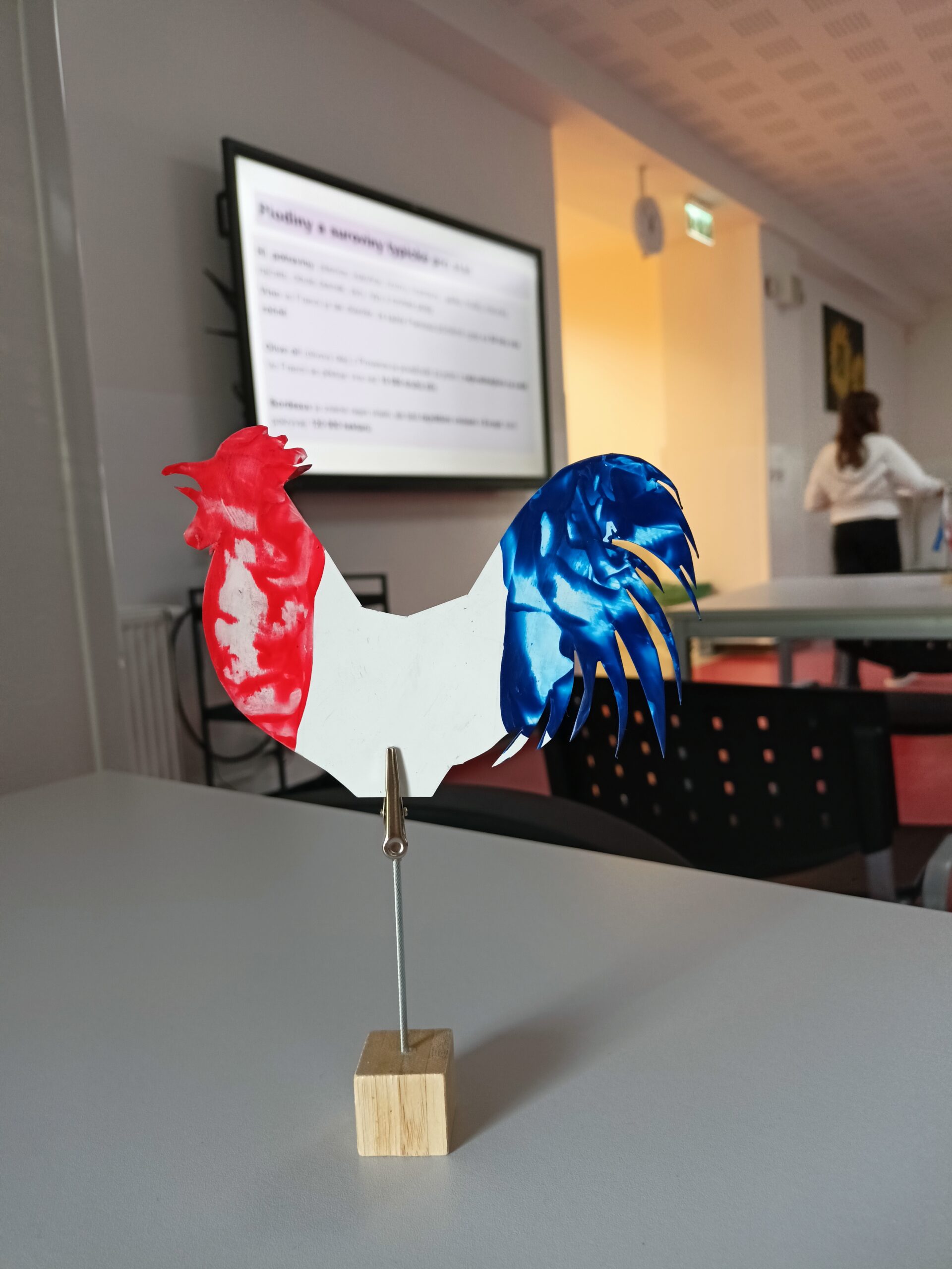 Druhostupňovou výdejnu ozdobili galští kohouti vyvedení metodou enkaustiky také v trikoloře. A během oběda běžely prezentace deváťáků o Francii, její kuchyni, zvyklostech a zajímavostech.