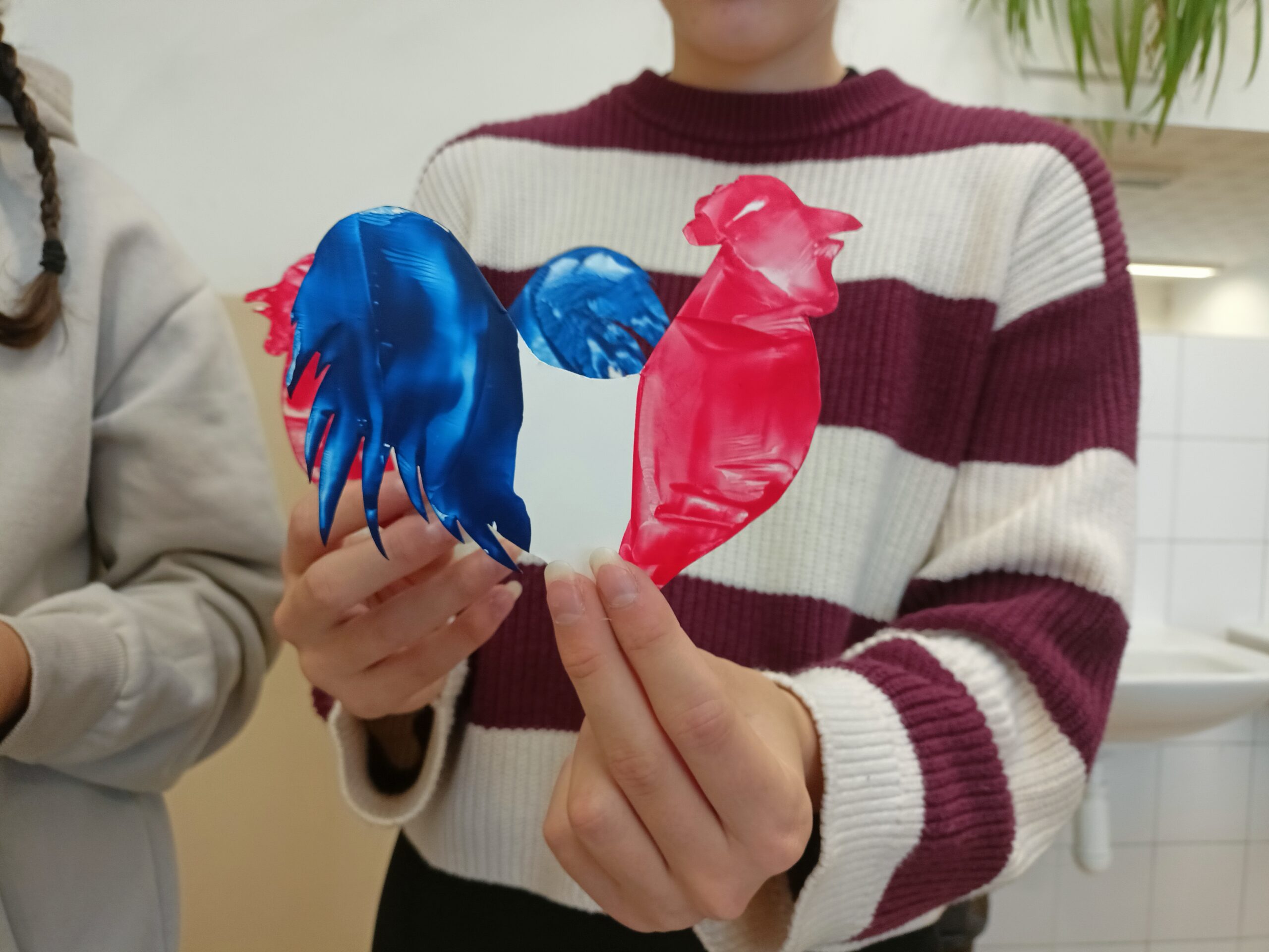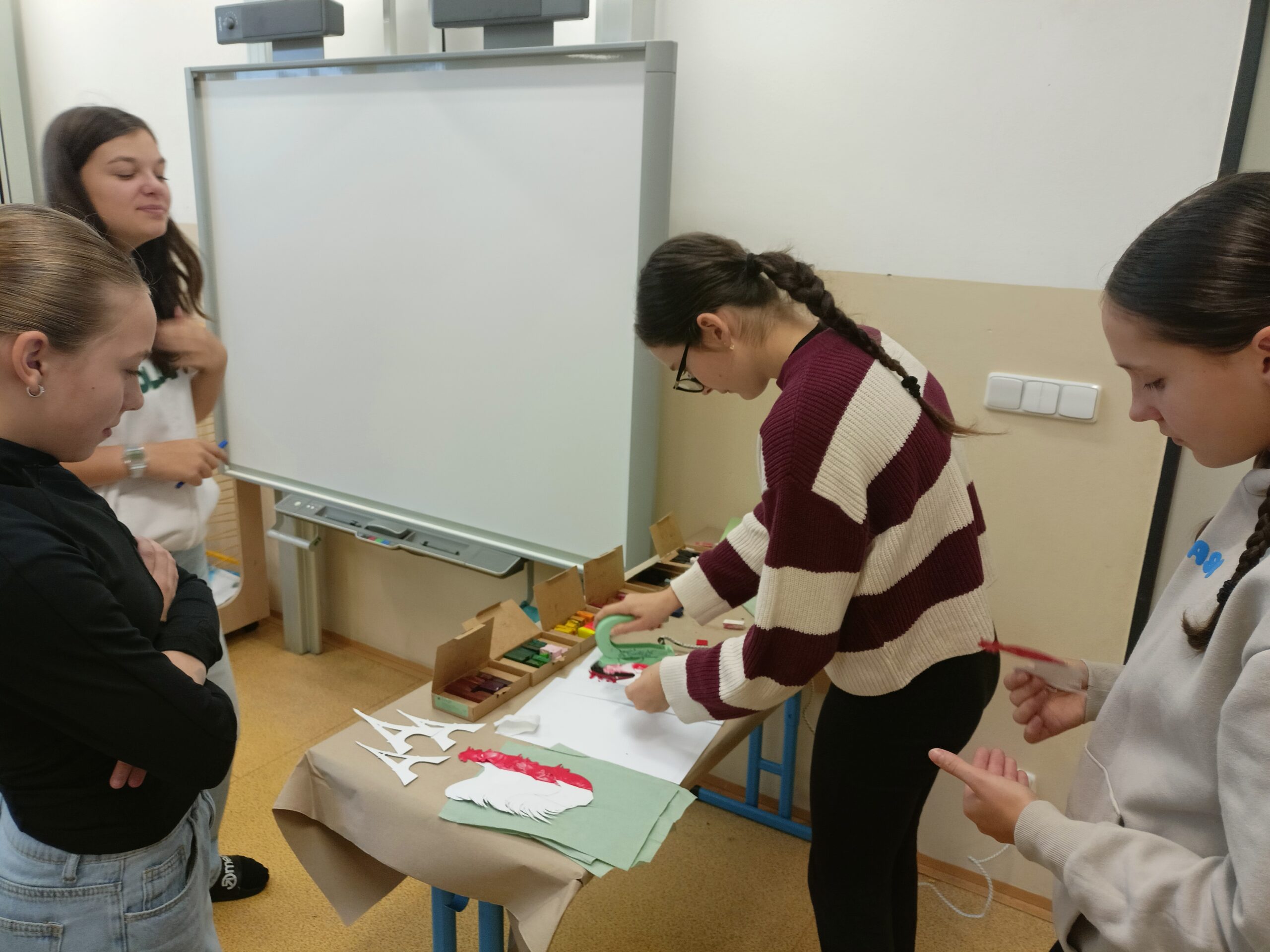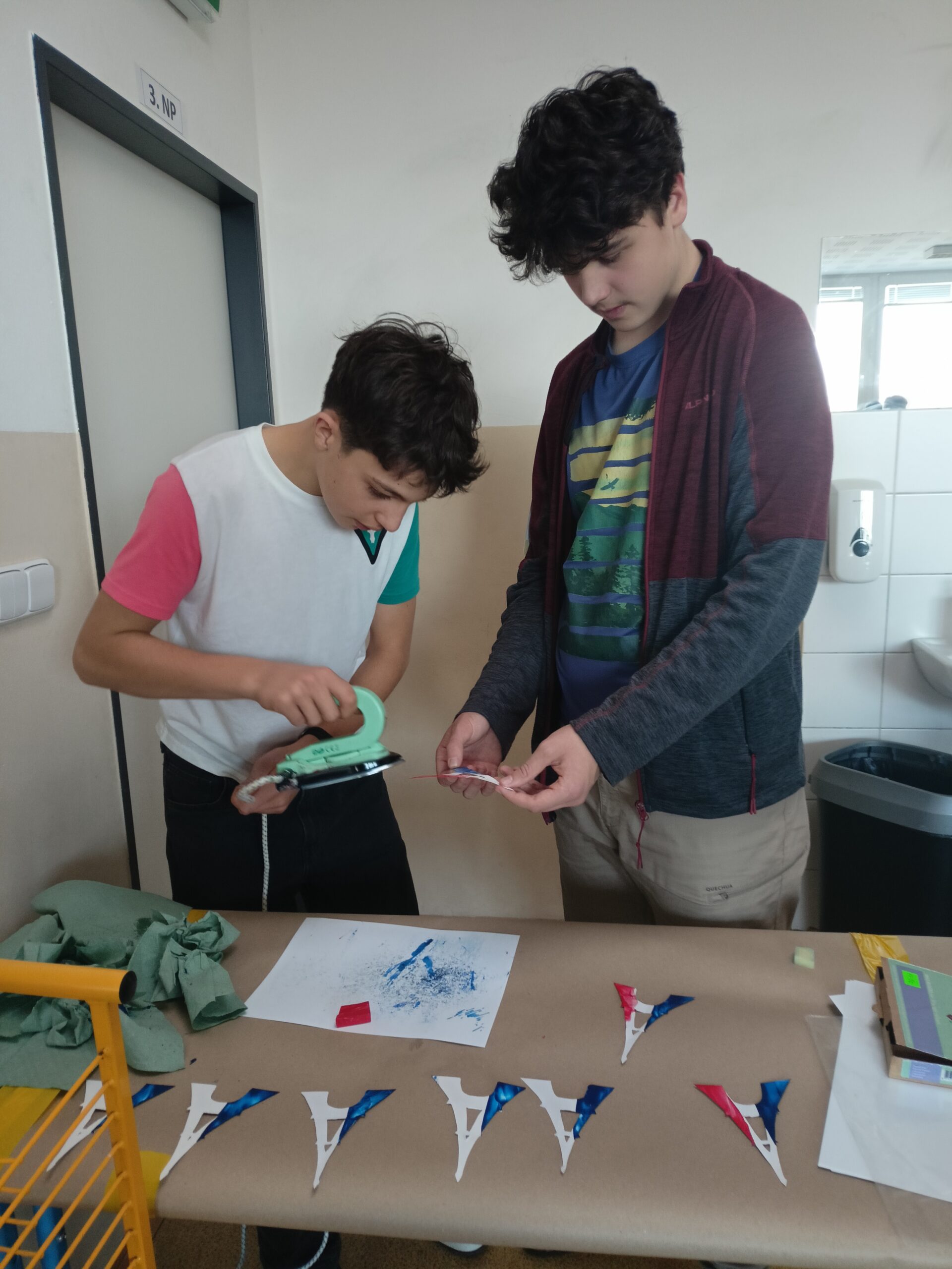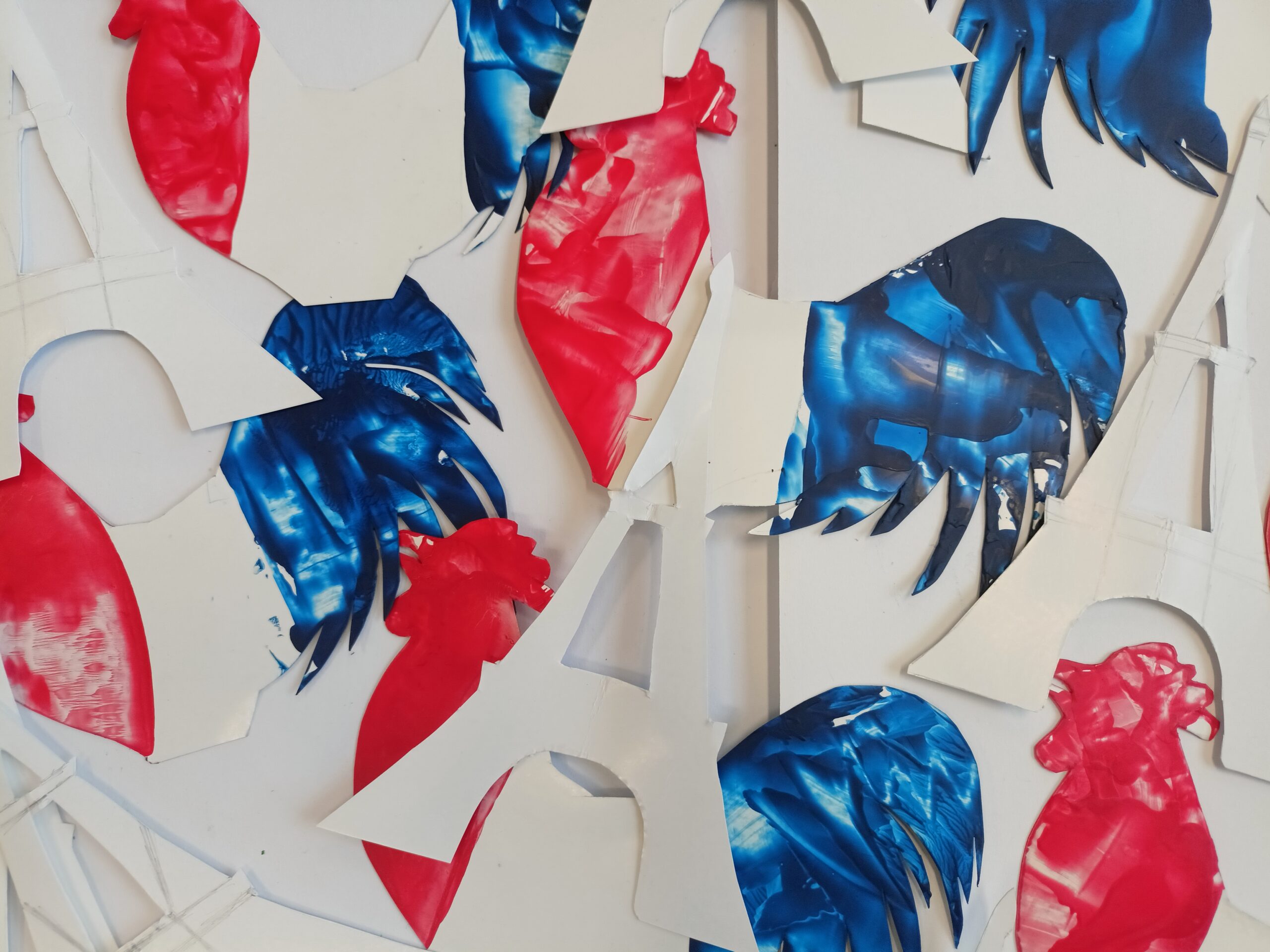 Druhostupňovou výdejnu ozdobili galští kohouti vyvedení metodou enkaustiky také v trikoloře. A během oběda běžely prezentace deváťáků o Francii, její kuchyni, zvyklostech a zajímavostech.