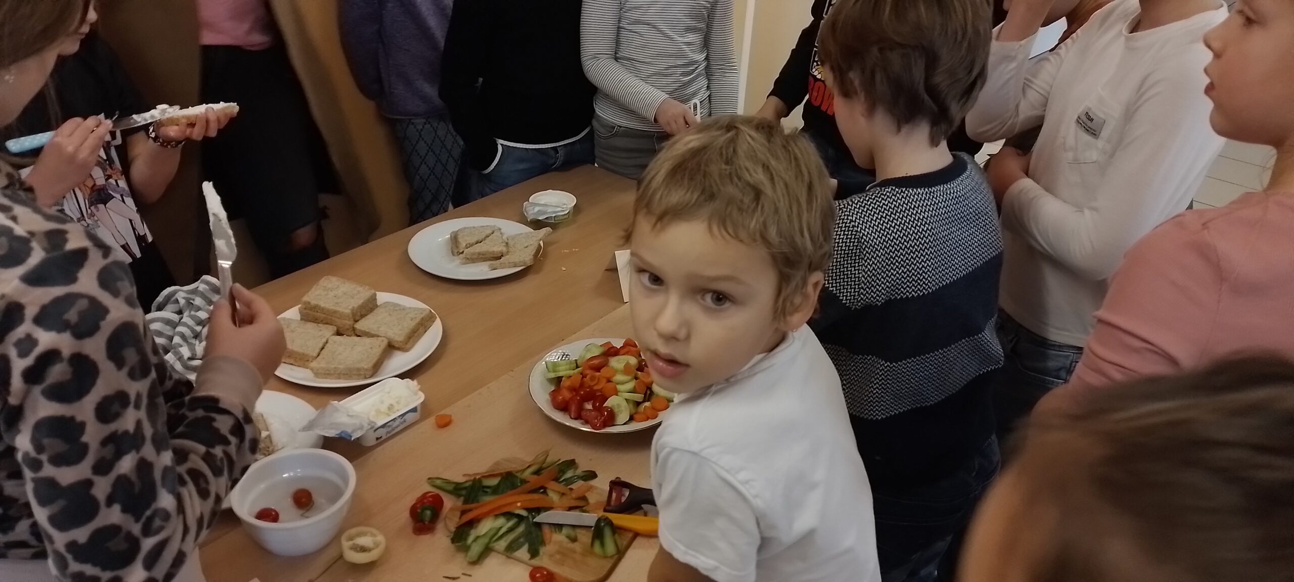 V rámci celoškolního projektu „Jídlo dělá člověka“ se v družině konala kuchařská soutěž MasterChef Junior, při které si děti vyzkoušely přípravu nejen domácích pomazánek a zdobení různého druhu pečiva, ale také týmovou spolupráci.