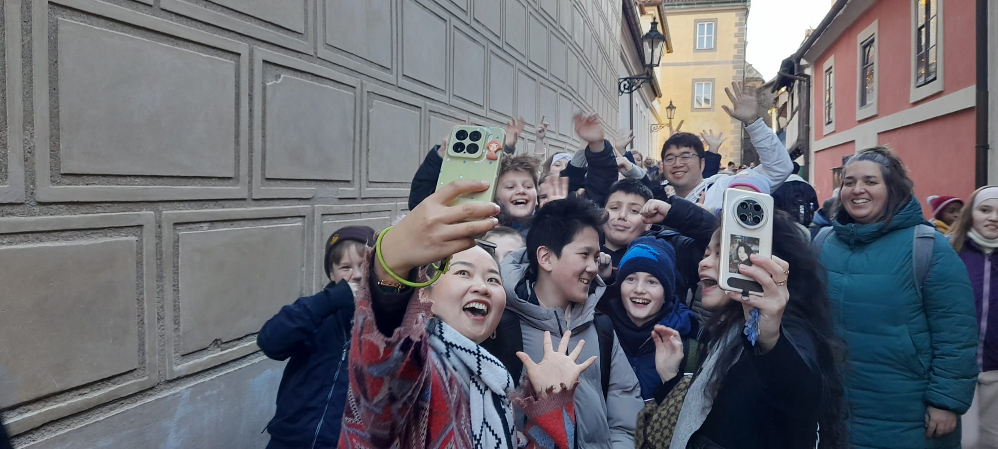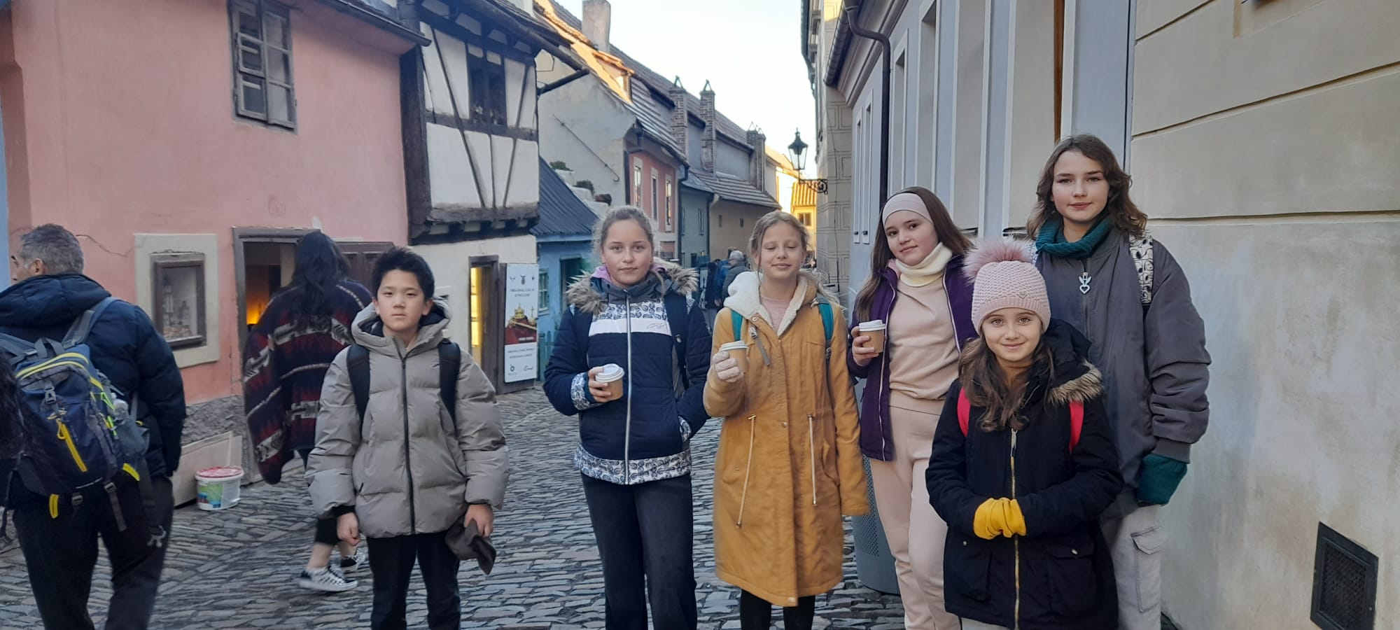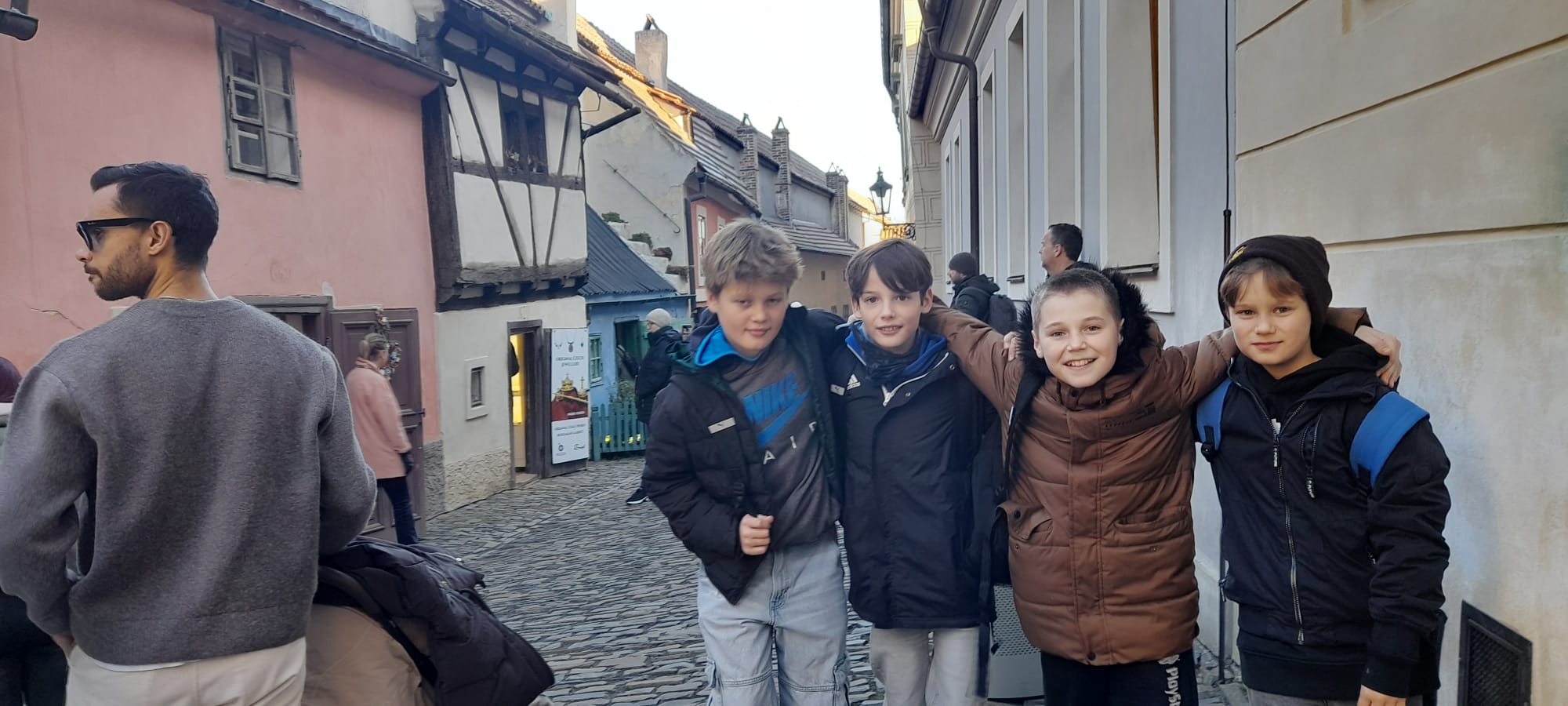 Pochopitelně jsme nemohli vynechat Zlatou uličku, kde bylo tradičně mnoho turistů, ale naše kosmopolitní třída si to nadmíru uživala a žáci si tak mohli vyzkoušet komunikaci v angličtině a někteří oprášili svůj rodný jazyk.