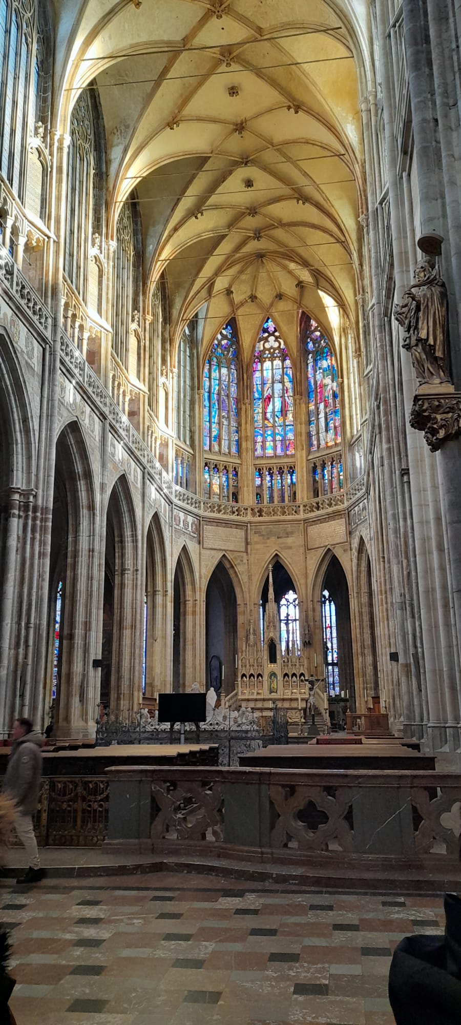 S průvodcem jsme prošli Chrám svatého Víta a nahlédli jsme do Vladislavského sálu. Pak jsme zašli do Baziliky sv. Jiří, kde jsme si nejen připomněli znaky románských staveb, ale významnou světici –   svatou Ludmilu.