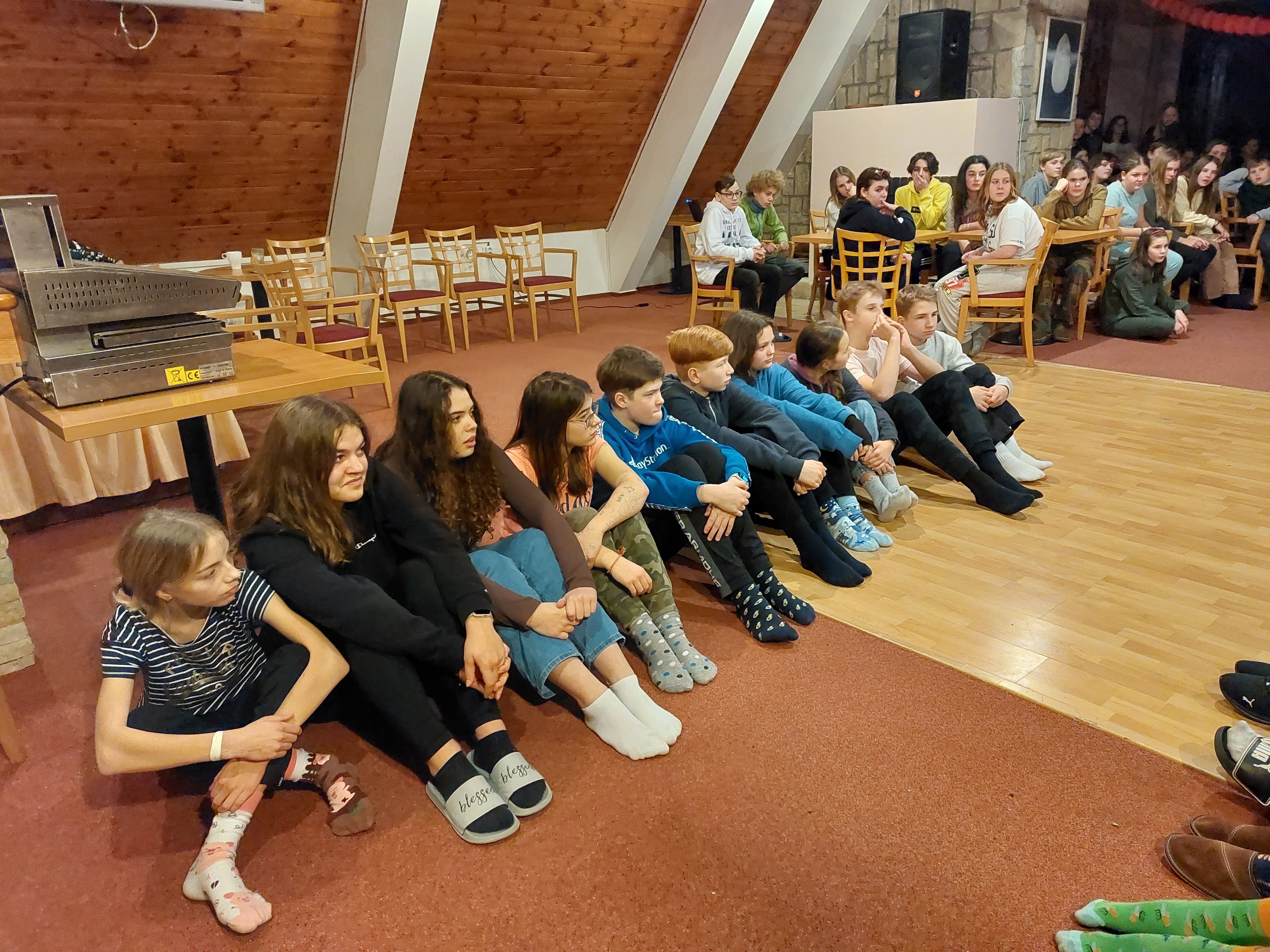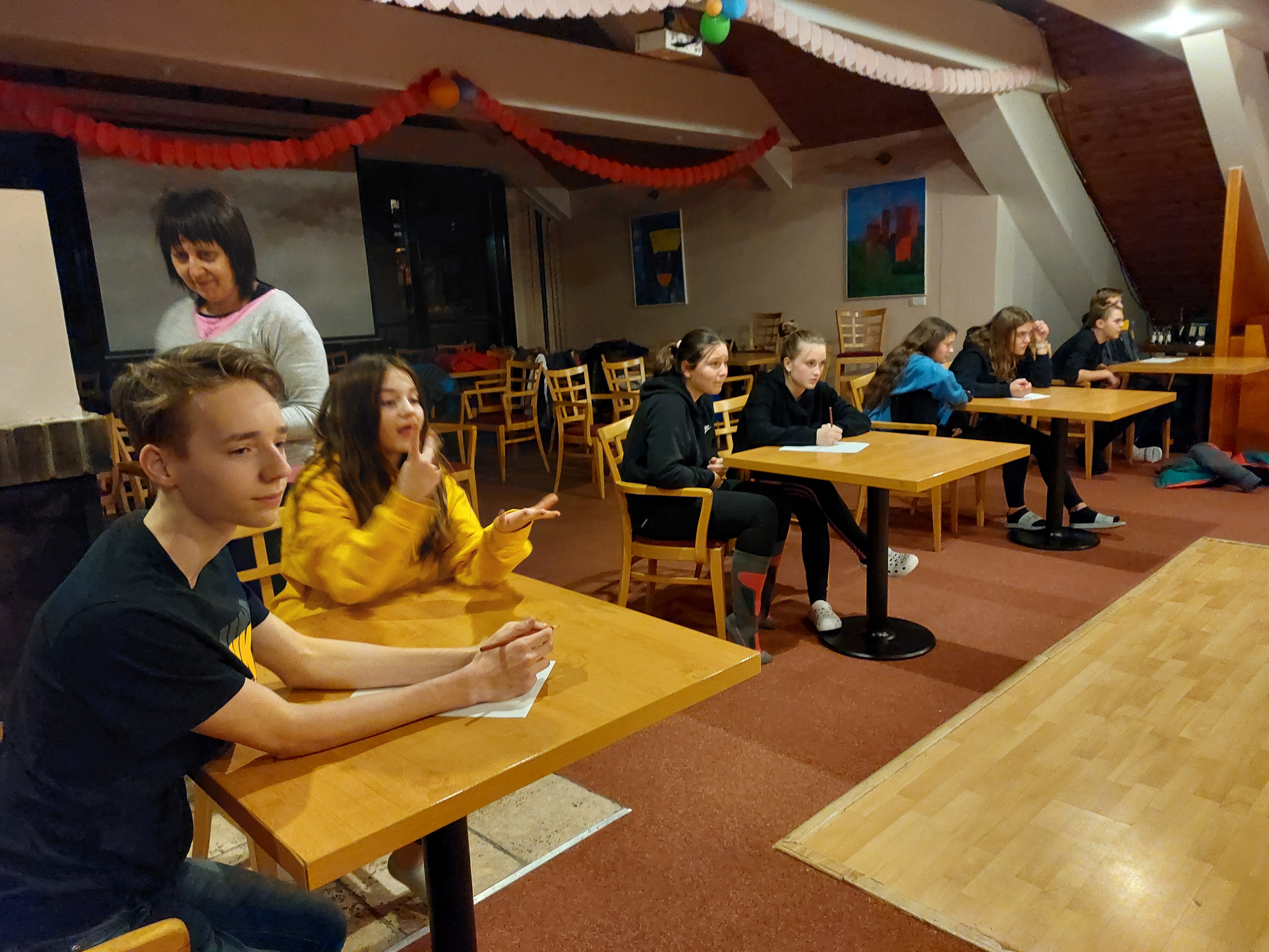 Na místě platila výstraha kvůli silnému větru, a tak jsme procházku odložili. Místo toho probíhalo zápolení v pantomimě, sedoběhu a pleskané.