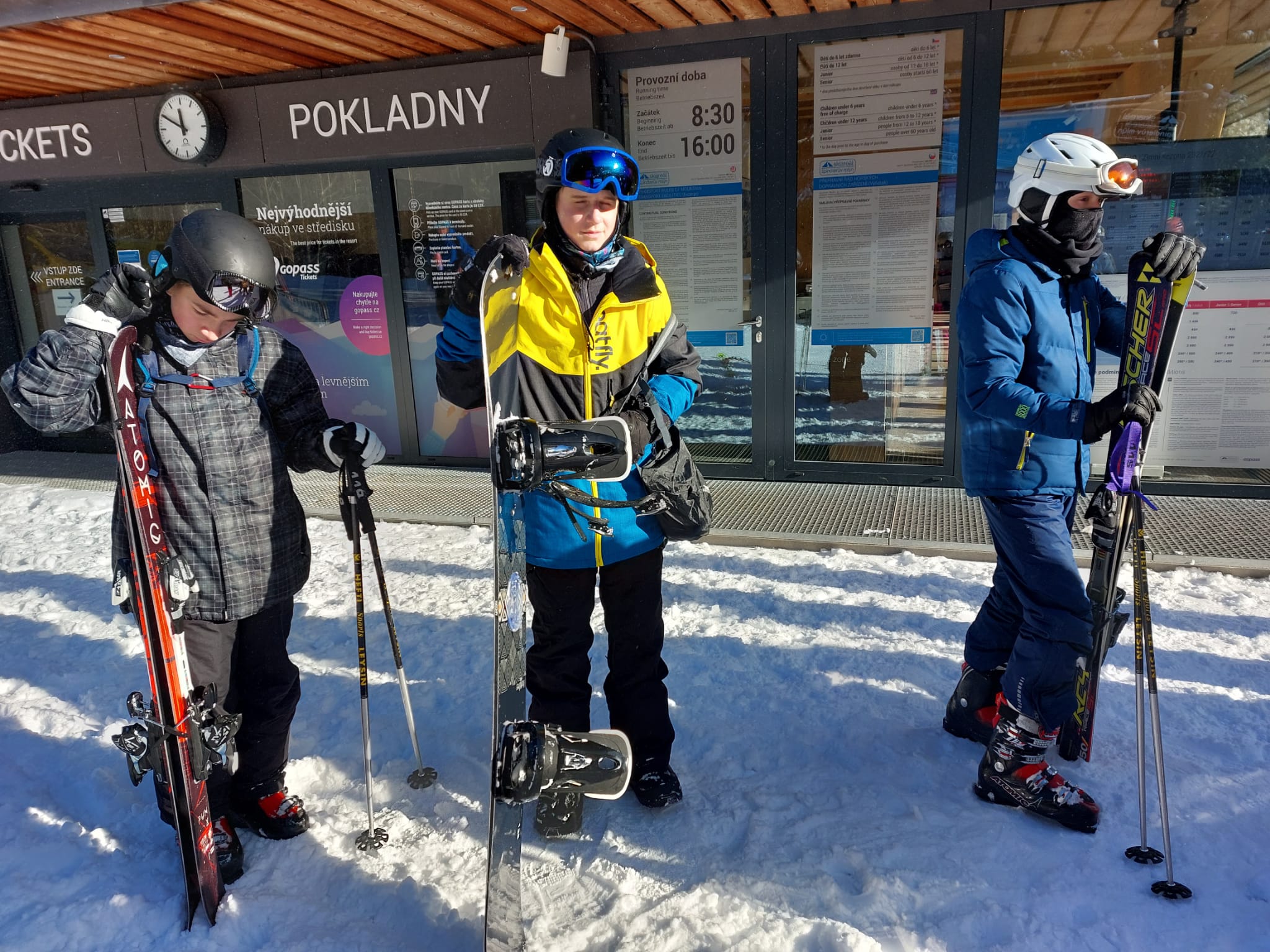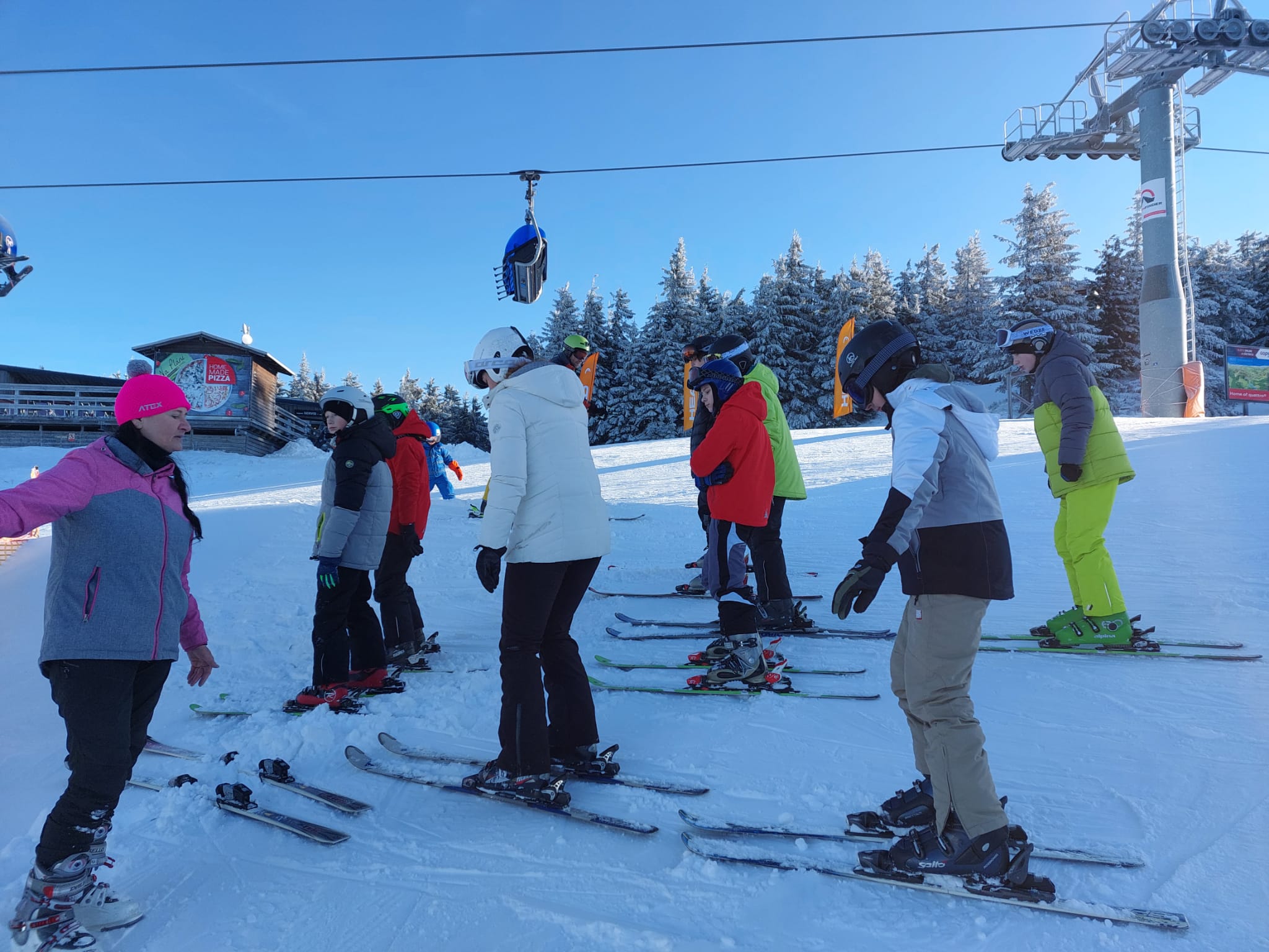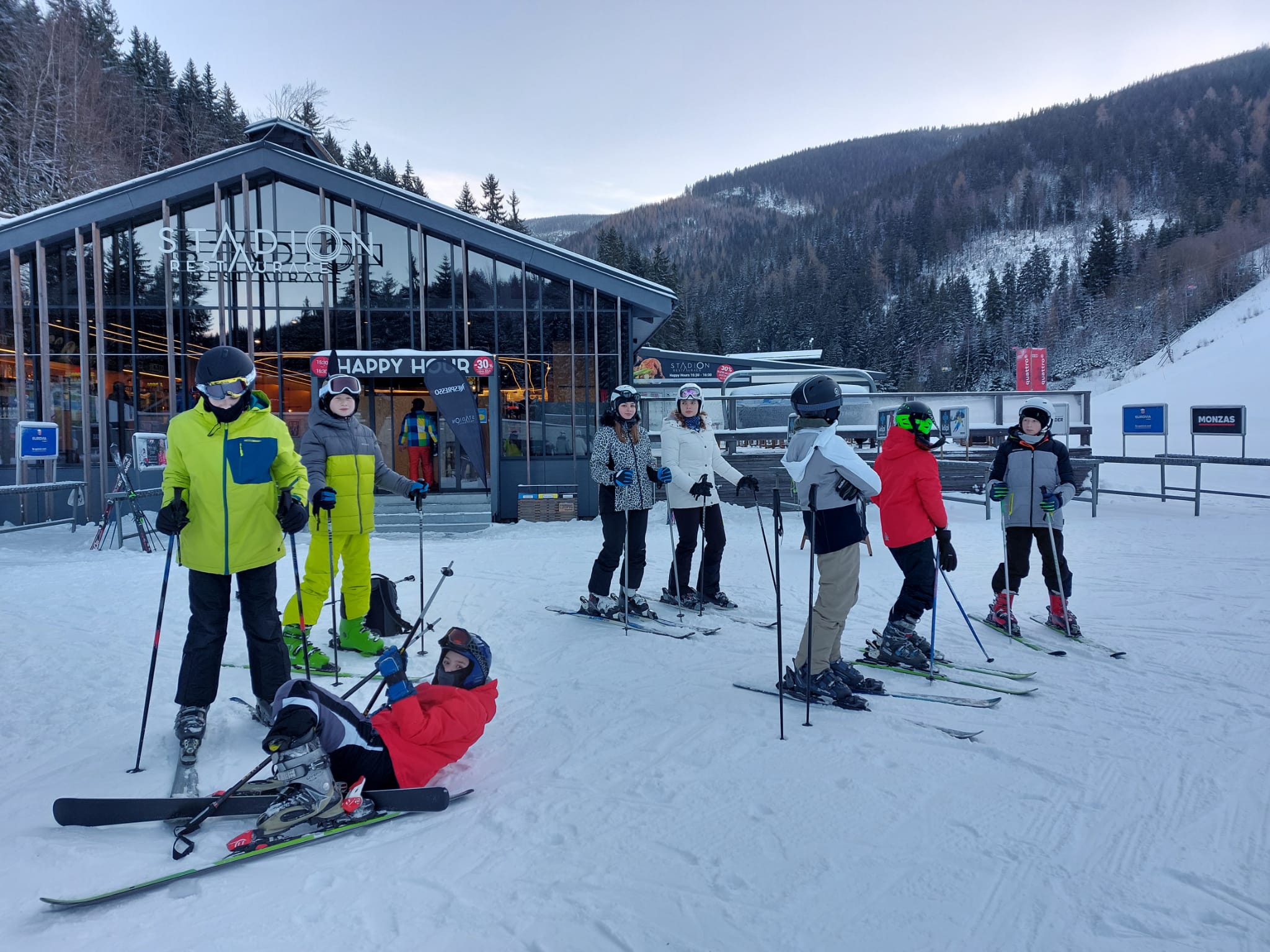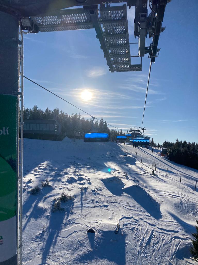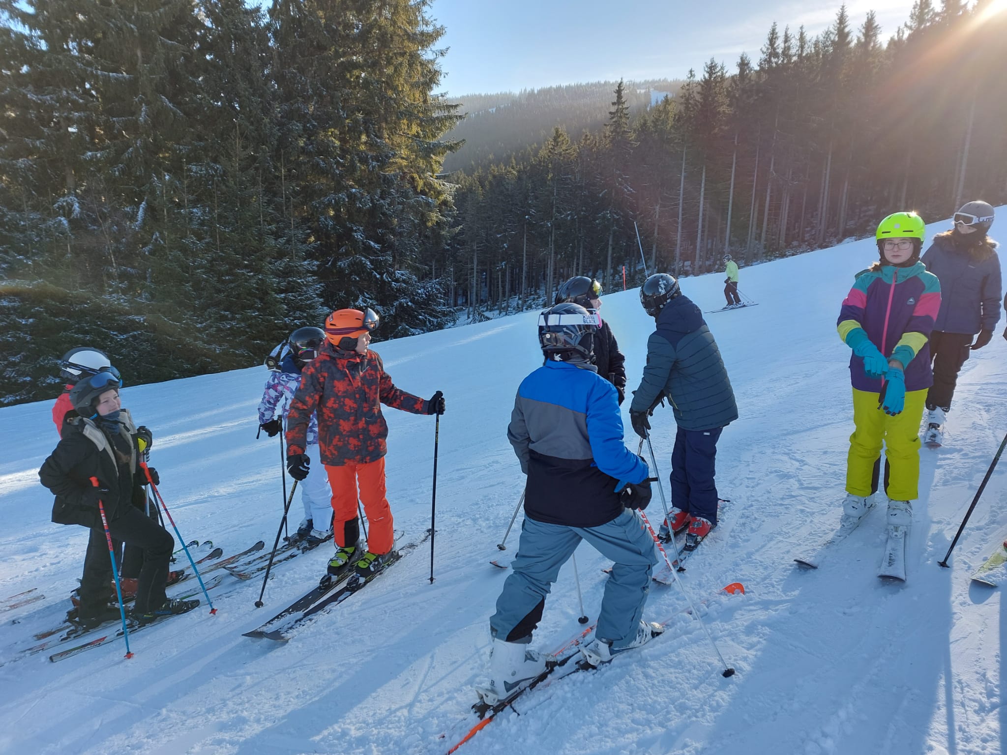 Vzkaz od pedagogů: Lyžovali jsme ve Svatém Petru, bylo krásně sluníčko, výhled na vrcholky hor a čerstvý prašan. Nikomu se nic nestalo 🙂