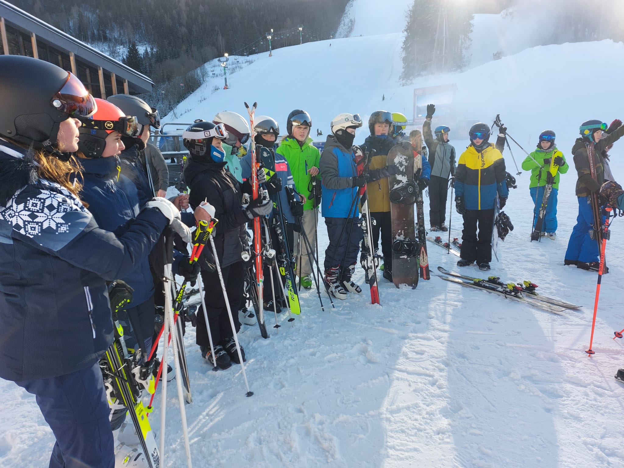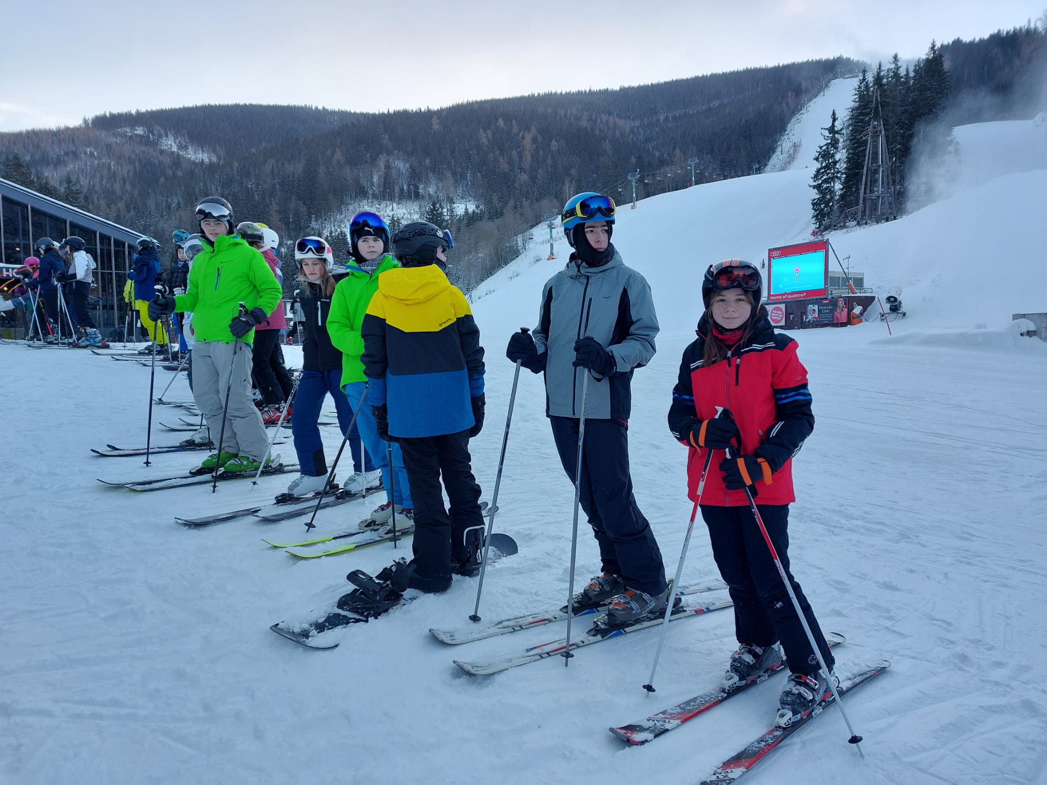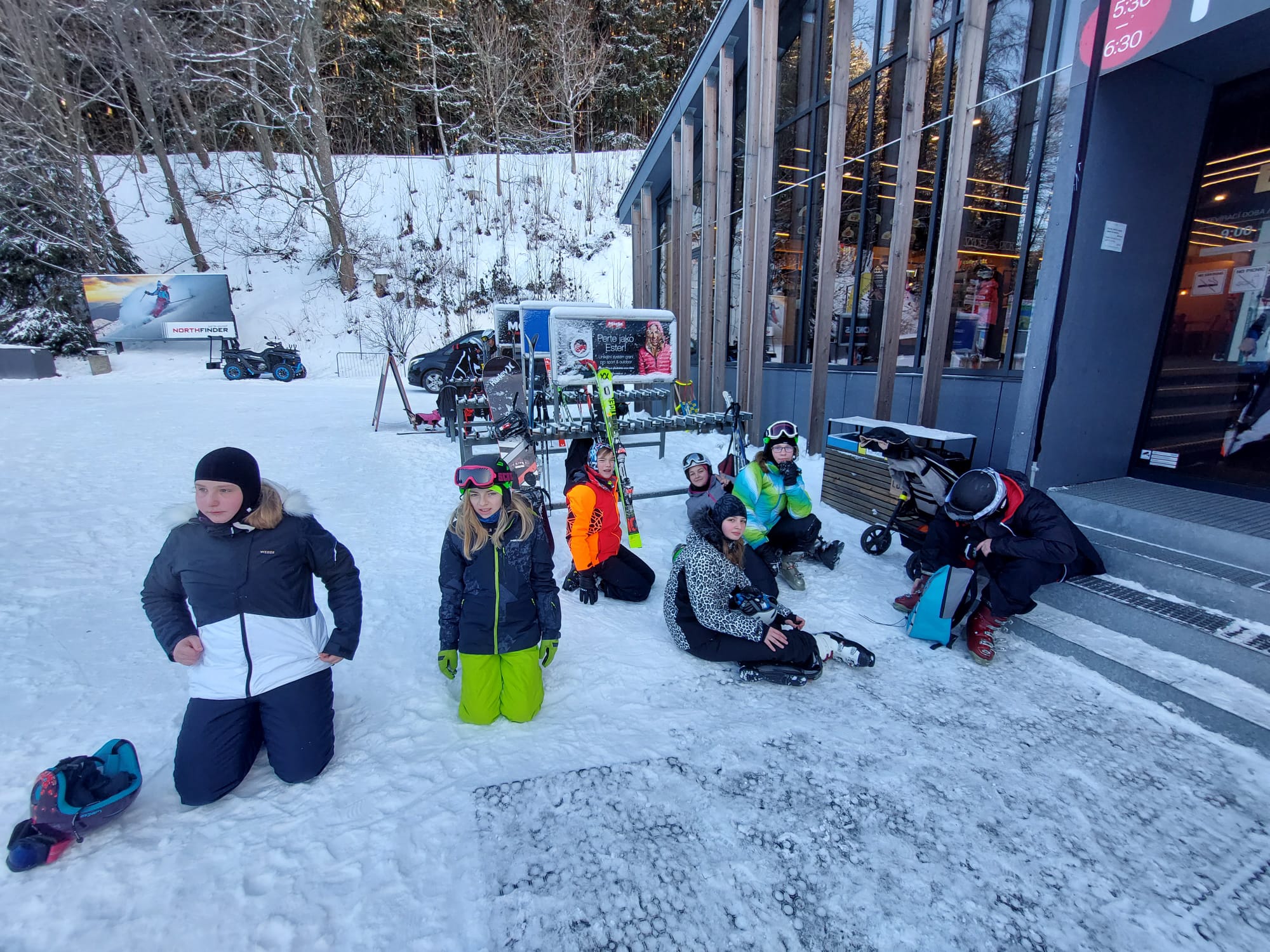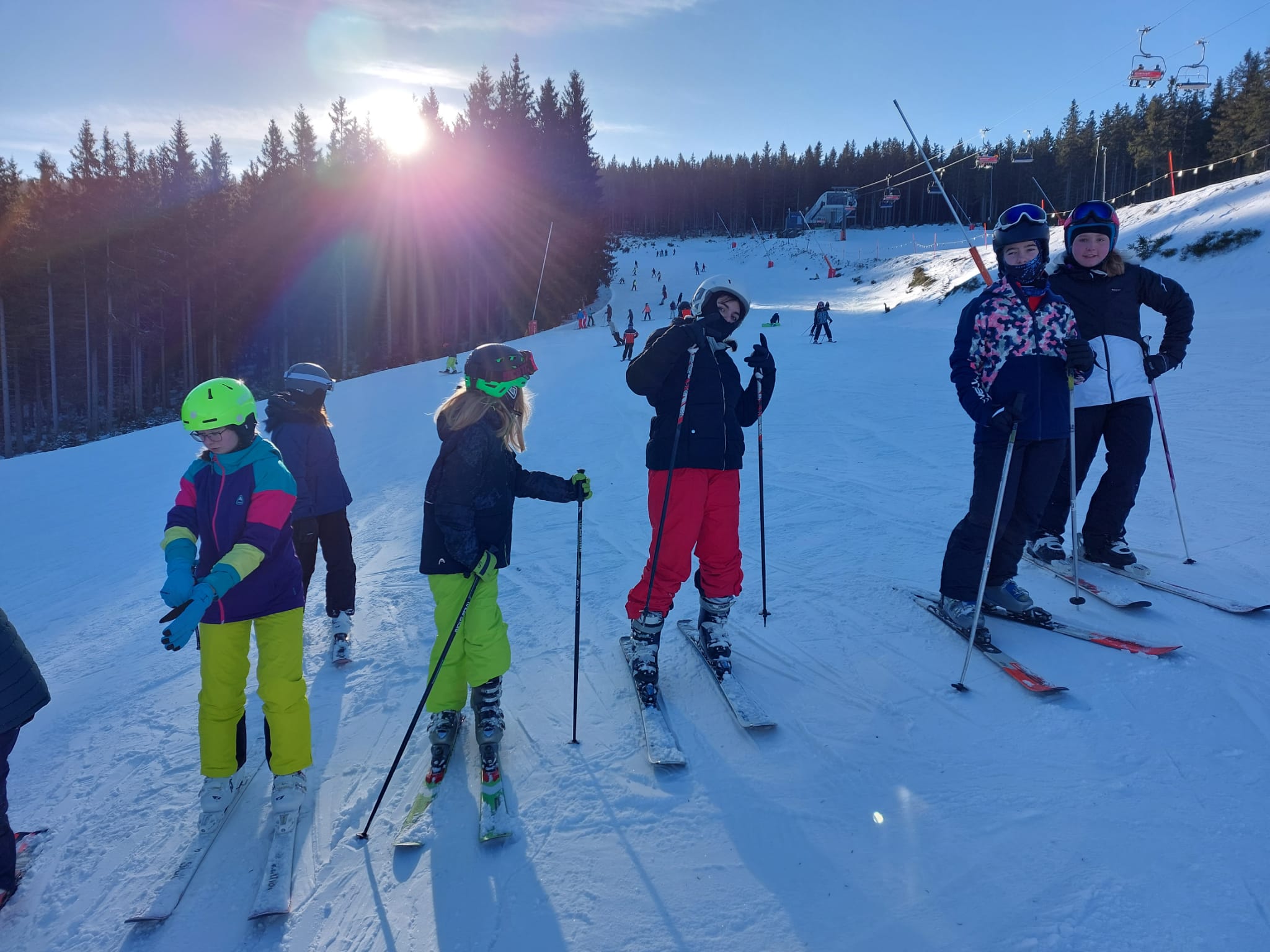 Vzkaz od pedagogů: Lyžovali jsme ve Svatém Petru, bylo krásně sluníčko, výhled na vrcholky hor a čerstvý prašan. Nikomu se nic nestalo 🙂