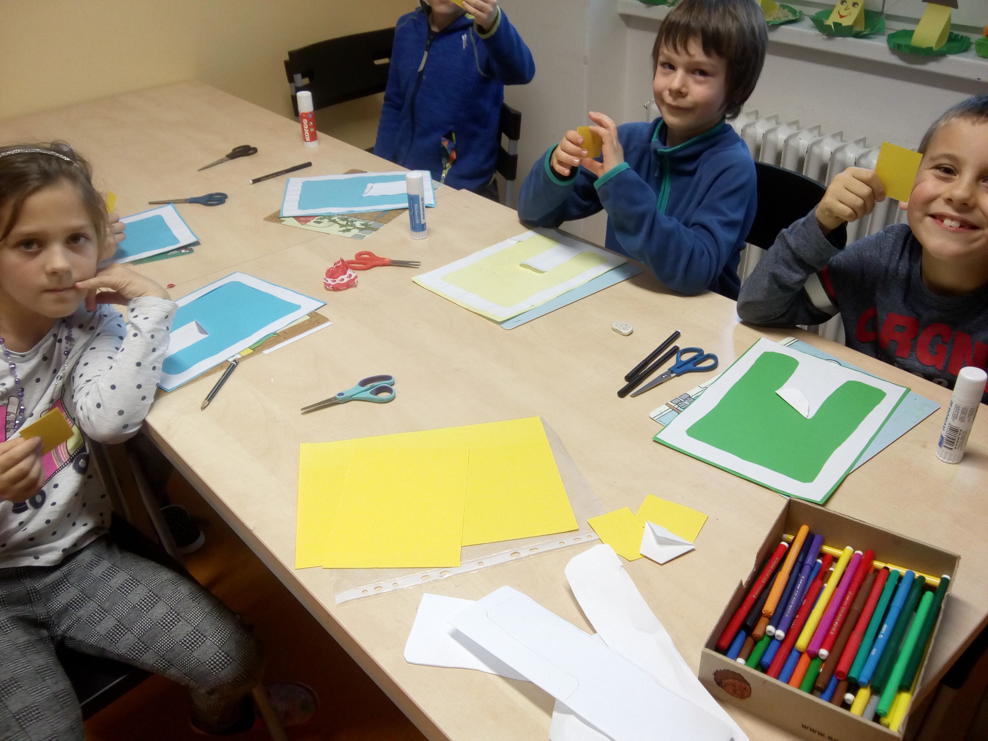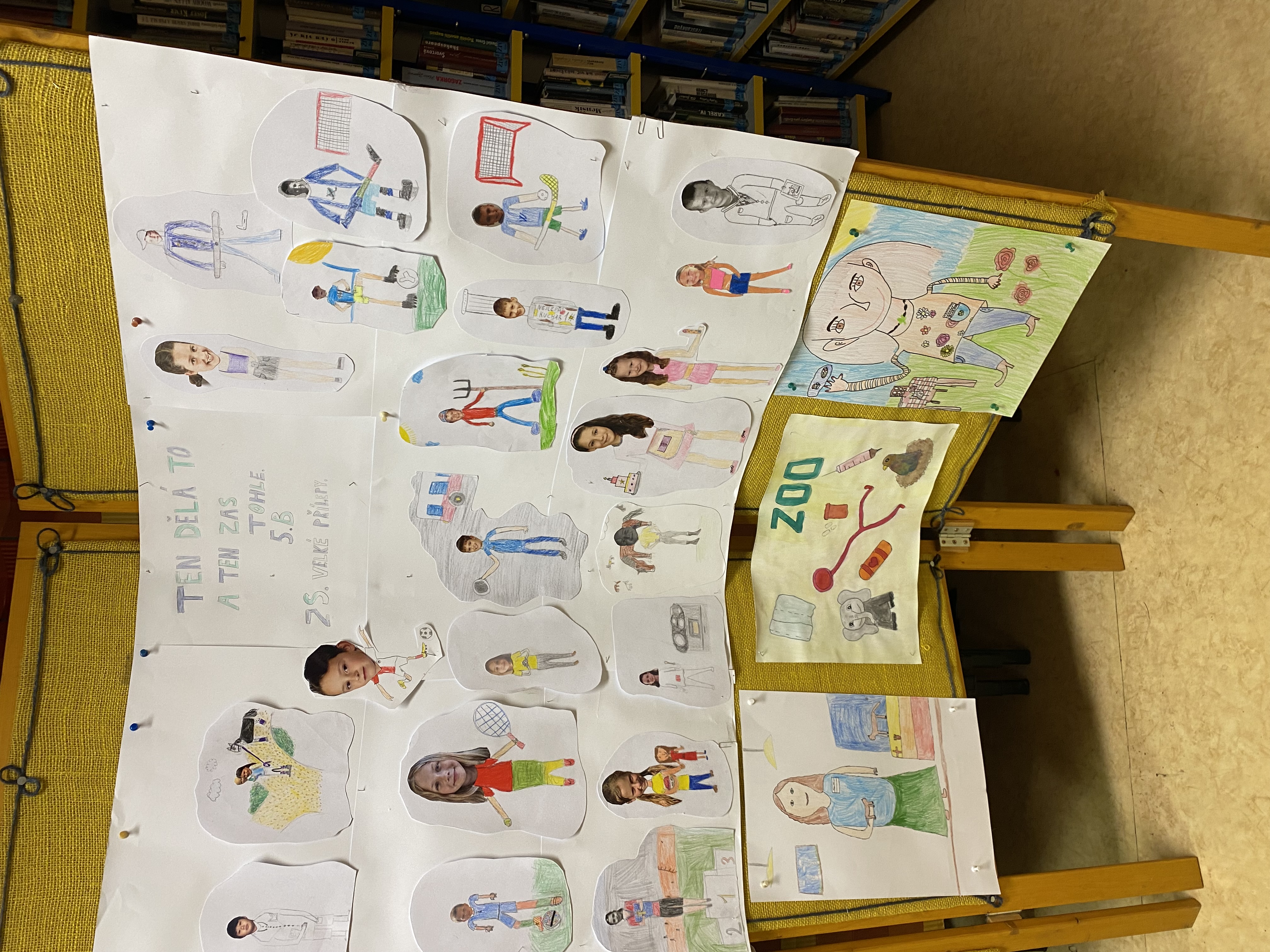 S dětmi z V. B jsme se rozhodli zúčastnit se soutěže, kterou vyhlásila Knihovna Velké Přílepy na téma „Ten dělá to a ten zas tohle“. Domluvili jsme se, že by mohl být hezký nápad vytvořit jednu společnou práci. Zvolili jsme koláž našich budoucích povolání, přání a snů, čím bychom se v budoucnosti rádi stali. Při tvoření naší společné koláže jsme strávili mnoho příjemných chvil. Poodhalili jsme mezi sebou naše přání a sny o naší budoucnosti.