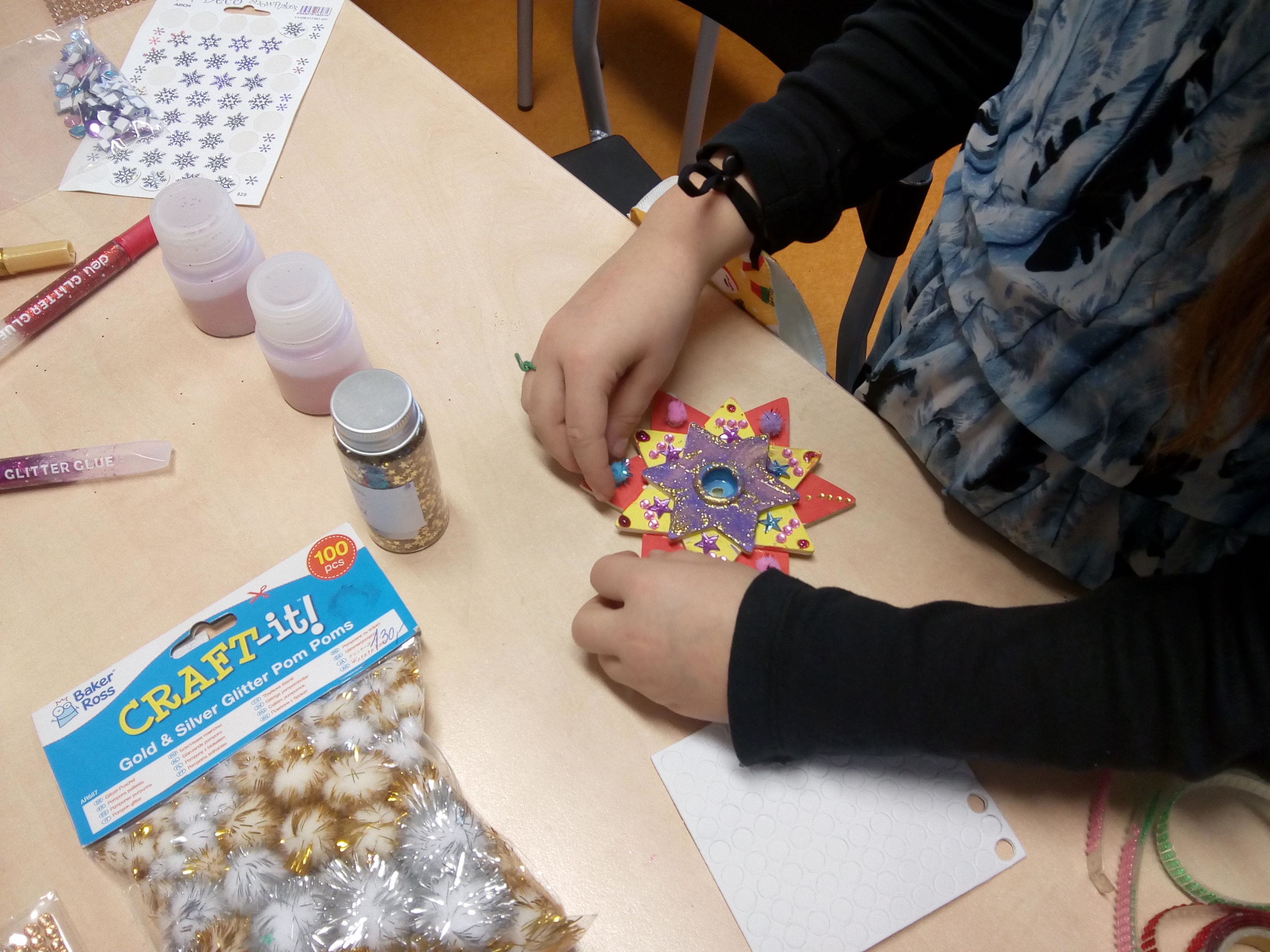 Společně jsme si vyzdobili družinovou třídu, děti plnily úkoly z adventního kalendáře, poslouchali jsme a zpívali koledy a všechny výrobky byly věnované blížícím se Vánocům.
