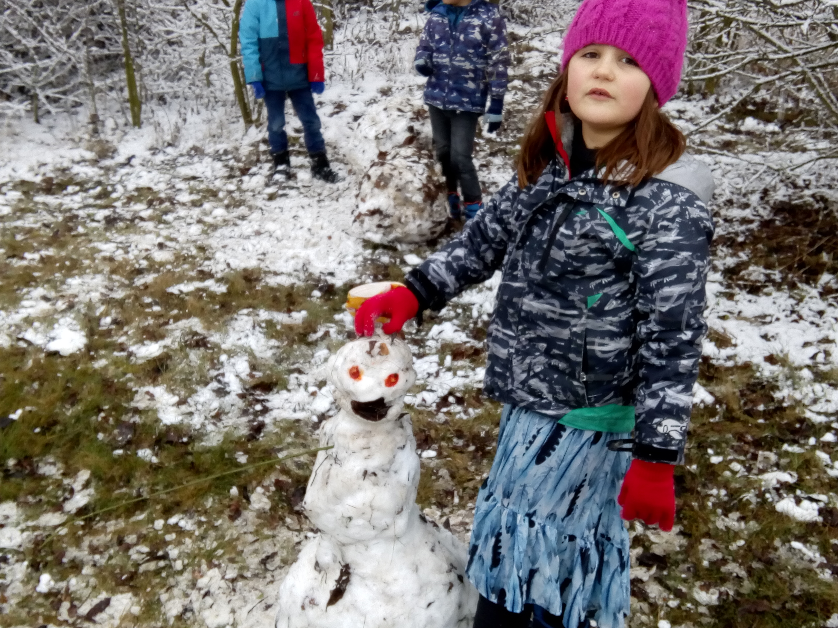 Na začátku měsíce napadlo trochu sněhu, takže se děti pokoušely i z toho mála postavit sněhuláky a nechyběla ani první koulovačka.