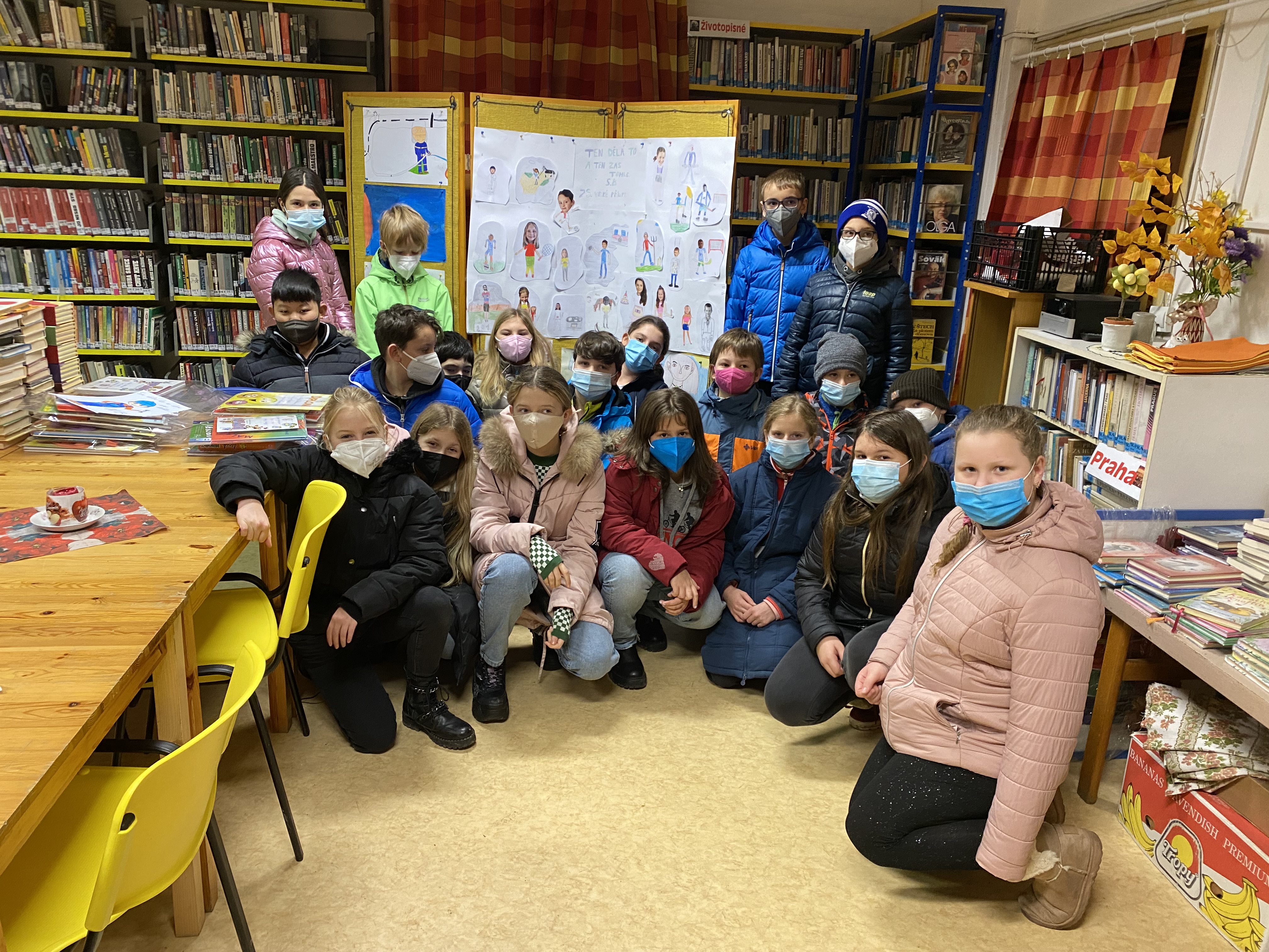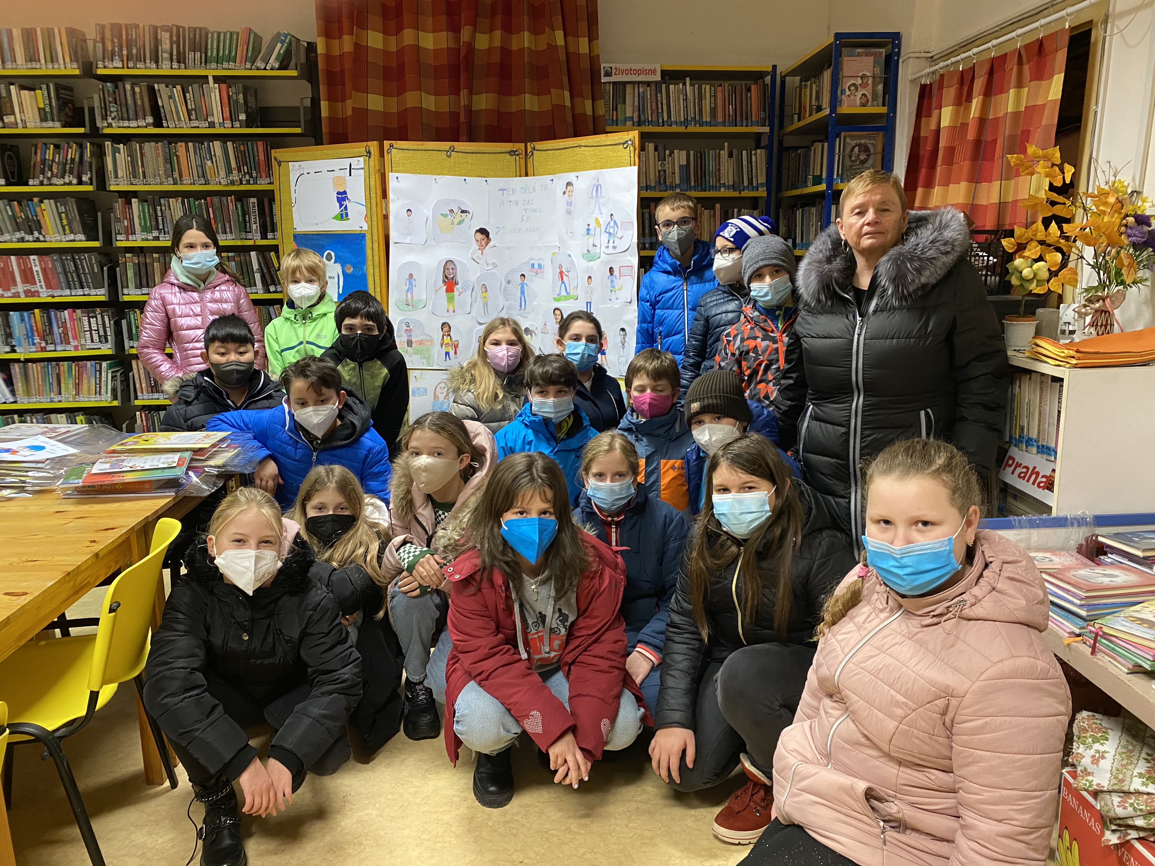 Před Vánoci nás velmi potěšila zpráva z knihovny, že jsme soutěž vyhráli. Zašli jsme se na naši vystavenou práci i na ostatní vydařené výkresy podívat. Cestu do knihovny jsme současně spojili s krátkým povídáním o knihách. Slíbenou cenou pro vítěze je sladká tečka v podobě dortu, na který se všichni v novém roce moc těšíme.