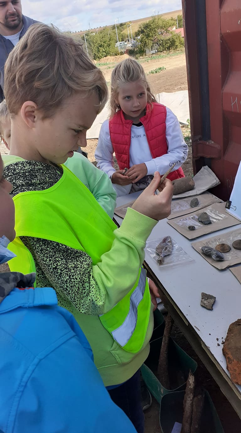 Žáci třetího ročníku spolu s IV. A měli možnost se podívat, jak se odkrývá svrchní vrstva půdy, nahlédli do zásobních jam, a co všechny asi nejvíce zaujalo, byla pohřební jáma, ve které se našla kostra keltského bojovníka s mečem a kopím. O kousek dál odpočívala žena ze stejné doby.