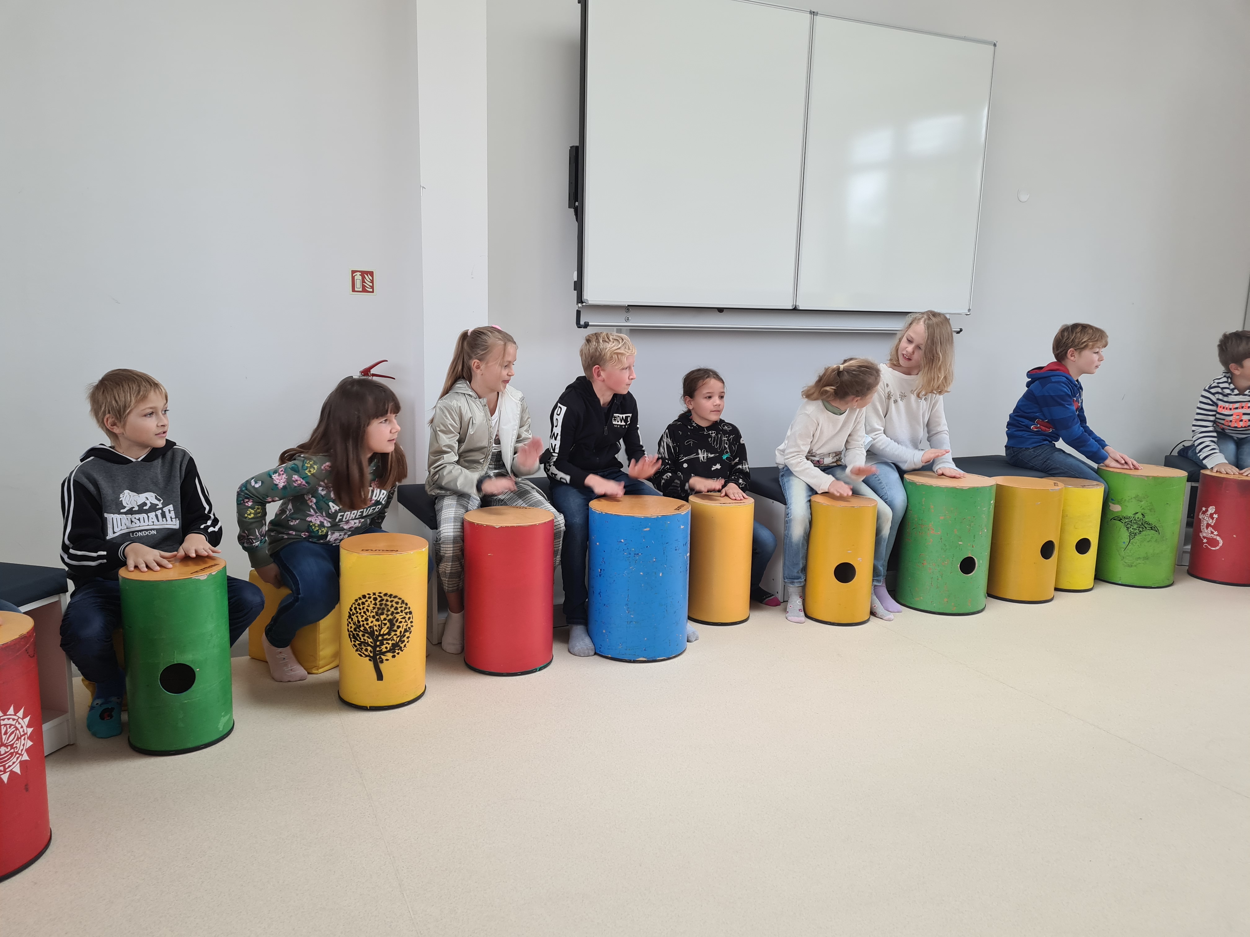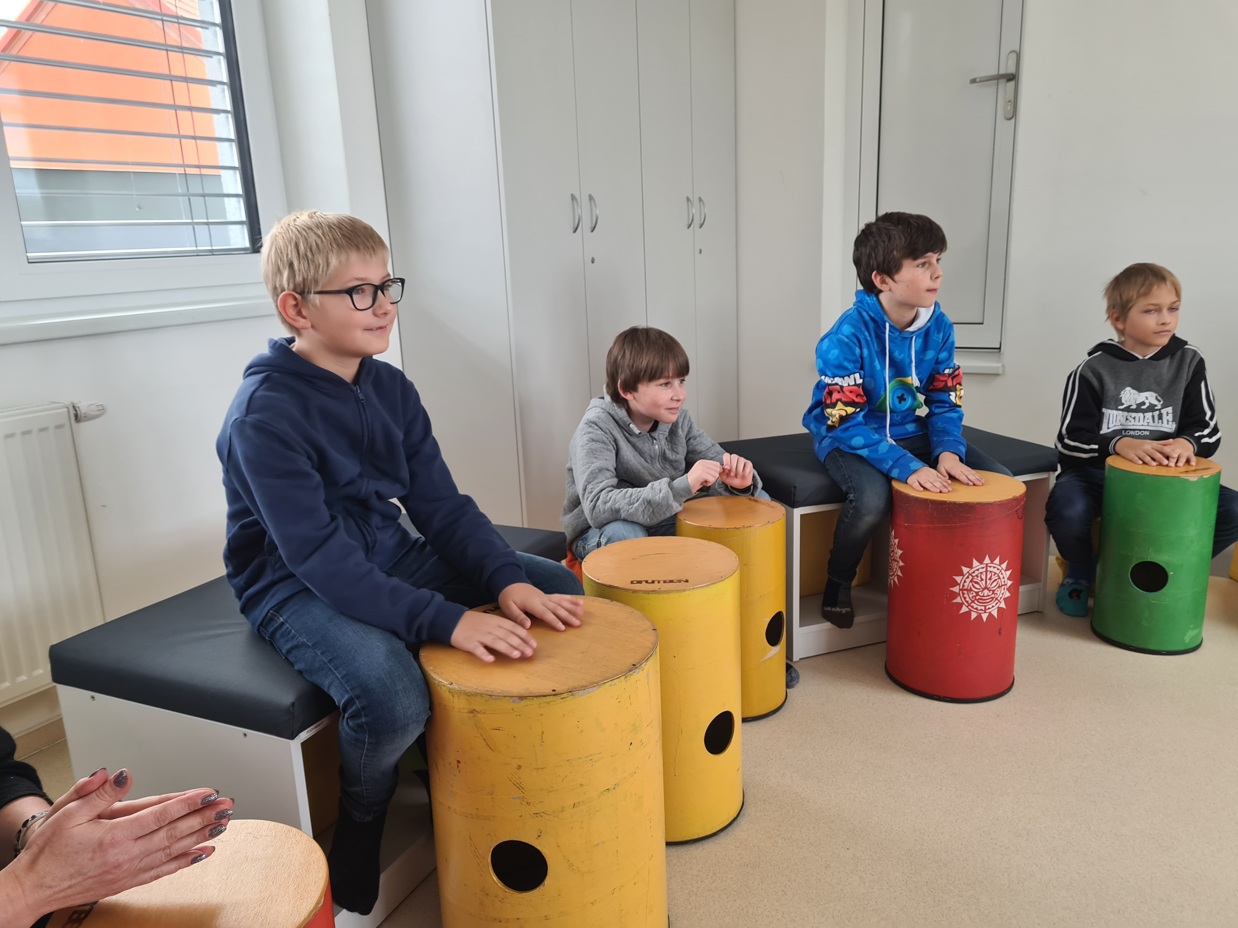 Poslechli jsme si trochu teorie a pustili se do tvoření ladných tónů, unášeli se v rytmu afrických šamanů a měli pocit, že tančíme kolem totemu. Kdo šel v tu dobu kolem polyfunkčního domu, nestačil se divit. Pan Zdeněk s námi zahrál tóny jižní a severní Afriky, ale i Austrálie. Setkání bylo tak naplněno pozitivní energií, že i sluníčko venku vykouklo a hned byl krásný den. Abychom si vyzkoušeli, že ani pro české písničky nejsou drumbeny cizí nástroj, vybubnovali jsme si rytmus písně Prší, prší a Já mám koně.