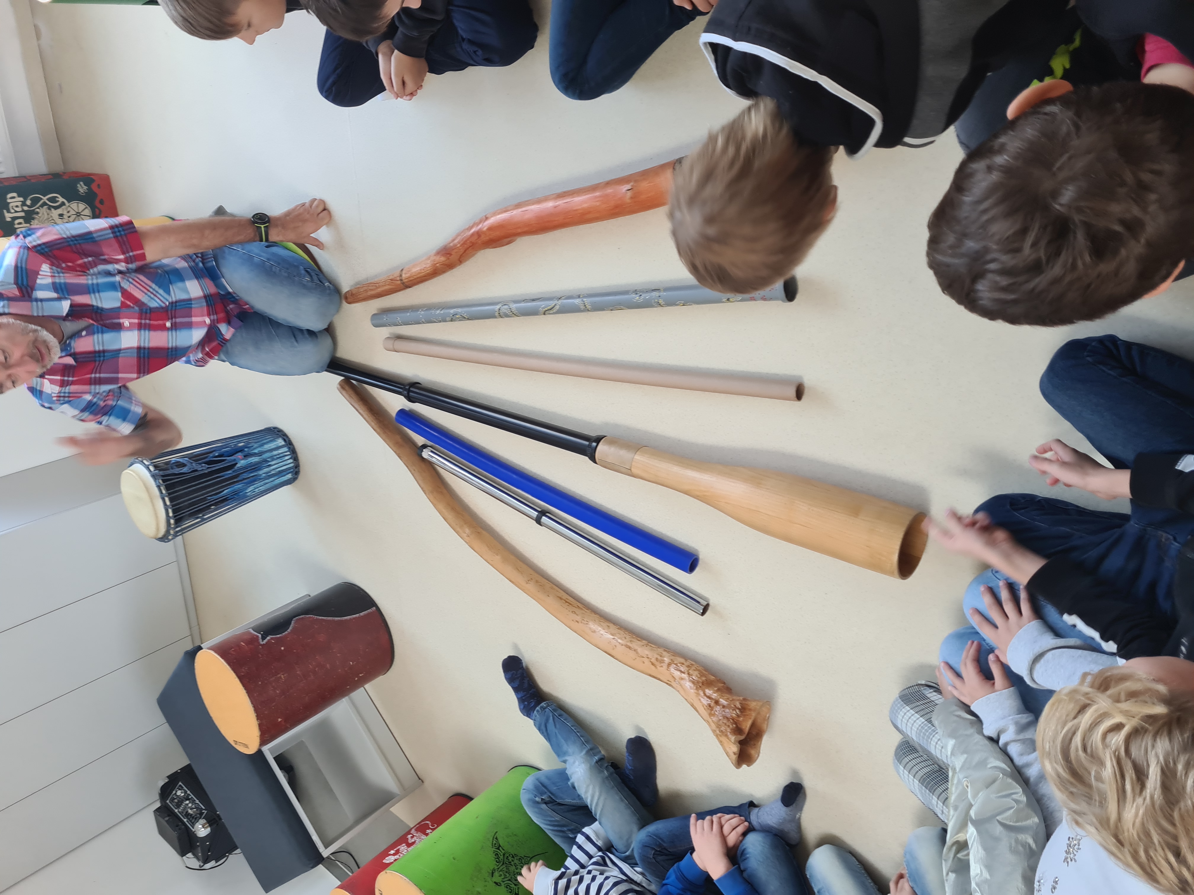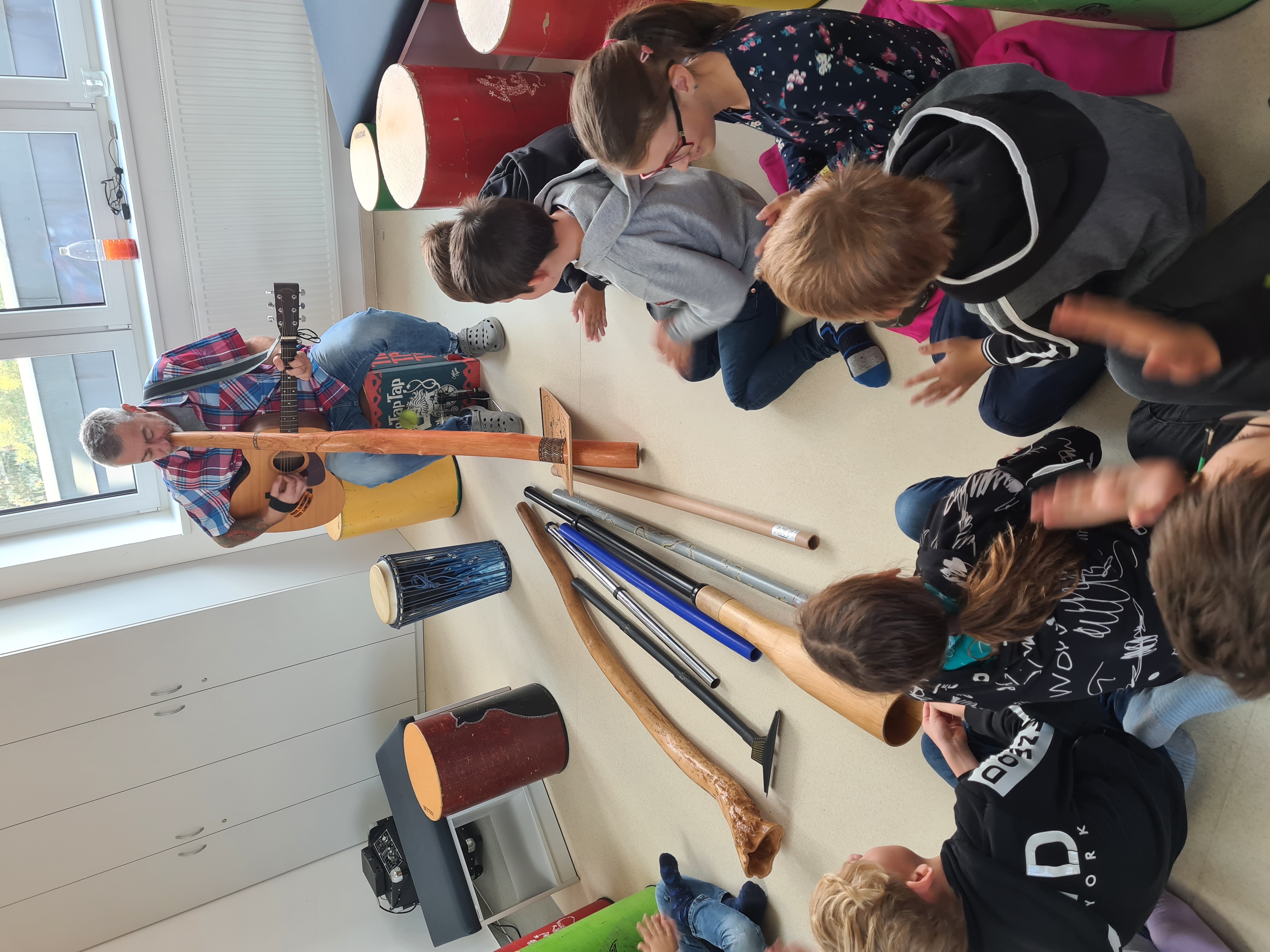 V pátek 15. 10. se jsme se vydali na skok do Austrálie, stihli jsme i Afriku, ale nezapomněli na naši republiku. Jak se to všechno dalo stihnout? Dopomohl nám k tomu pan Zdeněk, který s sebou přivezl bubny, které nazval drumbeny a také tradiční hudební nástroj didgeridoo (čti didžeridú).