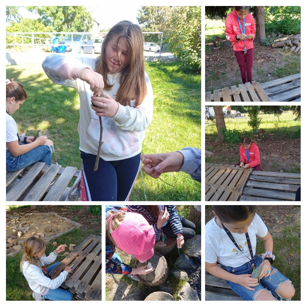 Dnešní hodinu dějepisu jsme se žáky VI. A pojali trochu netradičně. S lýkem a nůžkami jsme se vydali na školní zahradu a zahráli si na pravěké lovce. Každý žák se snažil vyrobit z přírodního materiálu, který našel na zahradě, pravěký nástroj nebo zbraň. Kromě přírodnin byl k dispozici pouze lýkový provázek na spojování materiálů, který suploval tenké provazy z kůže pravěkých zvířat.