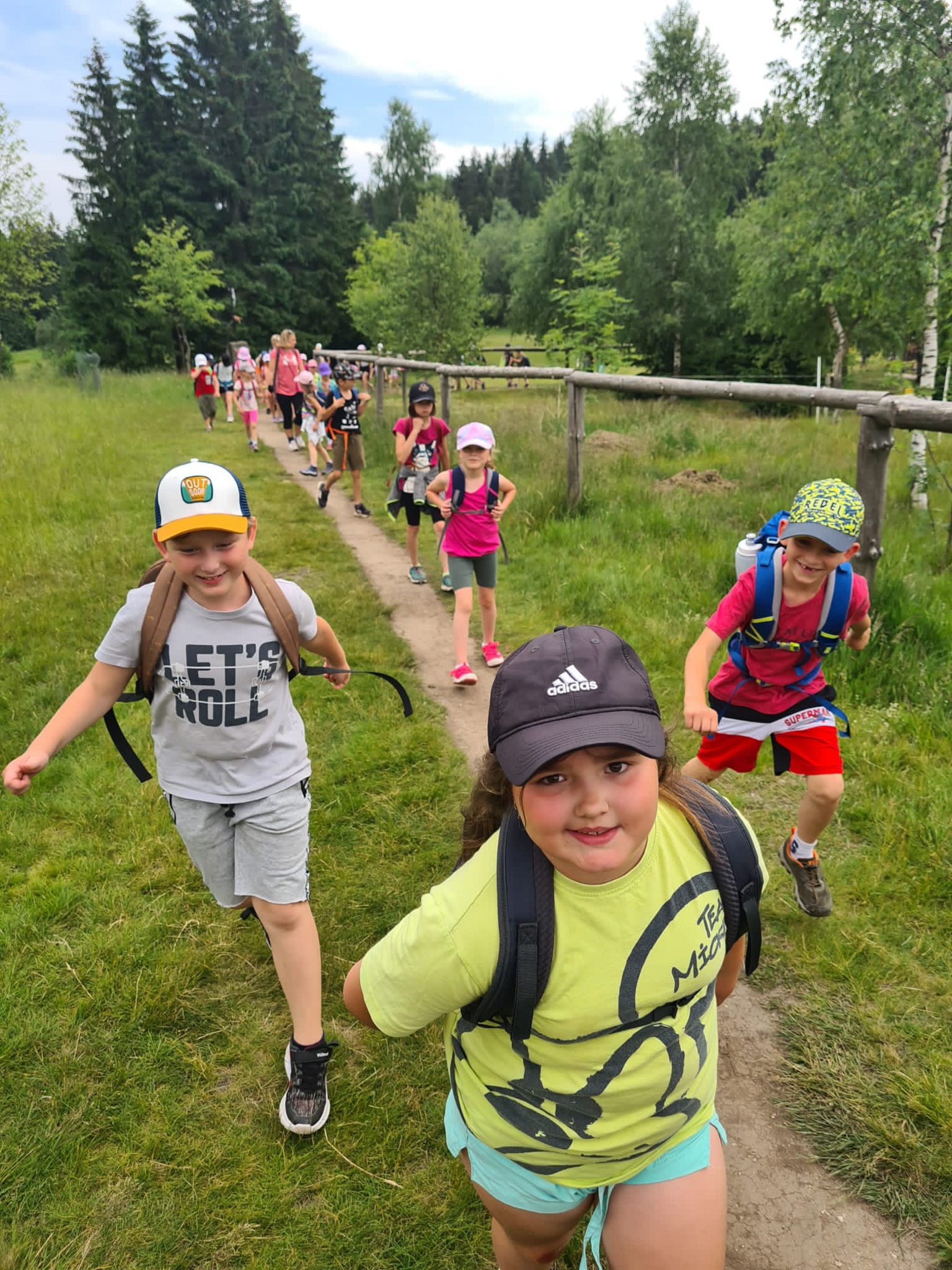 V úterý ráno jsme se probudili do slunného dne. Po ranní rozcvičce a vydatné snídaní jsme si procvičili psaní dopisu. Naše pohledy mířily do Velkých Přílep k našim rodičům. Doufáme, že přijdou dříve, než se vrátíme zpět domů. Před obědem si děti zvládly procvičit své znalosti z prvouky ve formě bojovky. Odpoledne nás čekala 11 km dlouhá túra po okolí. Naším cílem byla rozhledna Královka, která je jednou z nejznámějších kamenných rozhleden v Jizerských horách a která stojí na hoře Nekras. Cestou jsme minuli vodní nádrž Josefův důl, která slouží jako zásobárna pitné vody pro Jablonec, Liberec a Českolipsko.