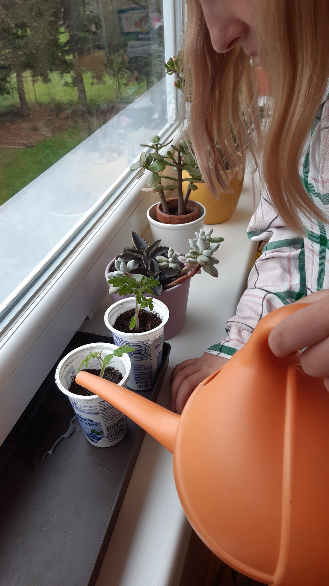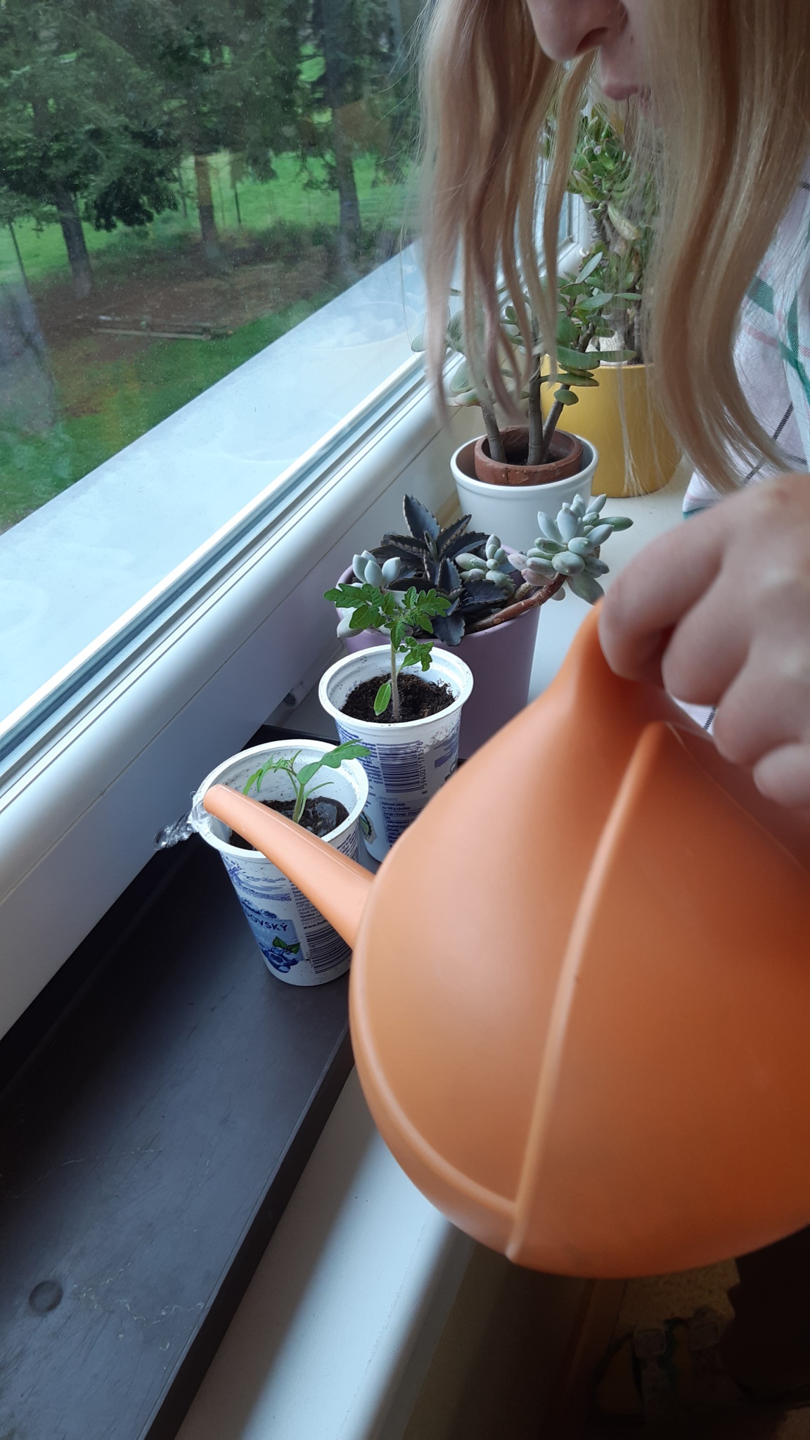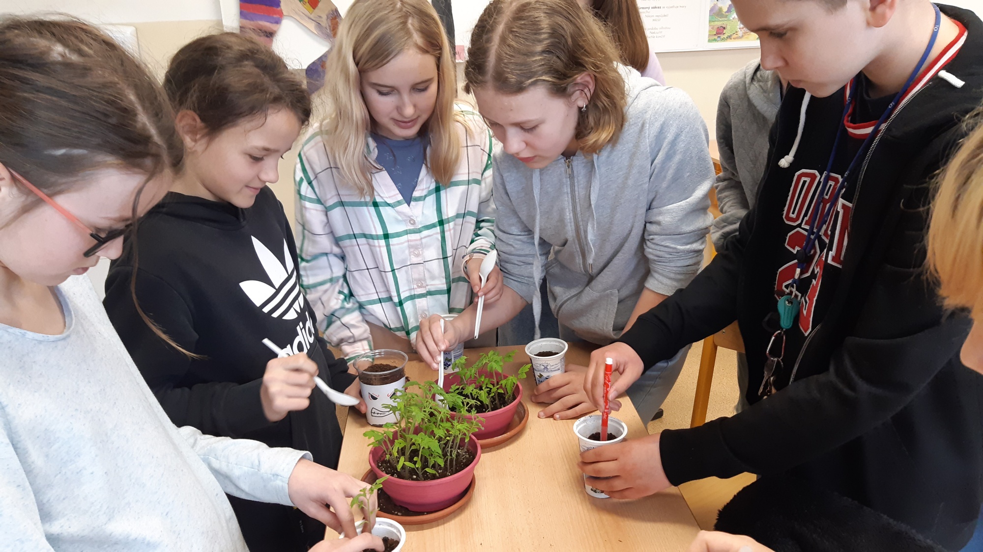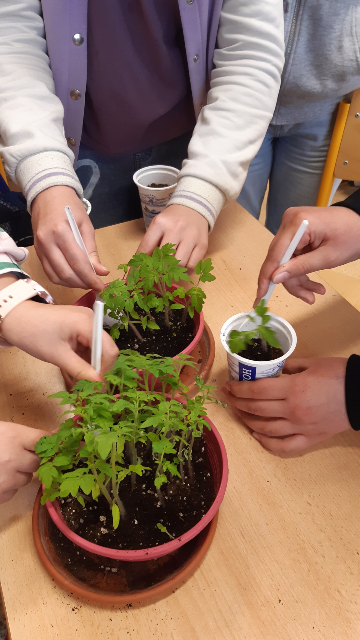 Další badatelskou činností bylo předpěstování sazenic rajčat. To se nám dařilo. V naší na jih orientované třídě rostly sazeničky jako ve skleníku. Děti si je samy vysely, sledovaly klíčivost, pikýrovaly sazeničky a dopěstovaly je až do fáze nakvétání. Po půlce května jsme si ukázali, jak rostlinky vysadit a pak si každý dvě sazenice odnesl domů. Přeji dětem, aby se jim pěstování i nadále dařilo a rostlinky jim odměnou přinesly chutné plody.