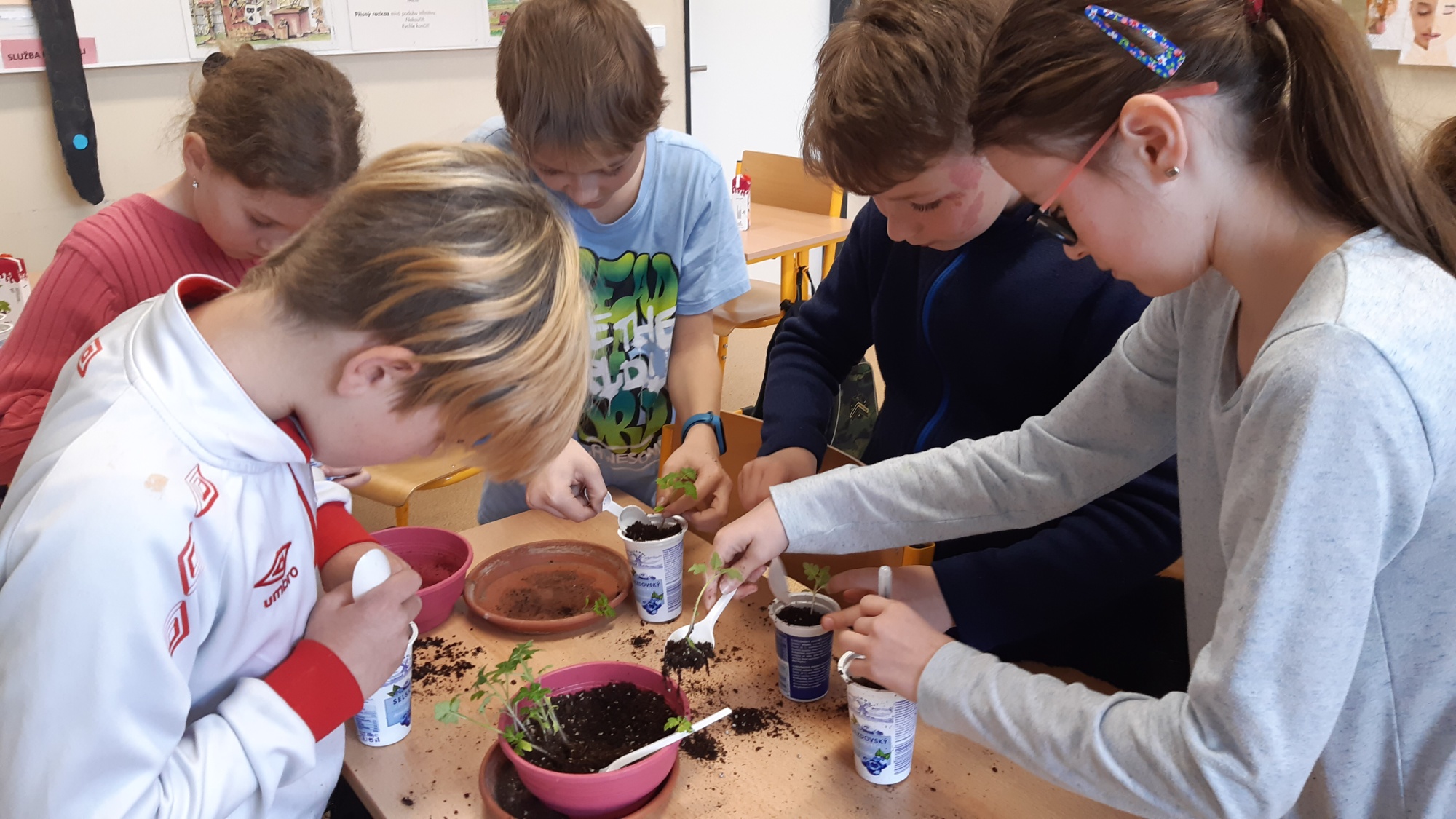 S jarem jsme začali v přírodovědě a pracovních činnostech s pěstitelskými pokusy.