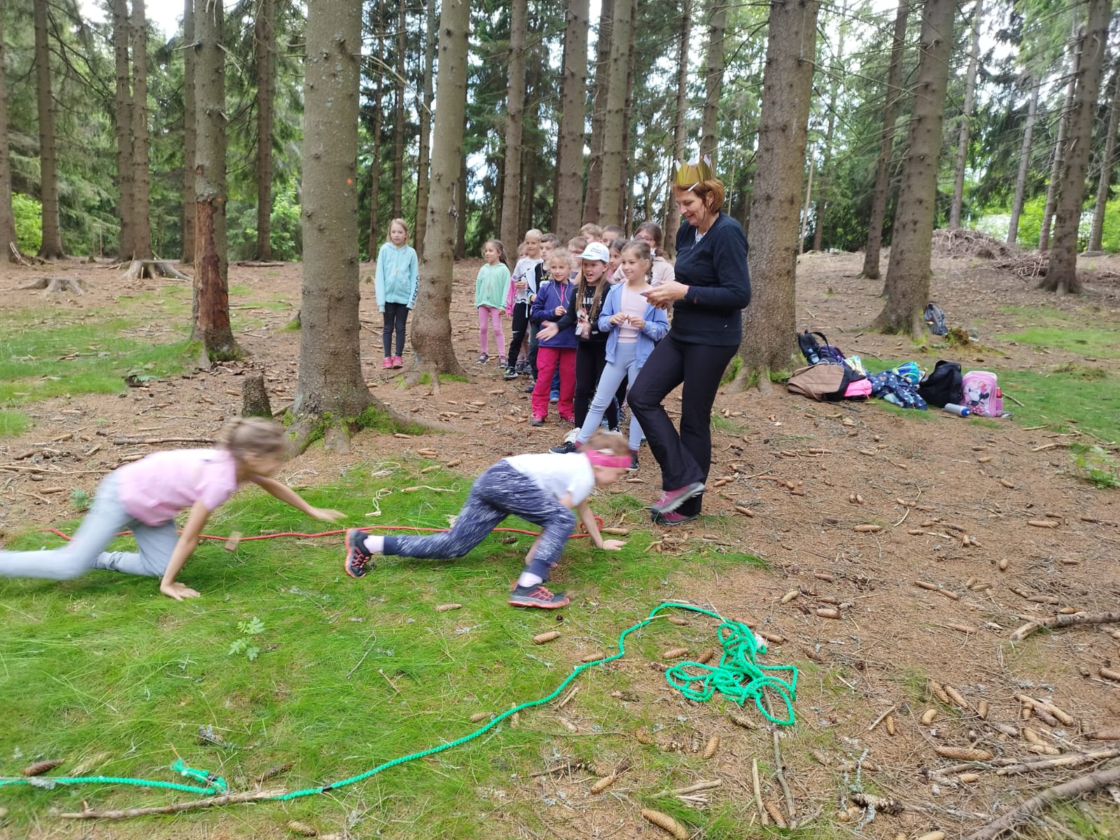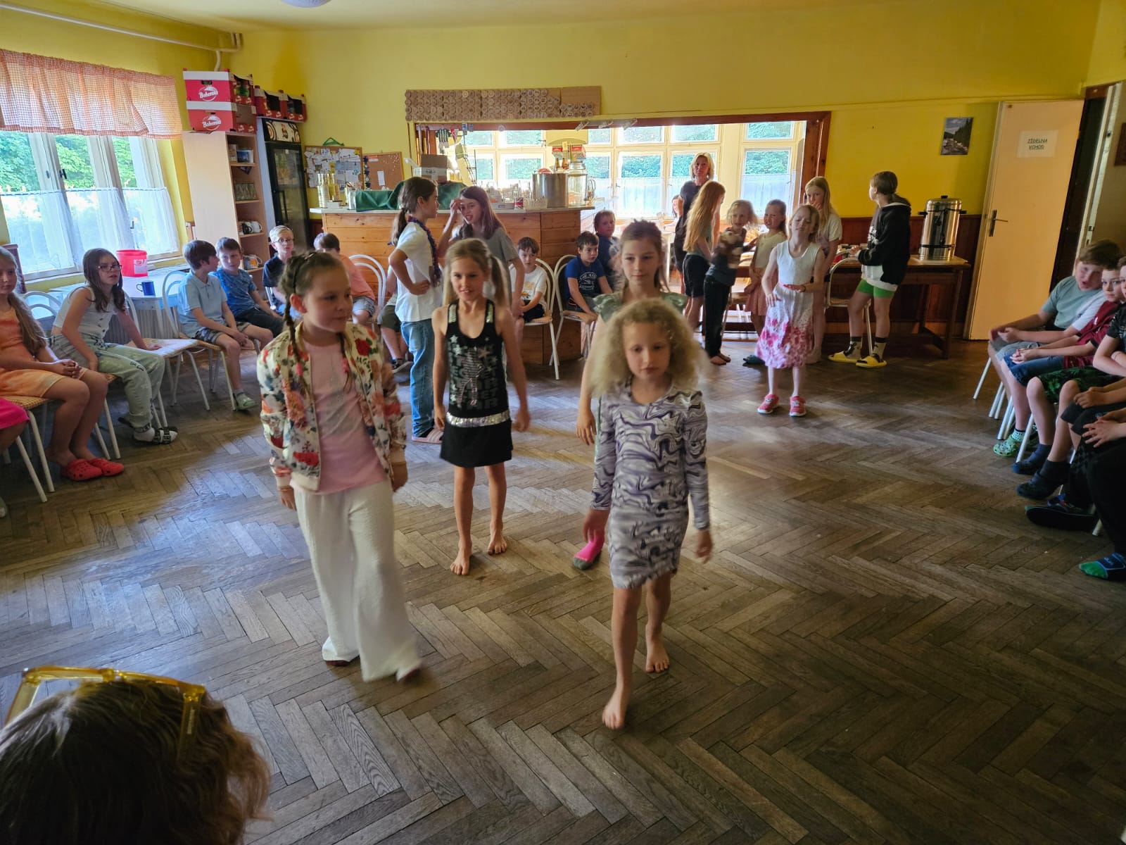 První až čtvrté třídy běhaly 50 m na čas, skákaly do dálky, hrály vybíjenou, házely na cíl, absolvovaly opičí dráhu, štafetu mezi tyčemi na čas, střílely na bránu, hrály kroket, skákaly na velkých míčích a přetahovaly lano. Starší ročníky to měly obdobně, jen běhaly na čas 60 m a měly navíc štafetu kolem fotbalového hřiště.