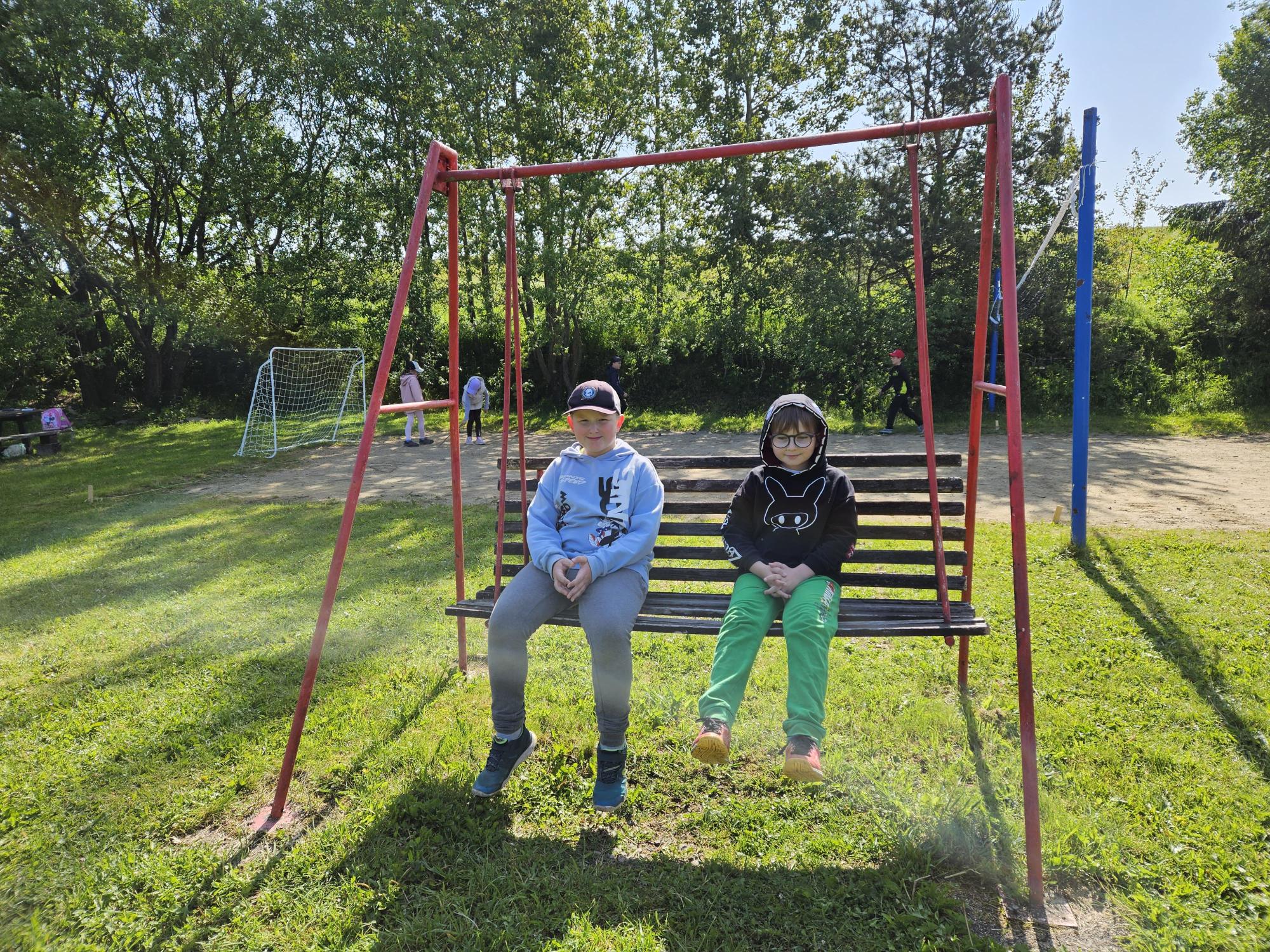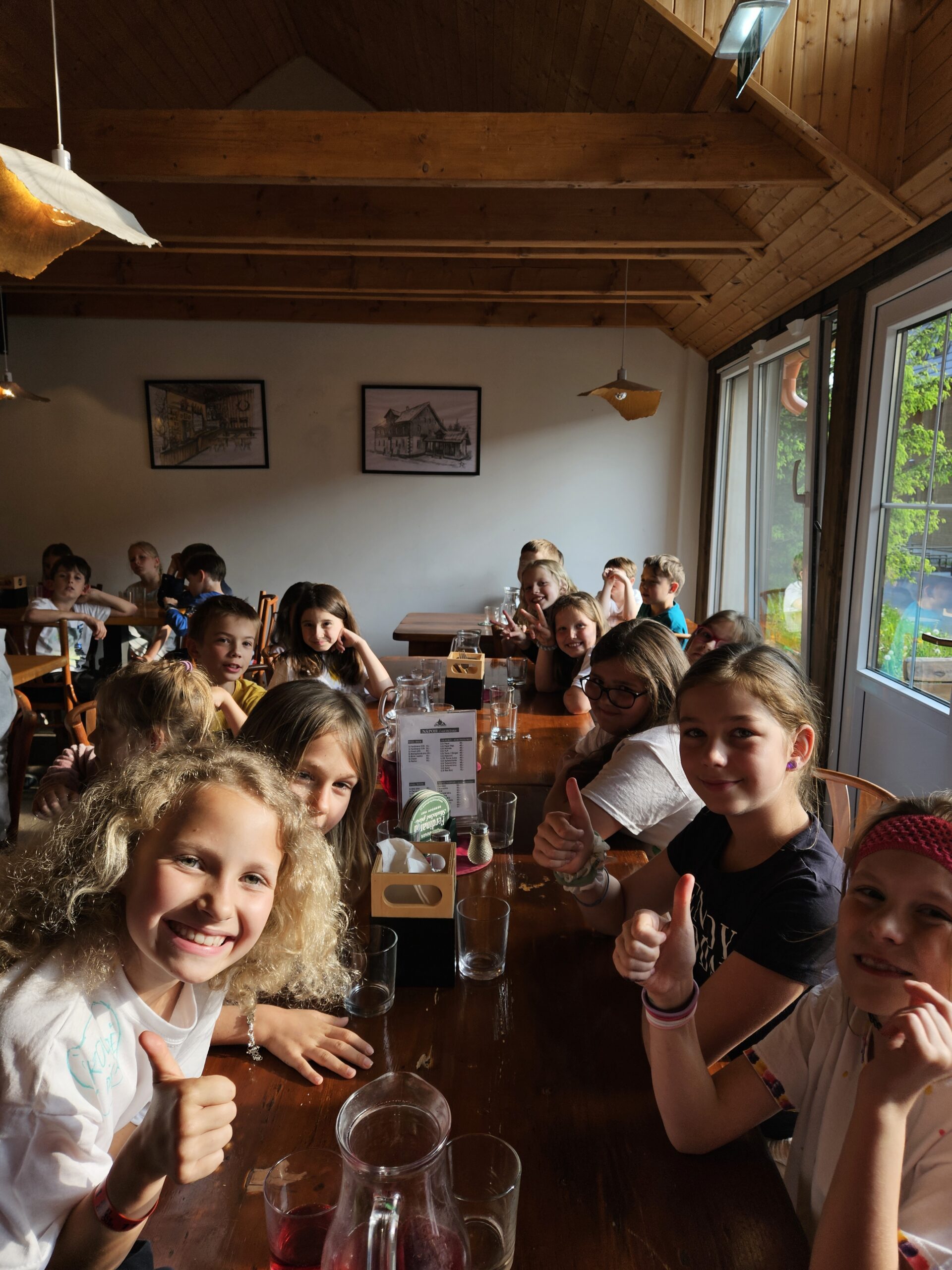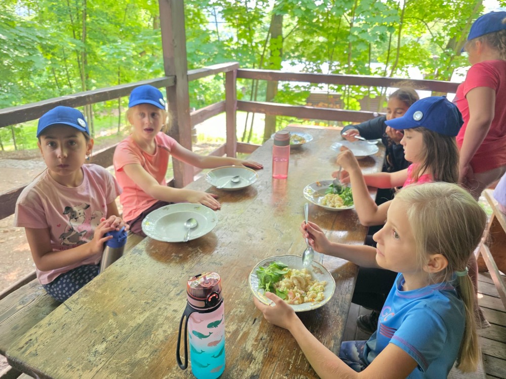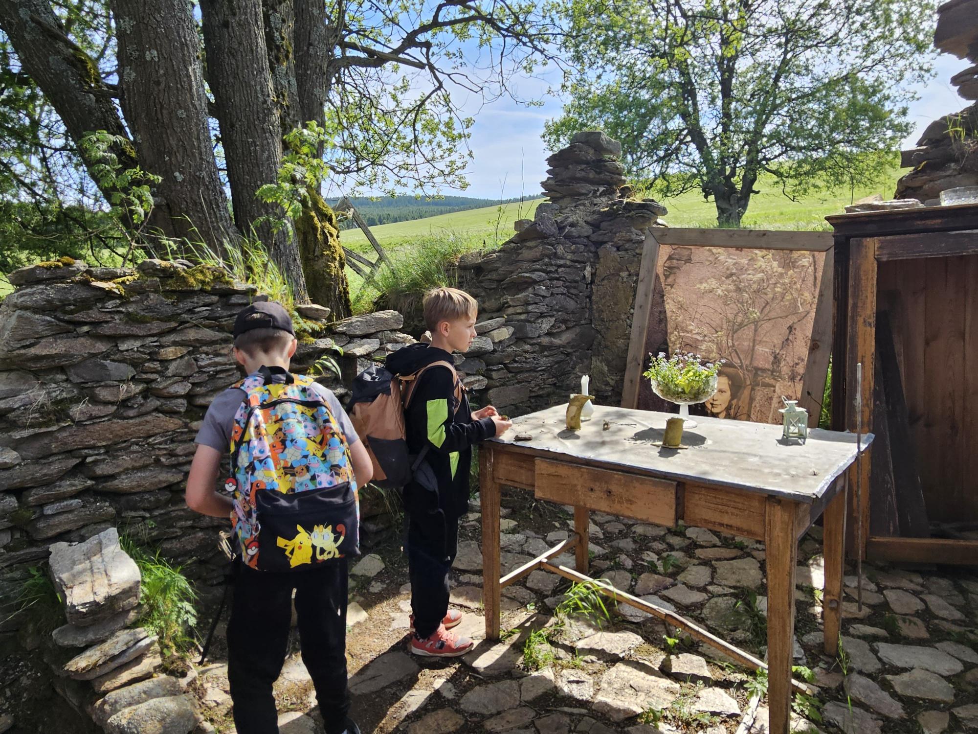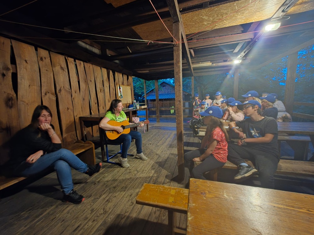 Přespávačku ve škole už jsme si vyzkoušeli, proto jsme zajeli prozkoumávat sousední Roztoky. Využili jsme skautskou osadu, která pro nás byla ideální. Nejen zážitek ze spaní ve srubu, ale i hřiště, příroda, dokonce i trochu hry na kytaru, to vše jsme stihli za dva dny. K tomu jsme se podívali do Tichého údolí, navštívili jsme dům, ve kterém žila spisovatelka Barbora Markéta Eliášová a nahlédli do pravěku na výstavě Archevita. Zahráli jsme si pár her, kterými jsme si opakovali látku, protože škola ještě nekončí. My jsme si ale trochu připadali, že už máme prázdniny. Bylo  to moc fajn.