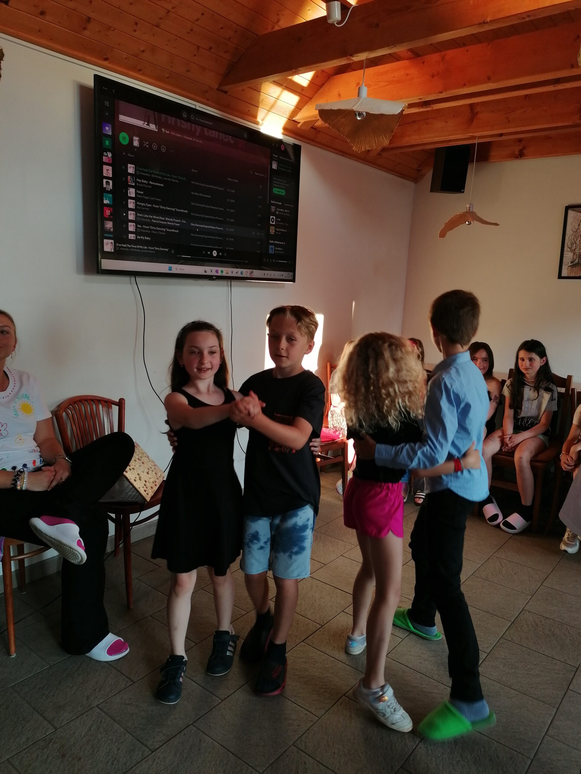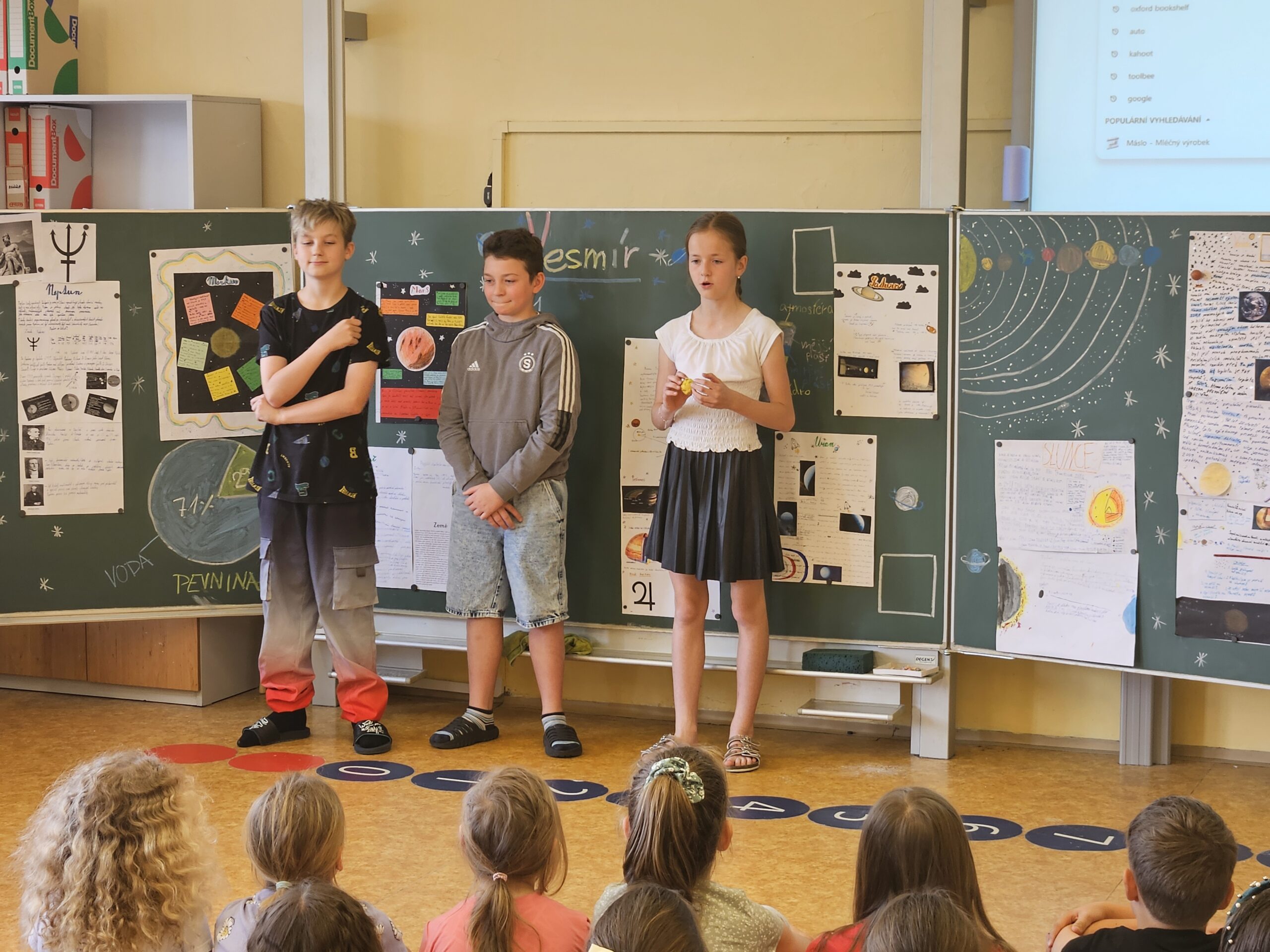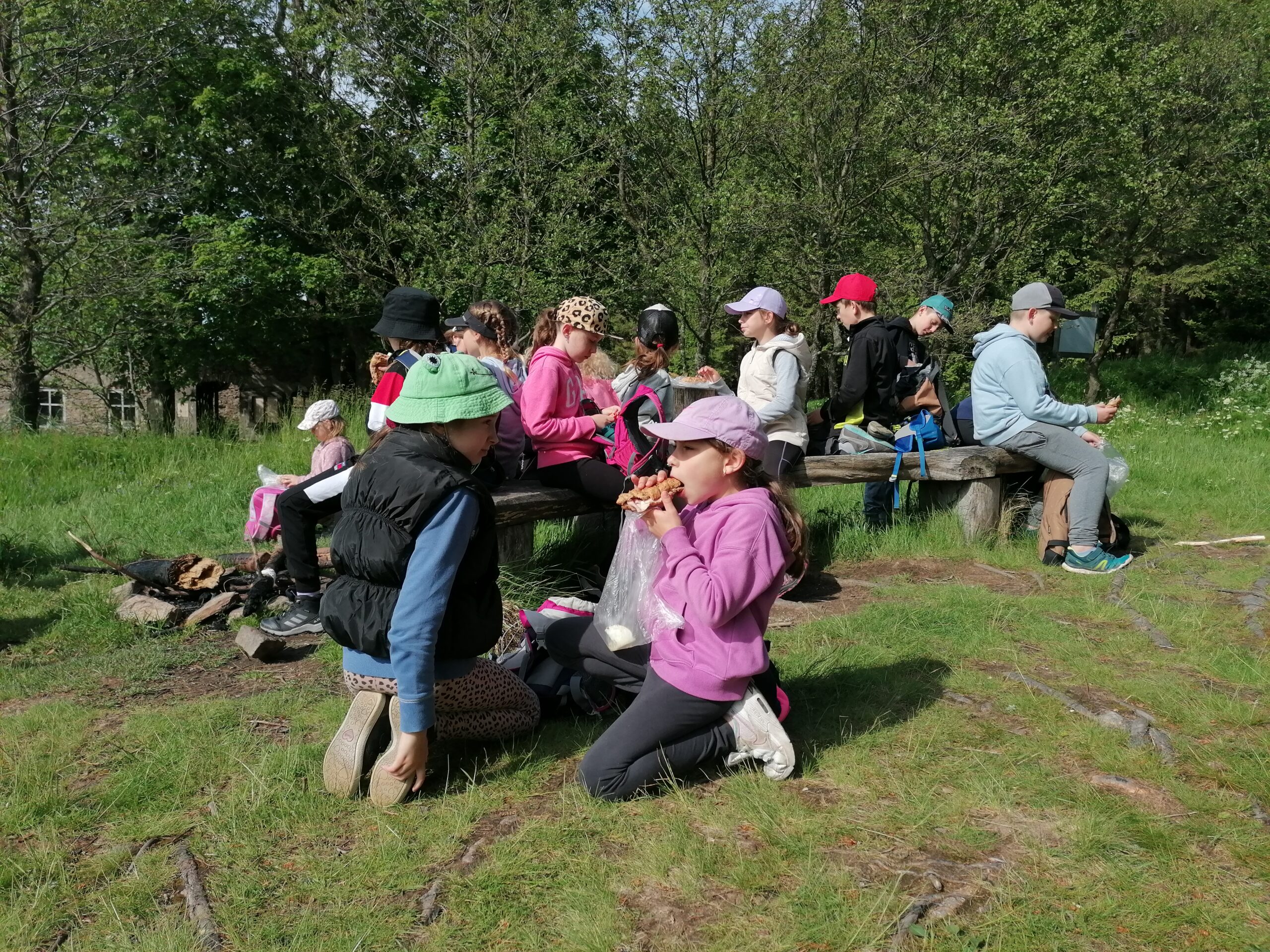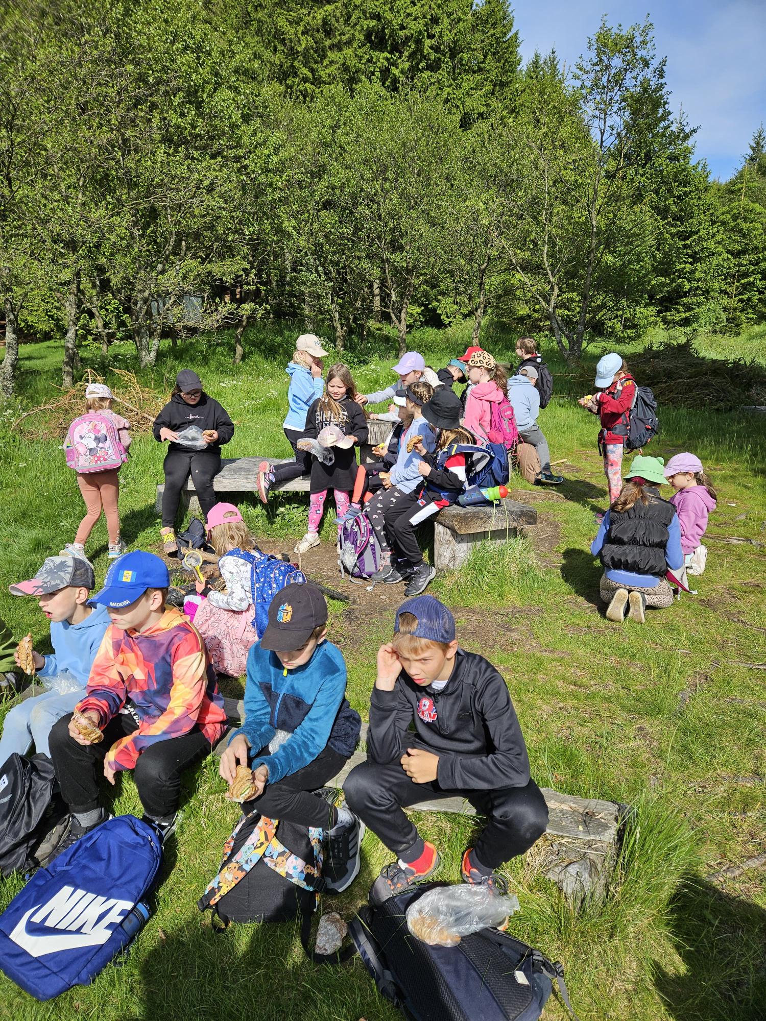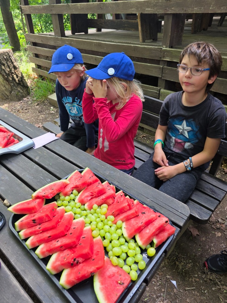 Přespávačku ve škole už jsme si vyzkoušeli, proto jsme zajeli prozkoumávat sousední Roztoky. Využili jsme skautskou osadu, která pro nás byla ideální. Nejen zážitek ze spaní ve srubu, ale i hřiště, příroda, dokonce i trochu hry na kytaru, to vše jsme stihli za dva dny. K tomu jsme se podívali do Tichého údolí, navštívili jsme dům, ve kterém žila spisovatelka Barbora Markéta Eliášová a nahlédli do pravěku na výstavě Archevita. Zahráli jsme si pár her, kterými jsme si opakovali látku, protože škola ještě nekončí. My jsme si ale trochu připadali, že už máme prázdniny. Bylo  to moc fajn.